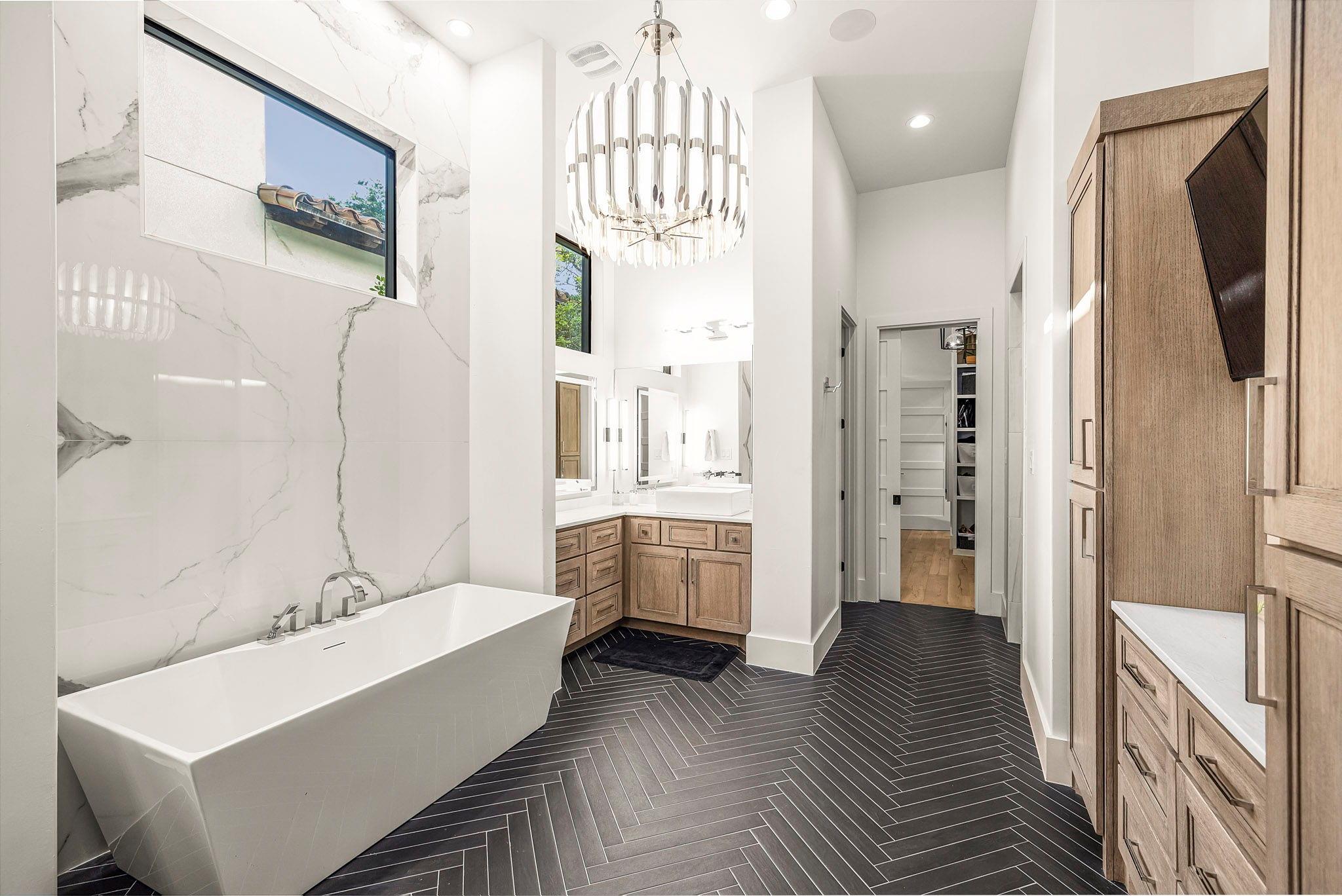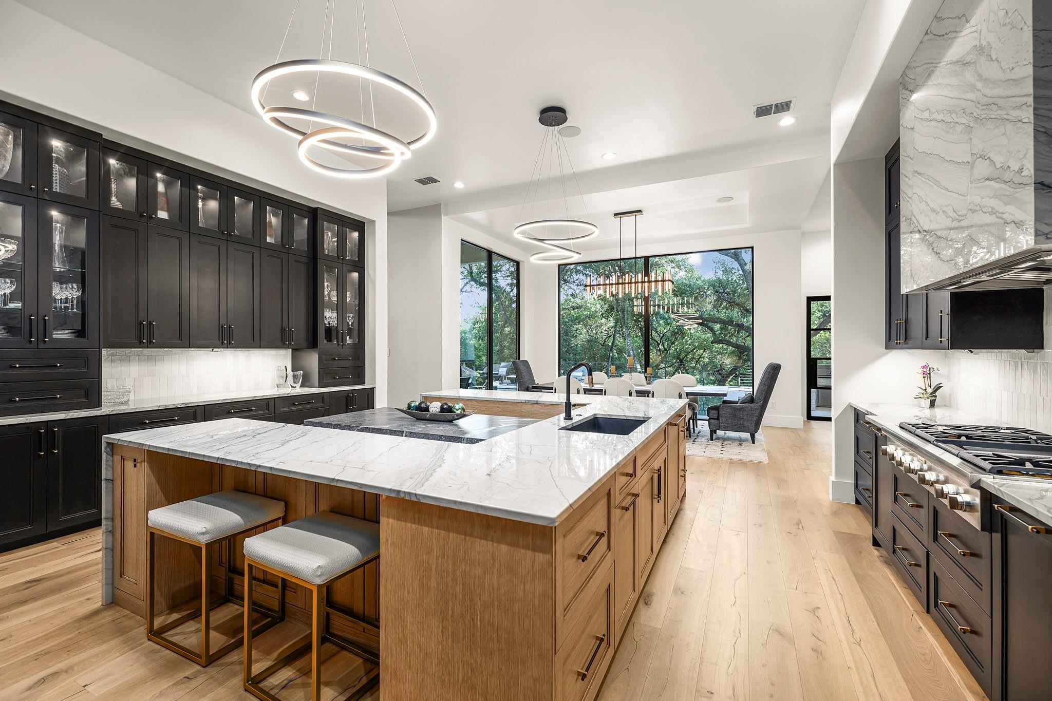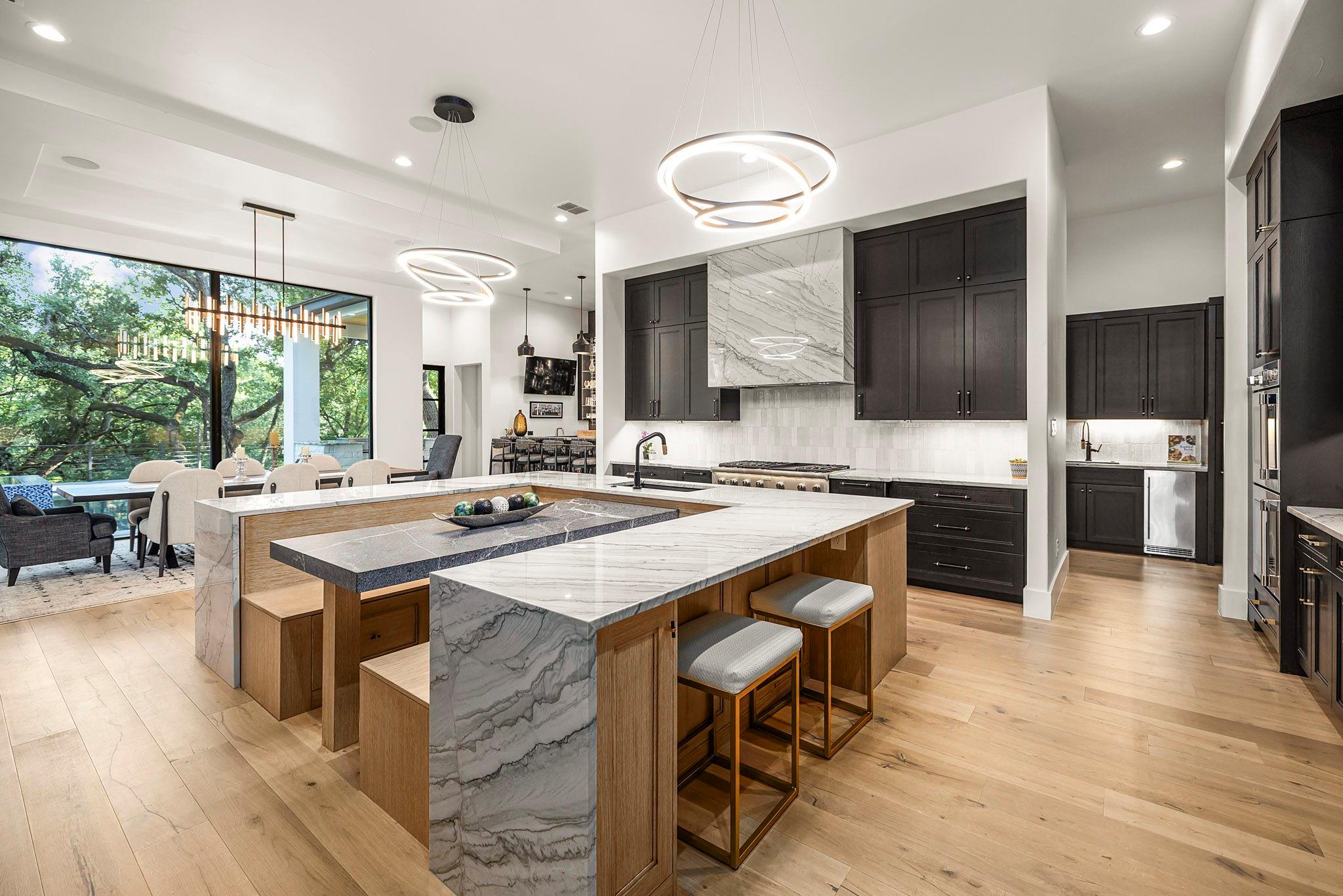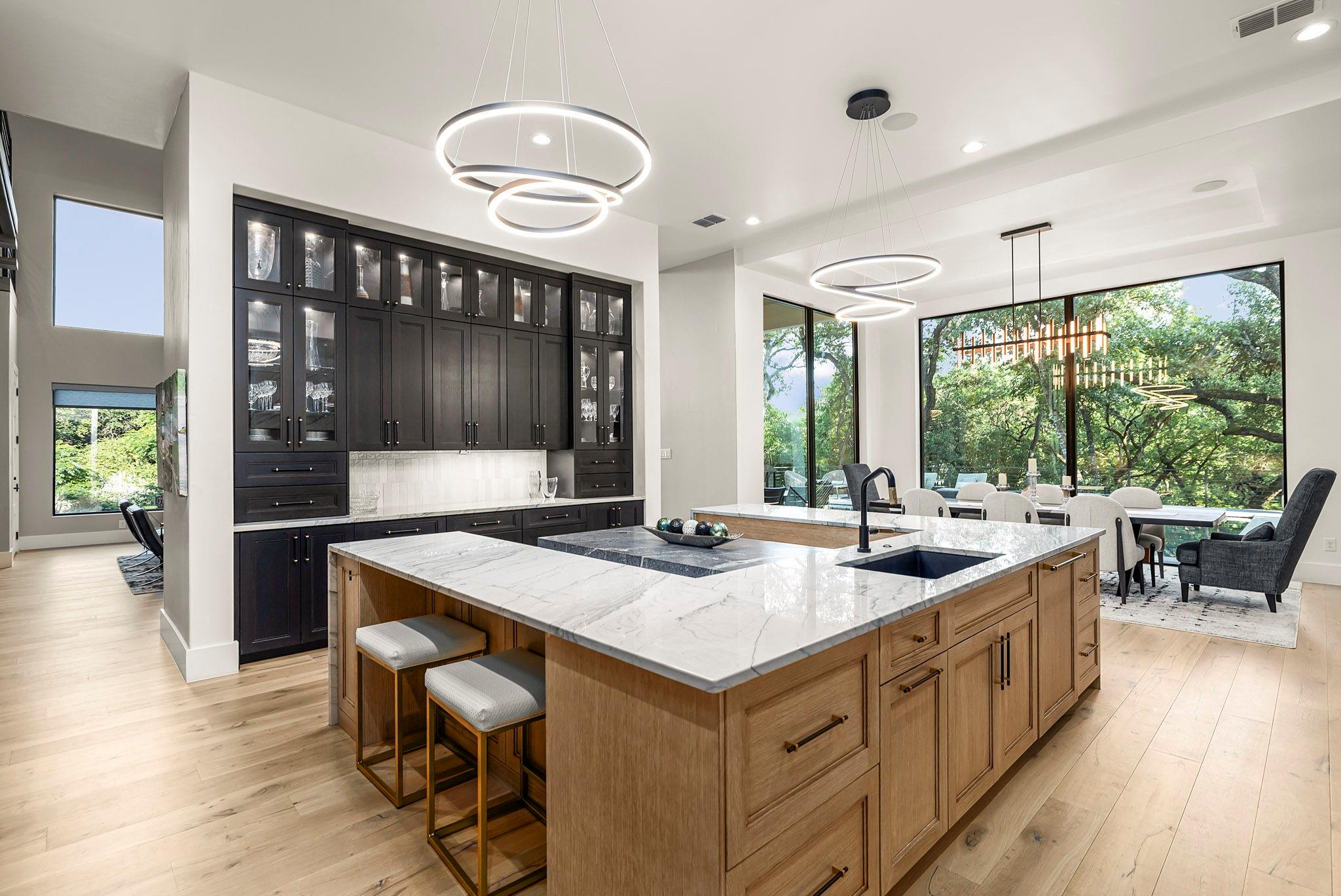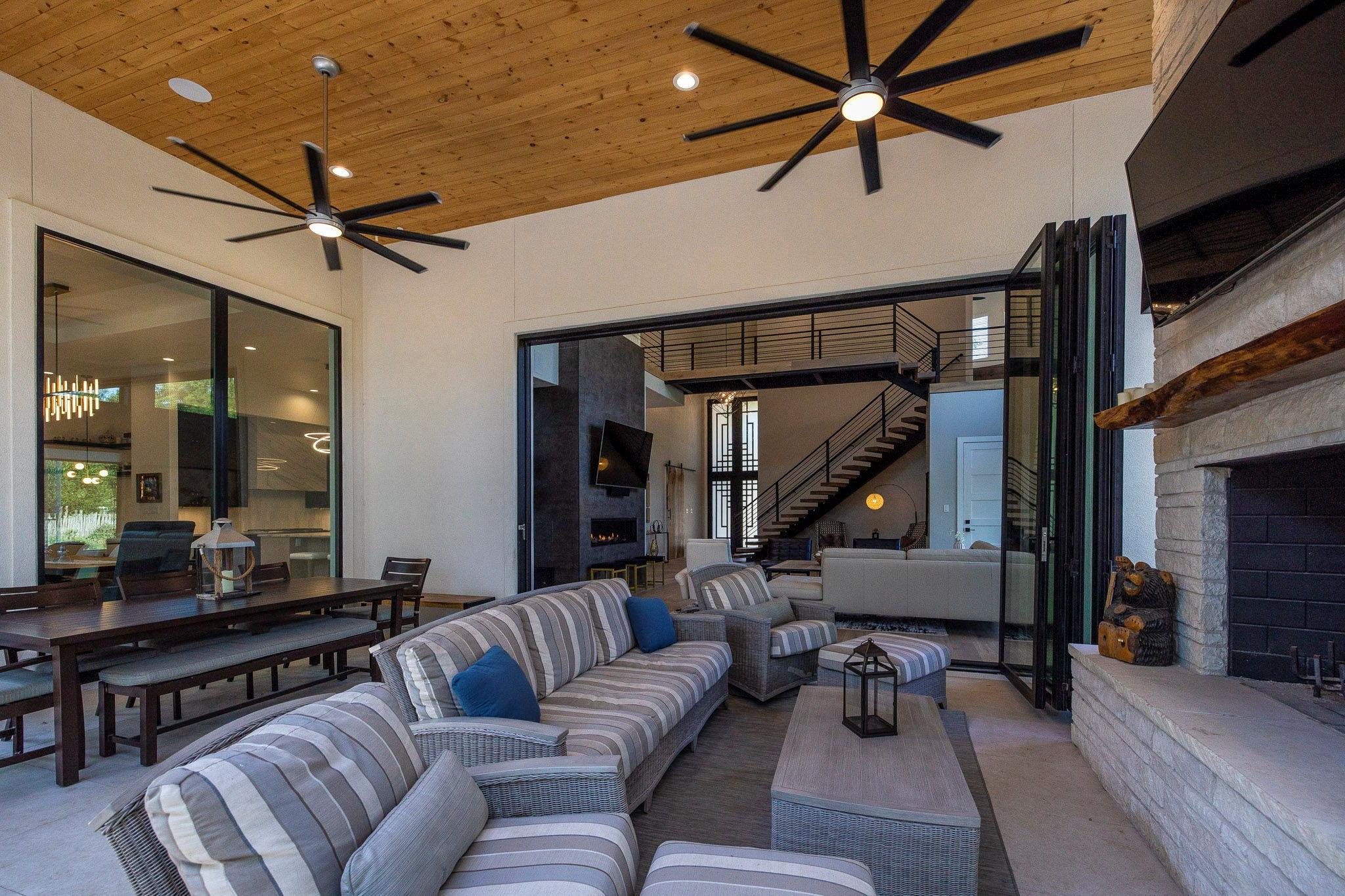 This stunning home, located in a boutique community near Gruene is a clean modern design with exquisite hill country flare. Home of local builder with top-of-the-line upgrades and a unique floor plan for ultimate desired living conditions. Opens to soaring tall open space with windows floor to ceiling. Magnificent lighting fixtures throughout and a staircase that accents the entire home. Living area over looks outdoor oasis with pool, outdoor living, and dining area. Remarkable kitchen with banquet island, custom cabinetry, butler pantry, Thermador appliances, & wine fridge/storge area. The primary/master bedroom downstair is stunning with ensuite and show stopping closet. Office/workspace, amazing theatre room, and a full bar with seating area finishes off the massive 1st floor living. Upstairs is complete with additional primary/master suite including air jet tub, full walk-in shower, huge walk-in closet with island and an attached living room. Also, a gym, office, and game room with bar area. Luxury living at its finest.