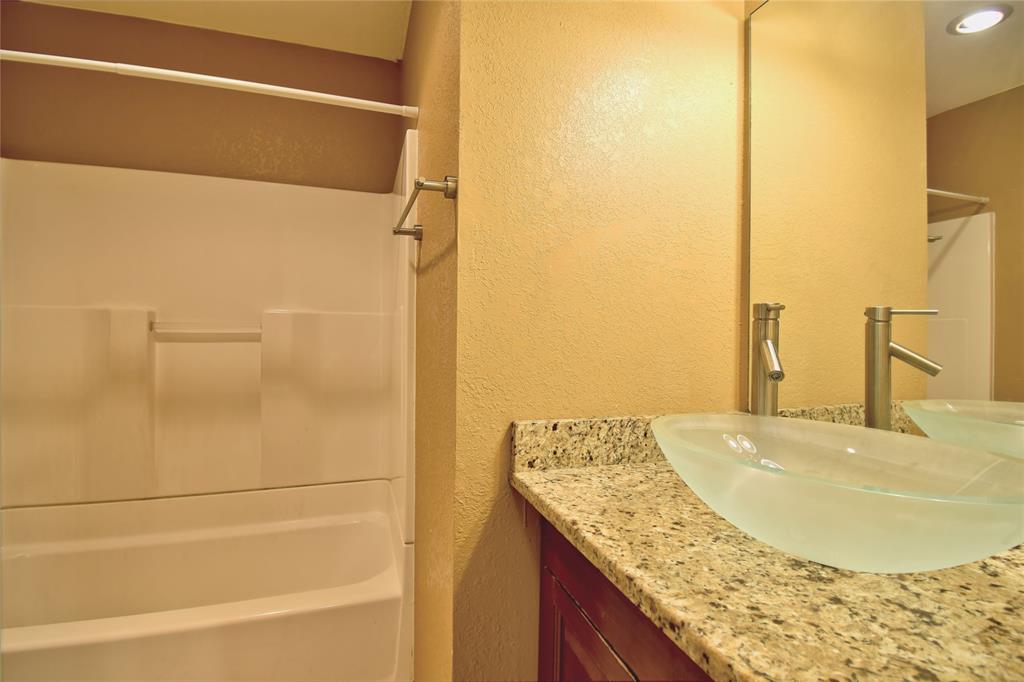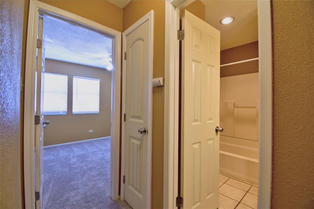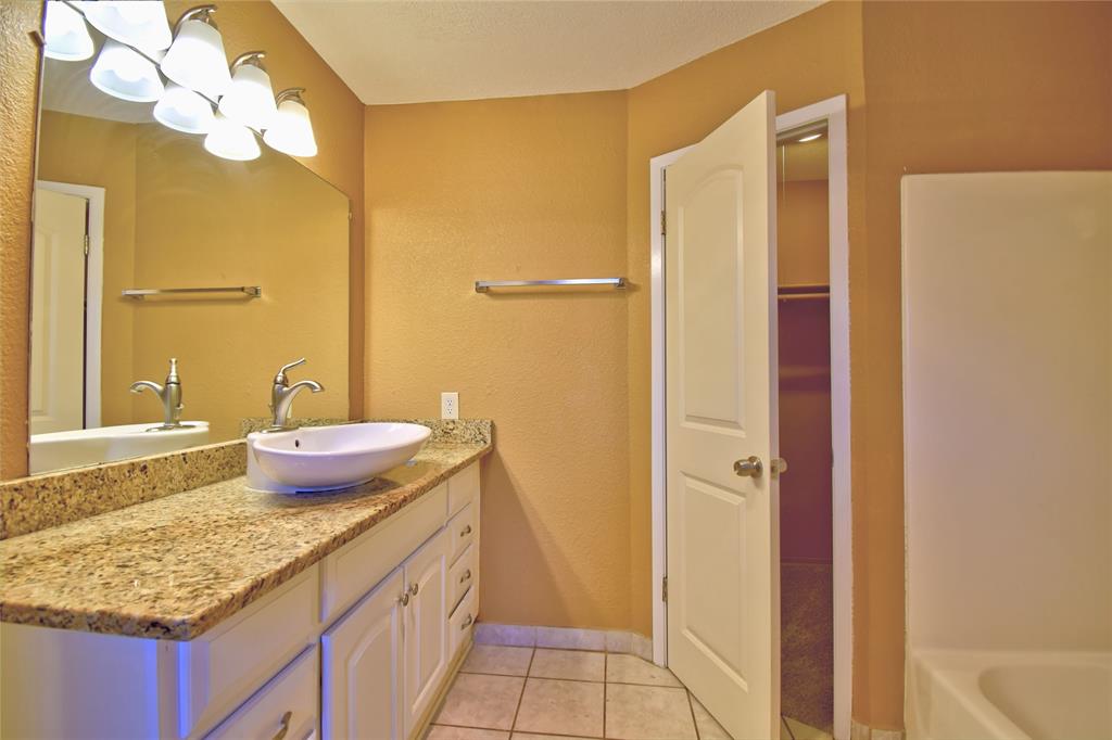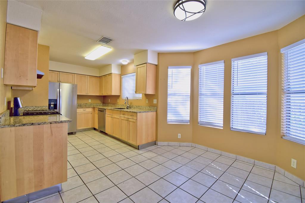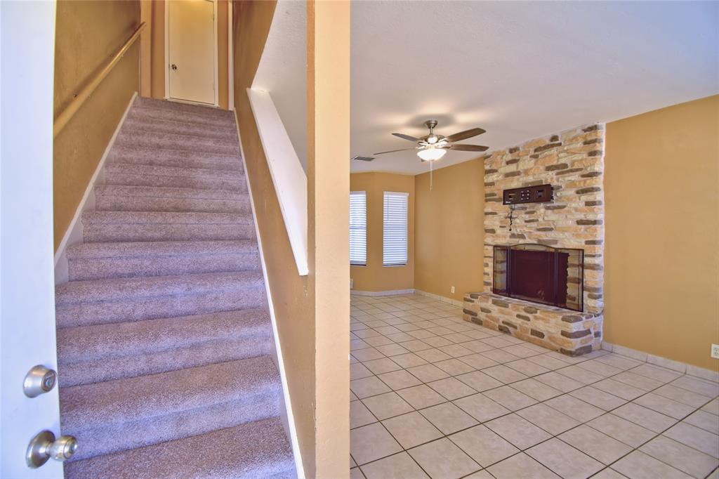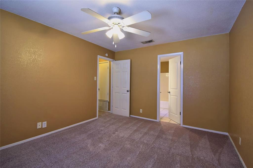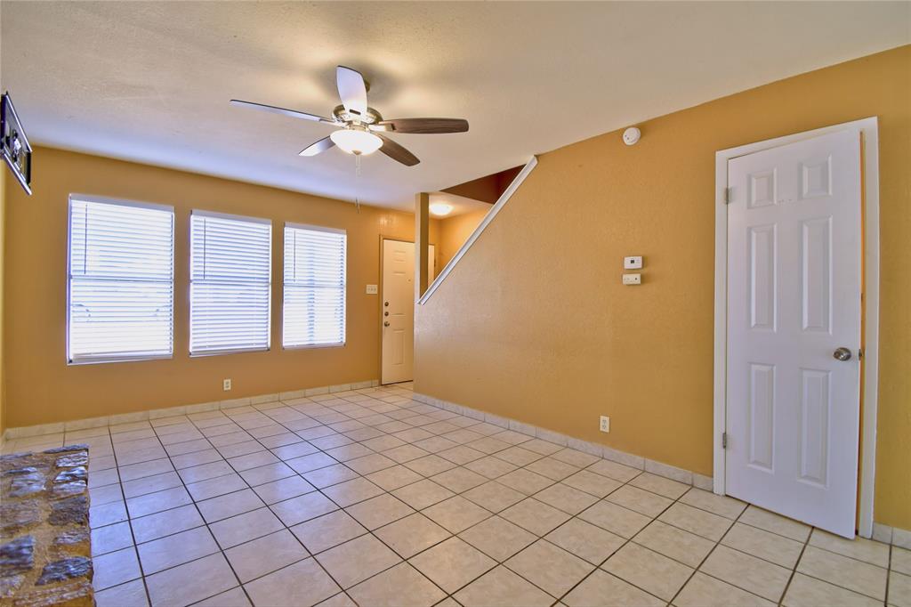 2 story duplex located on a cul-de-sac. Living room flows into dining area/kitchen. 2 inch blinds throughout. Easily access private backyard through sliding glass door with the privacy of vertical blinds. Updated kitchen has stainless steel appliances and granite counter-tops. Main level laundry. Tile in main level for easy clean up and new carpet upstairs for comfort. Updated vanities and vessel sinks in bathrooms. Primary bedroom offers private bath and two walk-in closets. Fans in each bedroom.