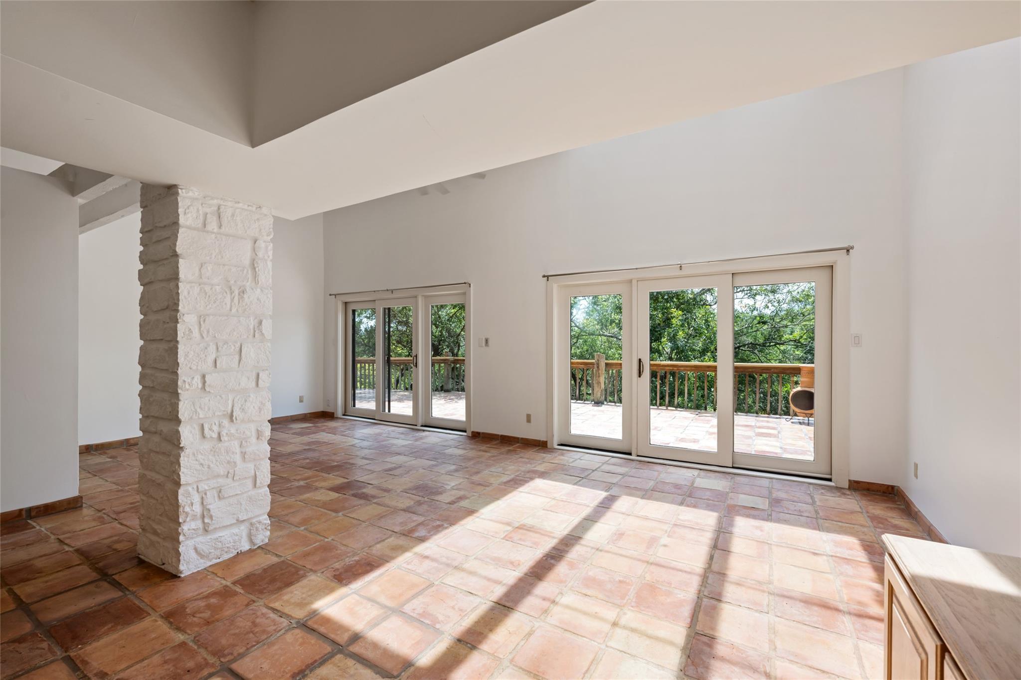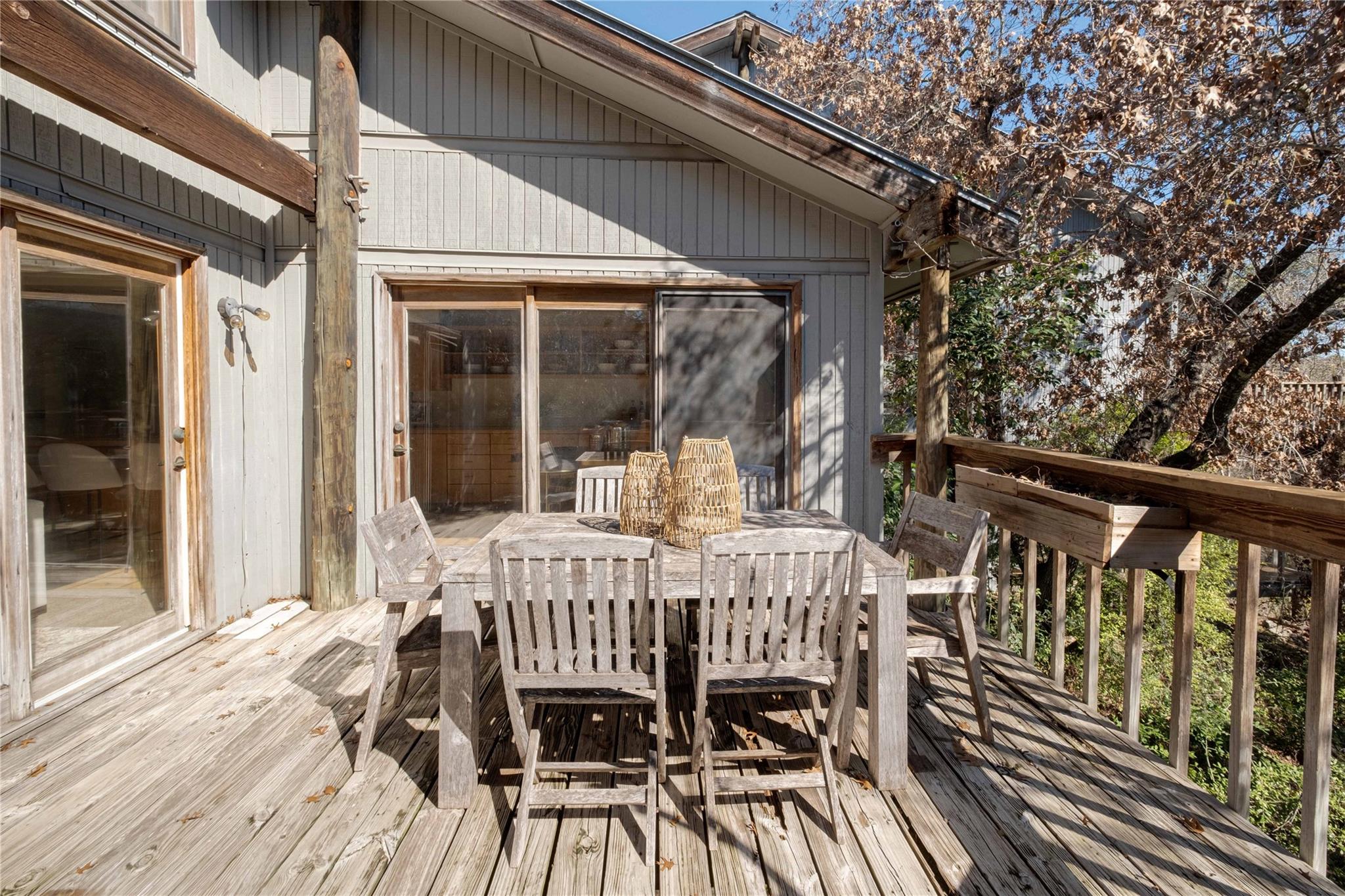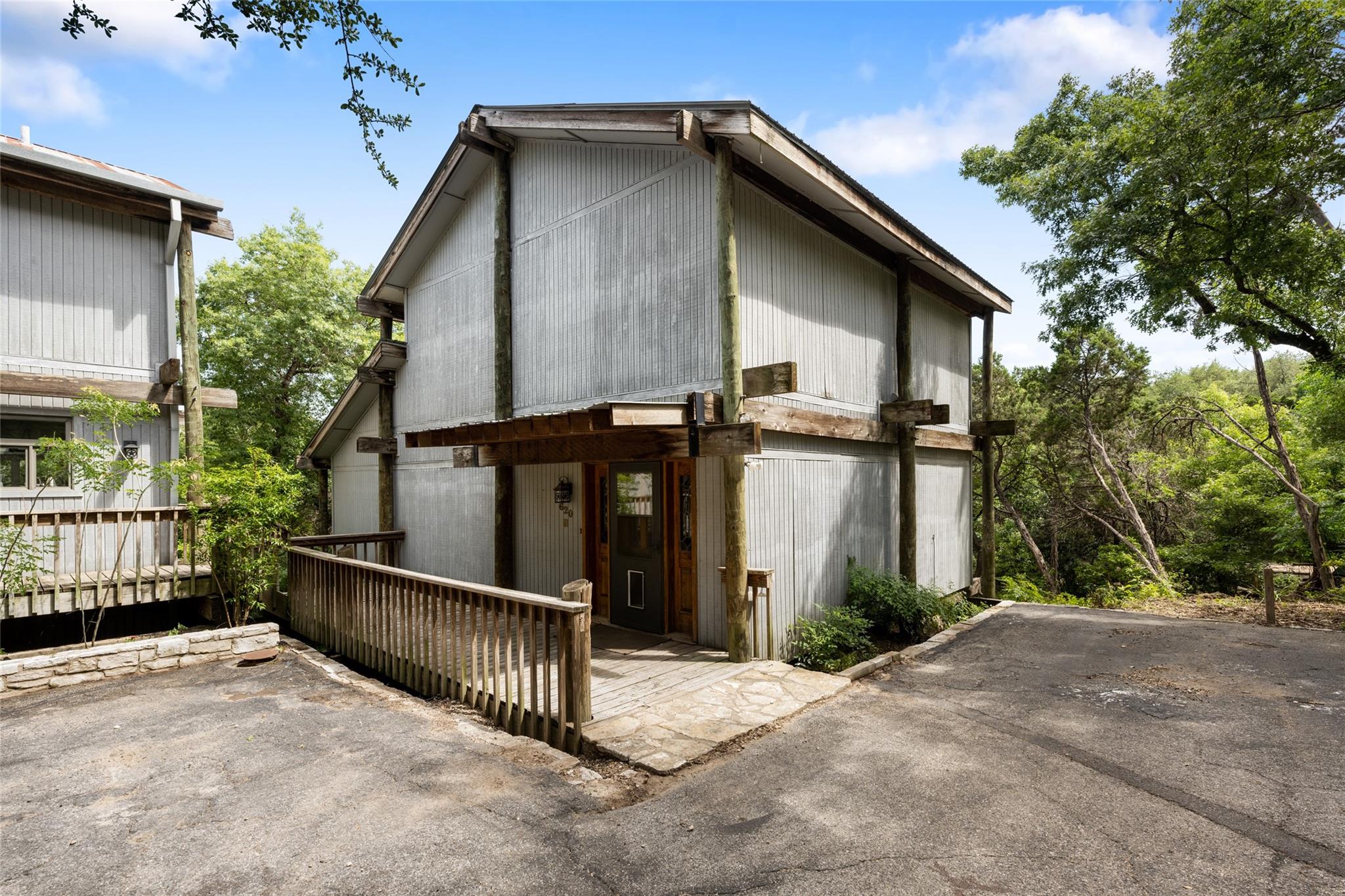 Nestled at the end of a private street on Rocky Ledge Road, this nearly one-acre lot offers breathtaking Downtown views and a sense of tranquility. The property currently features a two-unit treehouse in the woods, offering a unique living experience within walking distance to premier Eanes ISD schools and local conveniences. The Main House boasts 3 bedrooms, 3 bathrooms, and 3 living spaces across 2,858 sq ft, flooded with natural light. The lower level flex space includes a wet bar, leading to a spacious screened-in porch, workshop, and a 2-car garage. The upper level showcases 2 bedrooms, with one featuring a balcony overlooking Downtown Austin. The main level features an open floor plan with high ceilings, a dining area, and a large bedroom with access to the balcony. The Guest House is a detached, 2-story, 2-bedroom, 1-bathroom guest house spanning 1,350 sq ft, offering additional living space or rental potential. Both homes feature expansive decks and rectangular footprints, providing endless possibilities for Immediate Investment property, remodeling, or creating a new vision on one of the premiere lots in Westlake with walkability and very low property tax rate. The property presents stunning Downtown views from the second level, making it a canvas for personalized design and lifestyle. The option to generate supplemental income by renting out the homes while planning a dream home adds to the property's allure. With its unparalleled privacy and prime location, 620 Rocky Ledge Road offers one of the most exclusive opportunities in Austin. Main House is currently leased inquire agent for information.