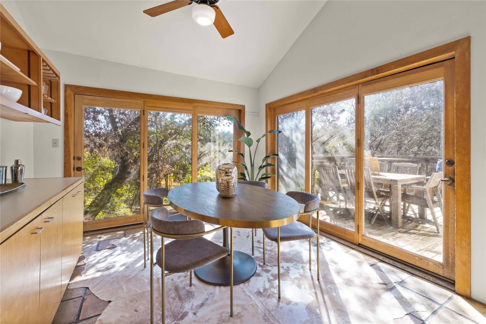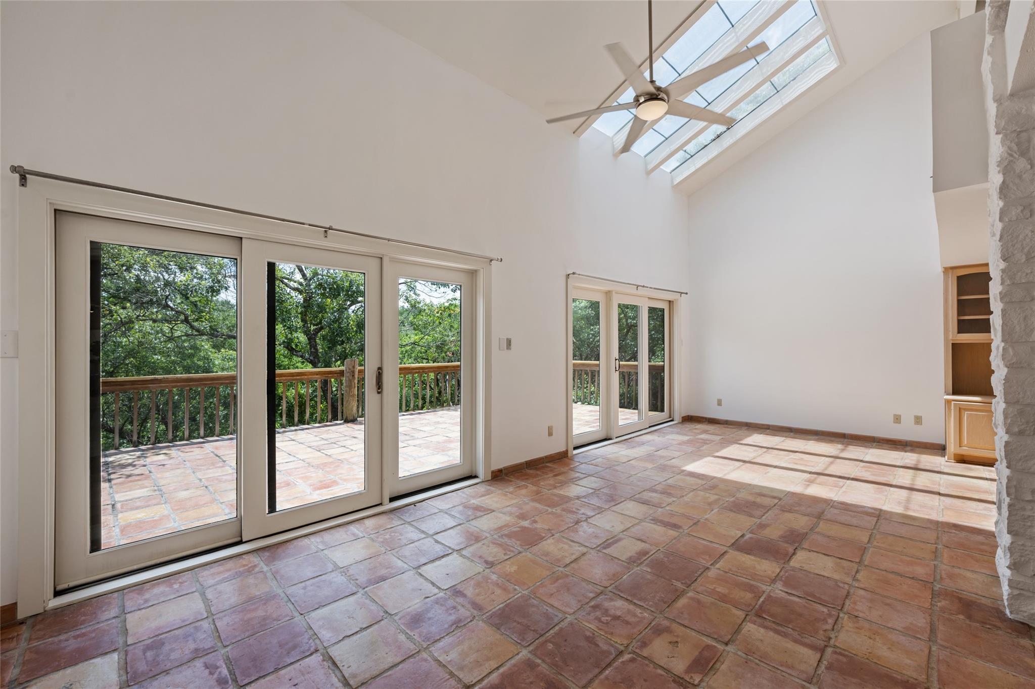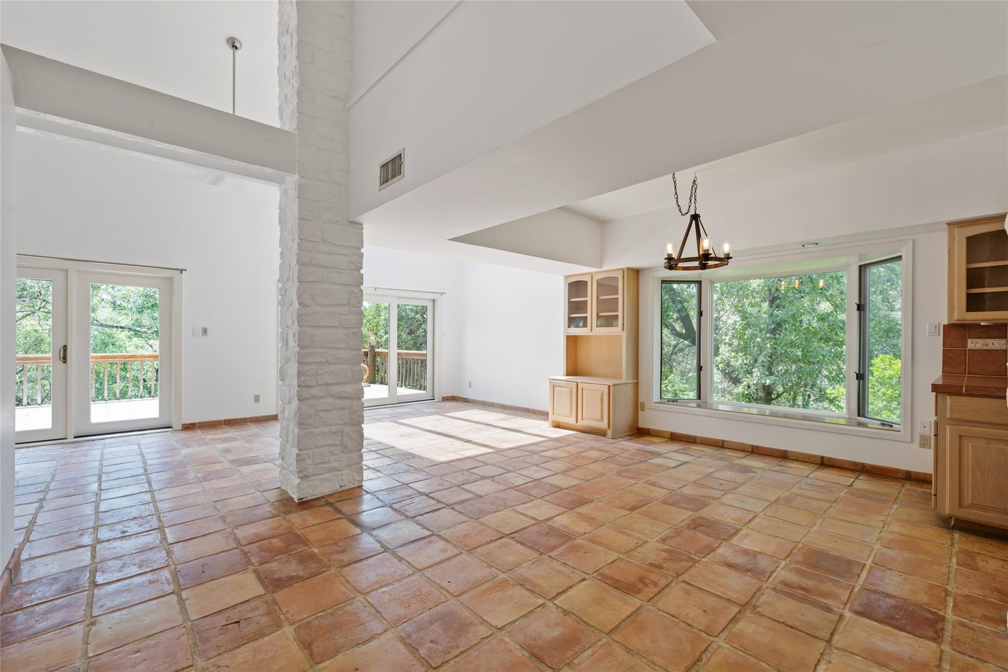 Nestled at the end of a private street on Rocky Ledge Road, this nearly one-acre lot offers breathtaking Downtown views and a sense of tranquility. The property currently features a two-unit treehouse in the woods, offering a unique living experience within walking distance to premier Eanes ISD schools and local conveniences. The Main House boasts 3 bedrooms, 3 bathrooms, and 3 living spaces across 2,858 sq ft, flooded with natural light. The lower level flex space includes a wet bar, leading to a spacious screened-in porch, workshop, and a 2-car garage. The upper level showcases 2 bedrooms, with one featuring a balcony overlooking Downtown Austin. The main level features an open floor plan with high ceilings, a dining area, and a large bedroom with access to the balcony. The Guest House is a detached, 2-story, 2-bedroom, 1-bathroom guest house spanning 1,350 sq ft, offering additional living space or rental potential. Both homes feature expansive decks and rectangular footprints, providing endless possibilities for Immediate Investment property, remodeling, or creating a new vision on one of the premiere lots in Westlake with walkability and very low property tax rate. The property presents stunning Downtown views from the second level, making it a canvas for personalized design and lifestyle. The option to generate supplemental income by renting out the homes while planning a dream home adds to the property's allure. With its unparalleled privacy and prime location, 620 Rocky Ledge Road offers one of the most exclusive opportunities in Austin. Main House is currently leased inquire agent for information.