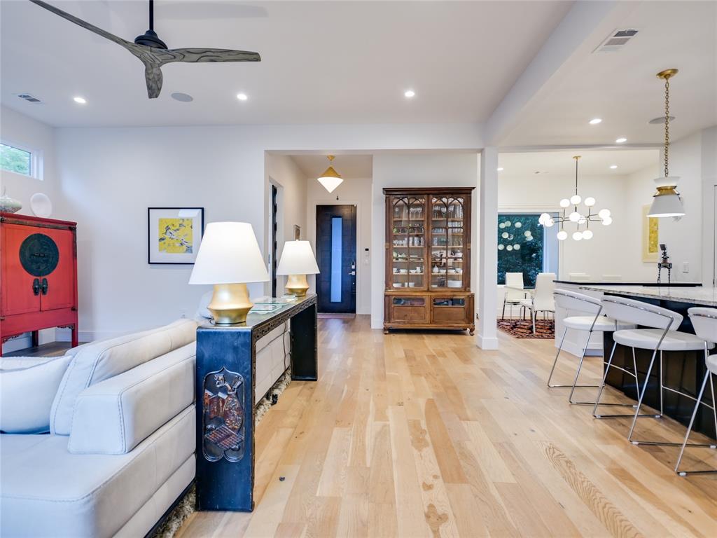 ROOM FOR A POOL! City living in luxury and style! Lots of space in a fantastic location, central to UT, Seton, Central Market and Uchiko! 10 minutes or less into Downtown. This 2017 home is 4-star green builder rated, has two tankless hot water heaters, zoned A/C, security, additional lighting features, and white oak flooring throughout. The main floor has an open plan with kitchen, living, dining, featuring a fireplace and large windows overlooking the deck. The kitchen has a nice size island, lots of cabinets, a pantry, Subzero refrigerator, and commercial grade KitchenAid gas stove. Tucked away on the main floor is the primary suite. It has soft, natural light, two walk-in closets, plus a large master bath with soaking tub, a giant glass shower, and a dual vanity. The entire second floor is a huge bonus room with room for a large sectional, TV with surround Sonos speakers, and a pool table. The guest rooms have their own floor with 3 bedrooms, 2 full bathrooms, laundry, and walk-out to a covered deck. There is a lovely green yard that is fully fenced with 3 garden beds. Room for a pool. Rear-entry 2-car garage. The multiple outdoor living areas make this an entertainer's paradise tucked away in the center of town!