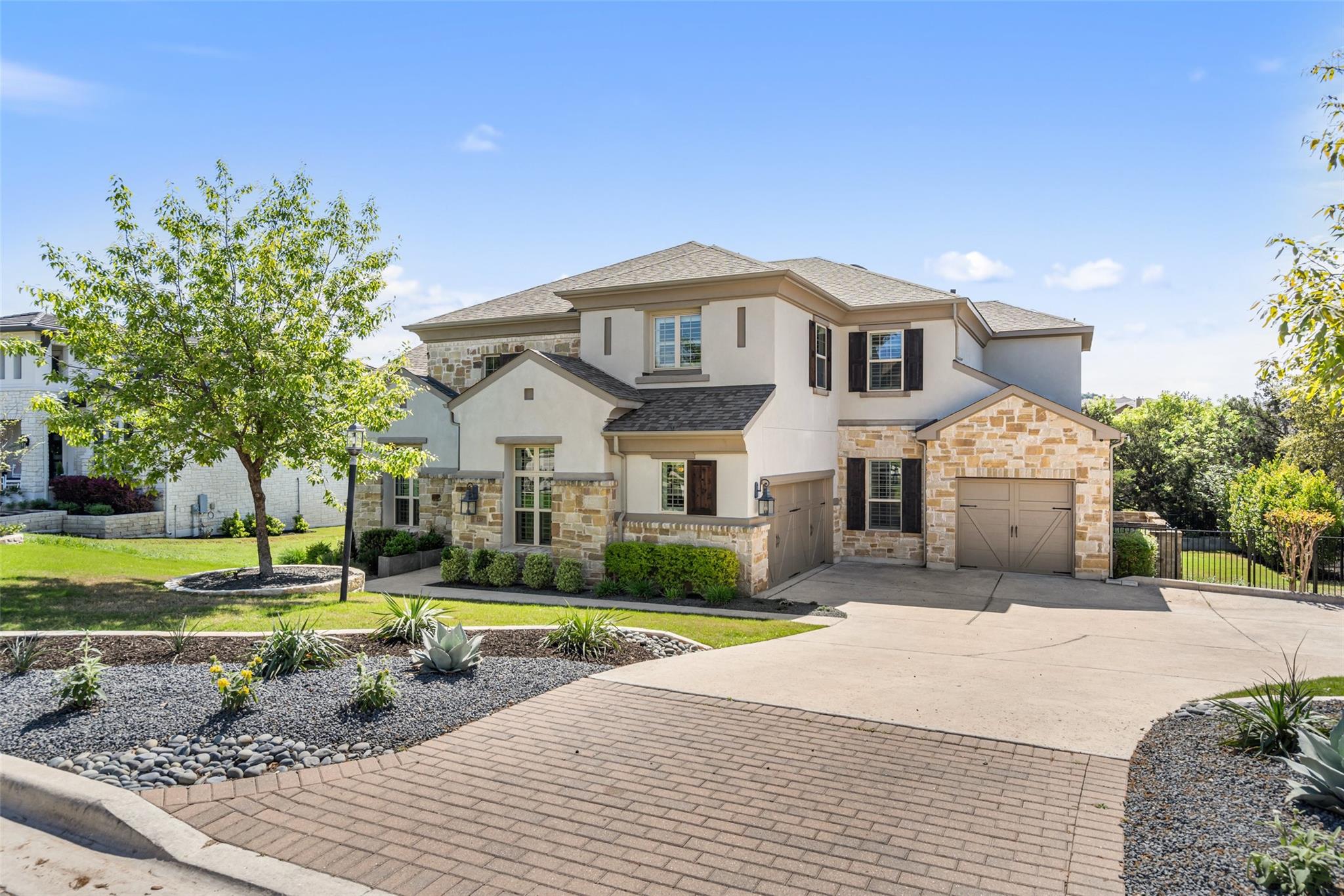 See Video on virtual tour site. Welcome to luxury living in the highly coveted Lakeside section of Rough Hollow, nestled within the resort community of Lakeway! This home offers unparalleled comfort and resort-style amenities all within the award-winning Lake Travis ISD. This well-designed 5-bedroom, 5-full and 2-half bathroom home features an open floor plan with spacious rooms and high-end designer finishes throughout. You'll love cooking in the chef's kitchen with an oversized island and ample cabinet and counter space. The living room features a gorgeous floor-to-ceiling stone fireplace, soaring ceilings, and expansive windows that fill the home with natural light. Also of note is an oversized master with a custom California closet system and an attached laundry room. Upstairs, you will find a game room and wet bar, media room, and built-in kid's desk space. Each of the 3 bedrooms upstairs has it’s own en suite bathroom. Indulge in the ultimate outdoor oasis, the private backyard features a stunning pool and negative-edge spa overlooking the serene greenbelt. Host unforgettable gatherings with multilevel patios, outdoor kitchen, fireplace, fire pit and yard. Residents can access community amenities, including multiple pools, a yacht club, a marina, basketball and tennis courts, miles of trails, and waterfront dining. Experience the "rough life" in Rough Hollow's Lakeside section. Owner/Agent