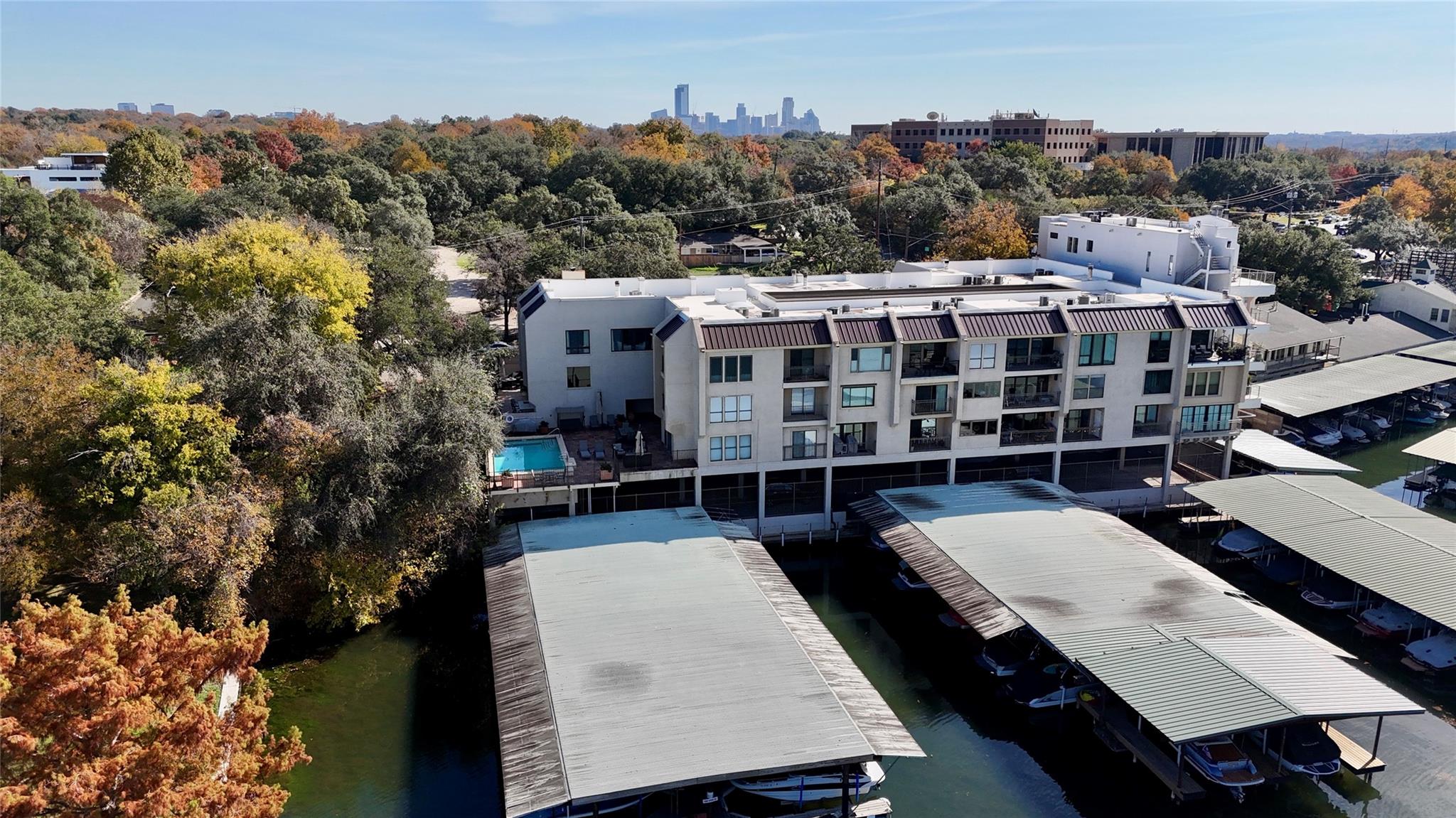 Rare Tarrytown Condo on Lake Austin with BOAT SLIPS available to owners . Exclusive gated parking and marina so near downtown and steps away from Mozart's, Hula Hut, Quince, Walsh Landing and Lions Municipal Golf Course. Condo community features gated entrance, two assigned parking spaces, elevator and pool overlooking Lake Austin. Unit features two separated bedrooms with ensuite baths, two fireplaces and all on one level. No homeowner fees. Just lock and leave.