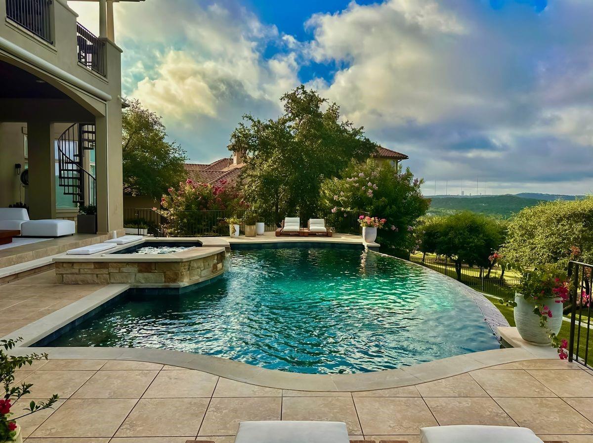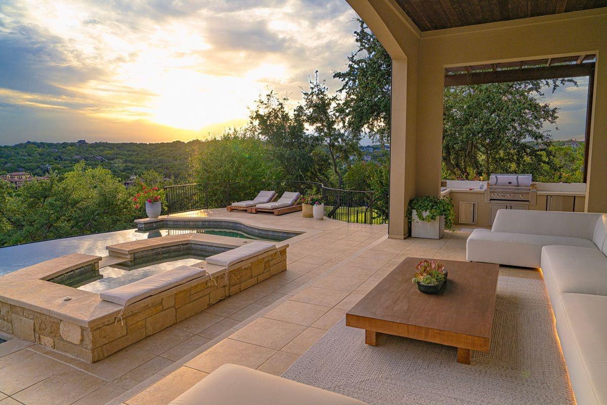 Introducing "Sunset Sanctuary" - An Austin Oasis. This exceptional property, nestled in the scenic hills of northwest Austin, offers a unique living experience on a private cul-de-sac. Indulge in the panoramic morning views of the hill country, where the breathtaking fog over Lake Austin complements the stunning backdrop of downtown. In the evenings, enjoy mesmerizing sunsets reflected in the infinity-edge pool. Situated in the newest phase of Westminster Glen, the estate is only 25 minutes from downtown, 30 minutes from the airport, and 20 minutes from The Domain. Close proximity to amenities like Riverplace Country Club and Ski Shores Restaurant/Marina enhances the lifestyle. Nearby conveniences include restaurants, grocery stores, health clinics, and the Turkey Creek hiking trail. The meticulously designed home features a 20-foot travertine wall, custom lighting, Porcelanosa stairway, and Durango iron doors. The kitchen boasts Carrara marbled backsplash, quartz countertops, and top-of-the-line appliances. Smart technologies, LED fixtures, and climate-controlled storage ensure modern comfort. Step into the expansive backyard with a summer kitchen featuring a Lynx 36” stainless grill and enjoy the walk-out level infinity-edge pool and spa. Outdoor entertainment is elevated with an outdoor spiral staircase, automatic solar shades, and a low-maintenance Trex deck and fire pit. The property is not just a luxurious haven but also a sanctuary for wildlife. Over 18 years, the original owners have cultivated an environment for hummingbirds, butterflies, deer, and more. Unobstructed views of rolling hills, double rainbows, and isolated storms make "Sunset Sanctuary" a slice of pure heaven, wonder, and relaxation. Security elements include a Ring doorbell, Arlo cameras, and low-maintenance steel doors. The Rachio irrigation control allows for water conservation. Don't miss your chance to explore this idyllic home - call today to schedule a private tour.