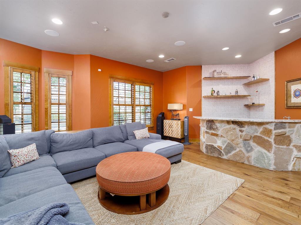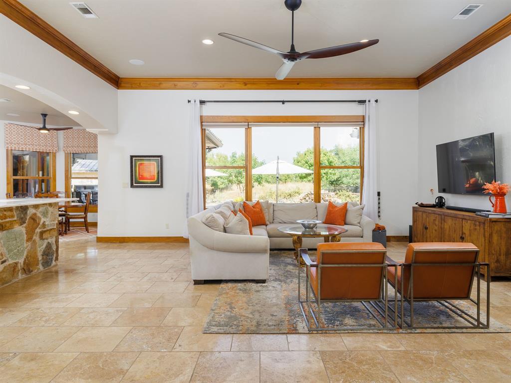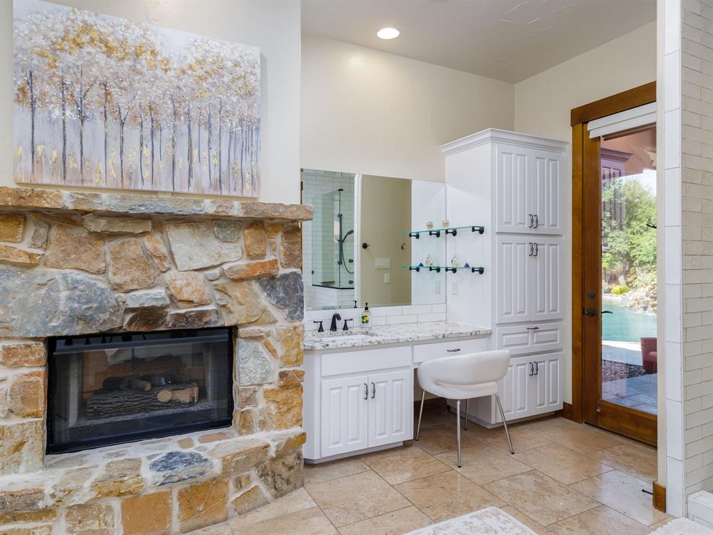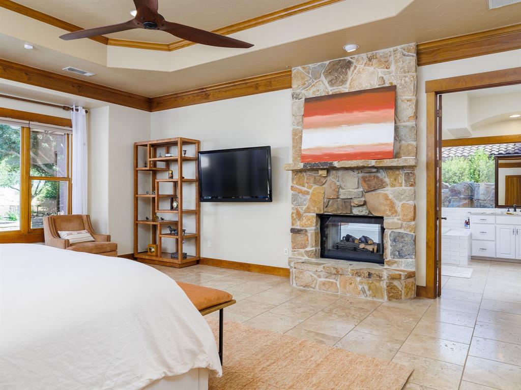 Gorgeous, private, single story Cimarron Hills Estate home with 4 spacious bedrooms/4.5 baths and amazing indoor/outdoor living spaces featuring an outdoor kitchen, beach-edge swimming pool and hot tub and private outdoor sunning patio with outdoor shower off of the owner's retreat. The primary bedroom is truly like a spa with a 2-sided fireplace, ensuite bathroom with an inviting soaking tub and separate shower, double vanities, 2 walk-in closets and plenty of storage. Recent upgrades include a renovated chef's kitchen and 1,000 SF garage for 2 additional parking spots currently used as a workout room/creative space, split HVAC makes space usable year round. The open concept home has high-end contemporary and traditional finishes. Dedicated office for working from home and game room for extra entertaining space.