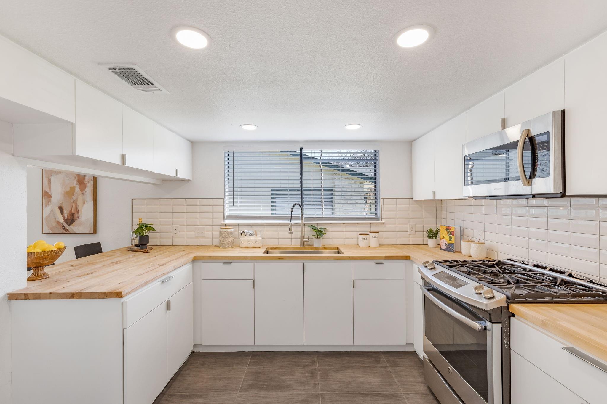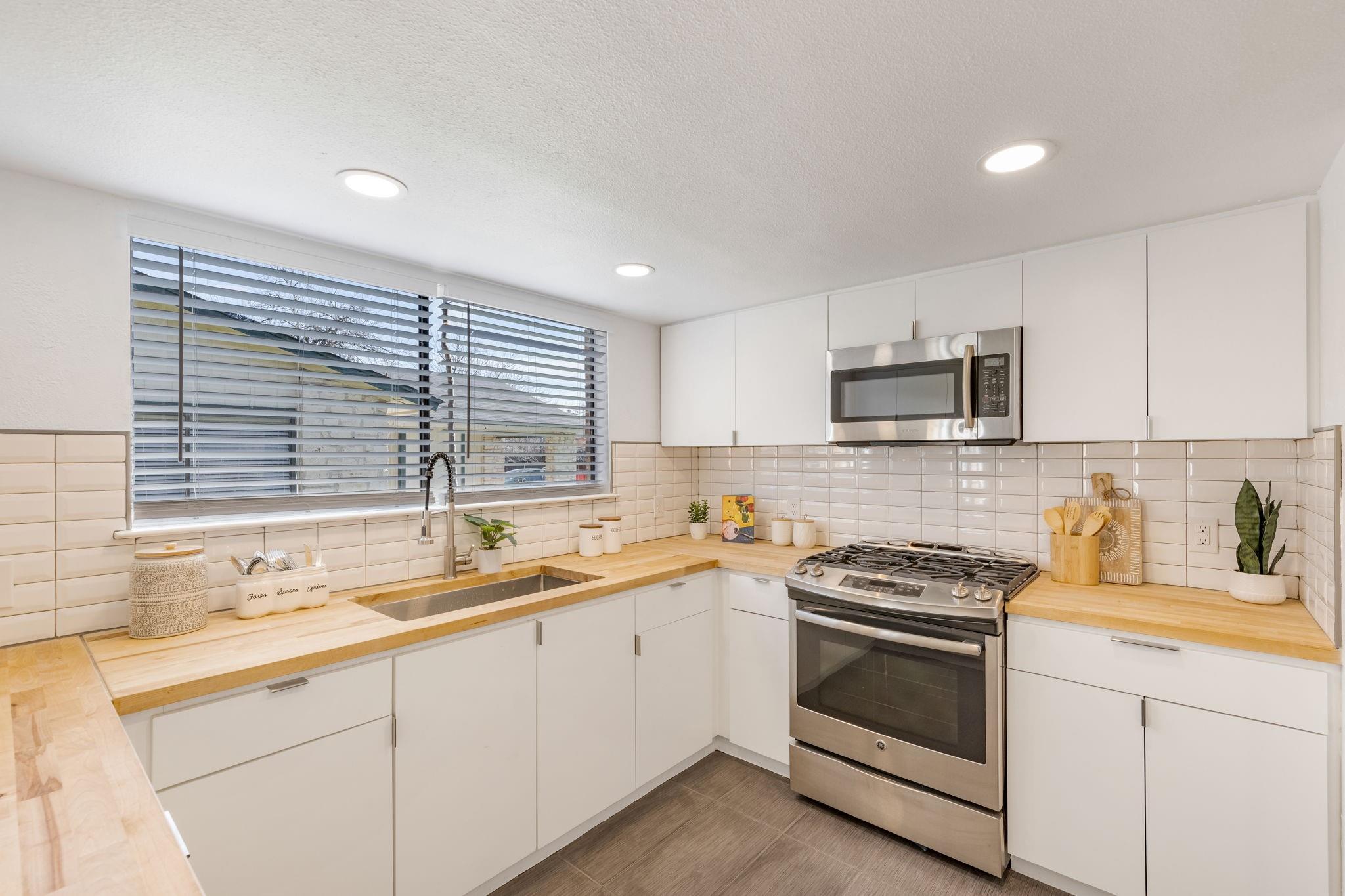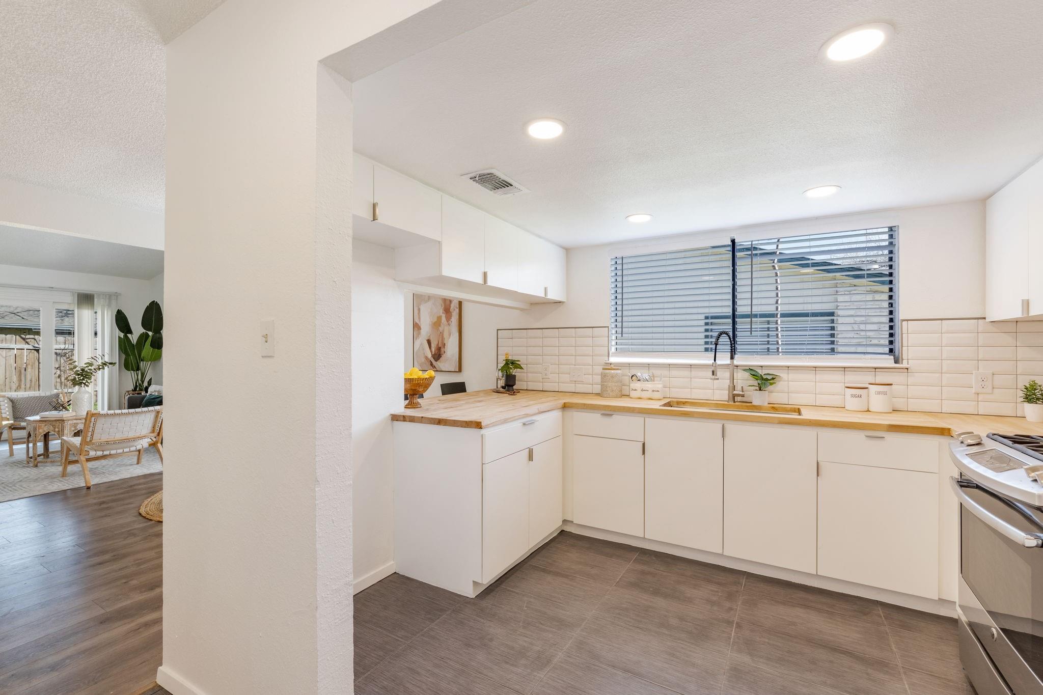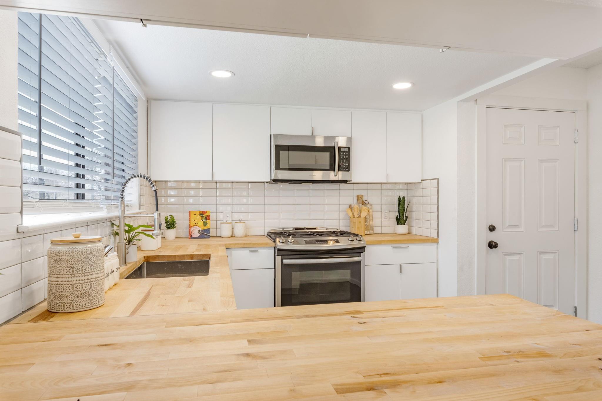 This charming 2 bedroom unit has been fully renovated inside and out and is ready for its next tenant! Light and bright open floorplan with gorgeous finishes in the kitchen and bathrooms. Feels like single family home living with its own laundry room, carport, and private backyard. Conveniently located just minutes from the I-35 and 290 highway systems, this home gives easy access to downtown and the Bergstrom Airport, as well as neighborhood parks, schools, grocery stores, dining, and more.
