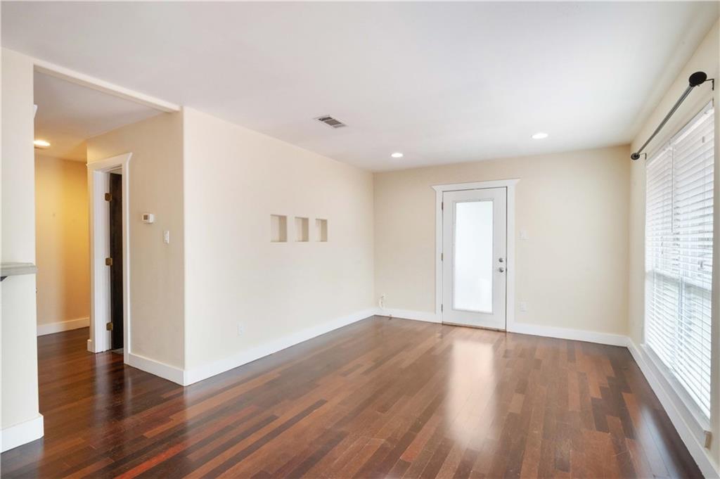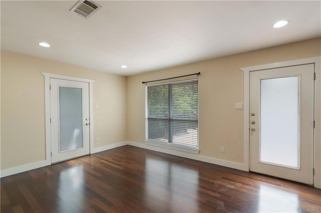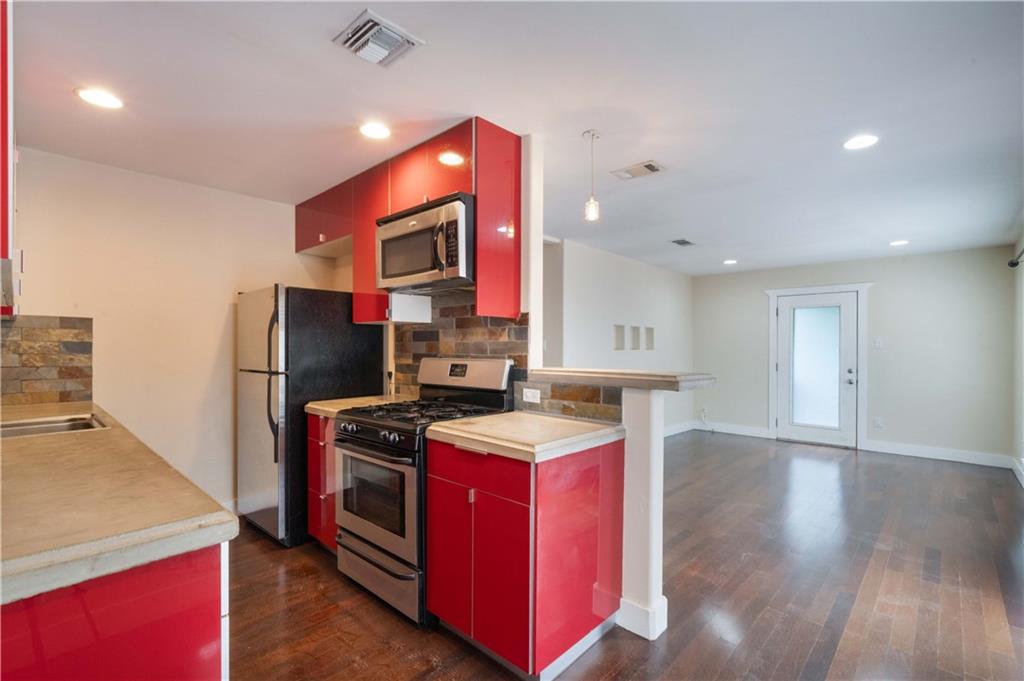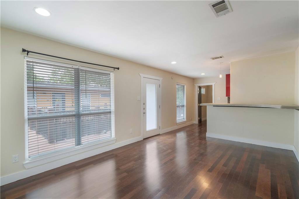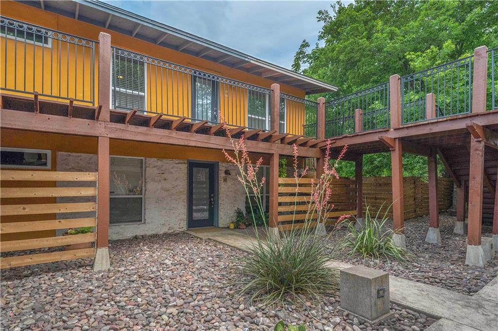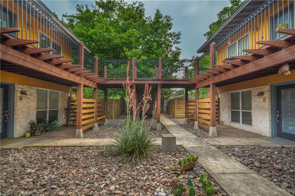 GREAT LOCATION in SOUTH AUSTIN, North of W. Cannon Blvd. CONTEMPORARY STYLE SMALL QUIET COMMUNITY. ONLY 15' to Downtown. TWO BEDROOMS+BONUS ROOM. NICE COMMON AREAS. Wood Floors. Concrete Countertops, Beautiful Sleek Cabinets with a Natural Slate Stone backsplash in Kitchen and on the Surrounding walls and floors of Bathroom. Stainless Steel appliances. Inside Laundry Connections for Stackable W&D units. Comfortable End Unit with/ Front Balcony-Deck & where to put a small Bistro Table and a couple of chairs, as well as a Ground floor Small Private Backyard. Close to everything and close to HEB and south Whole Foods on Mopac, plus all other options provided only in the highly desirable South Austin!