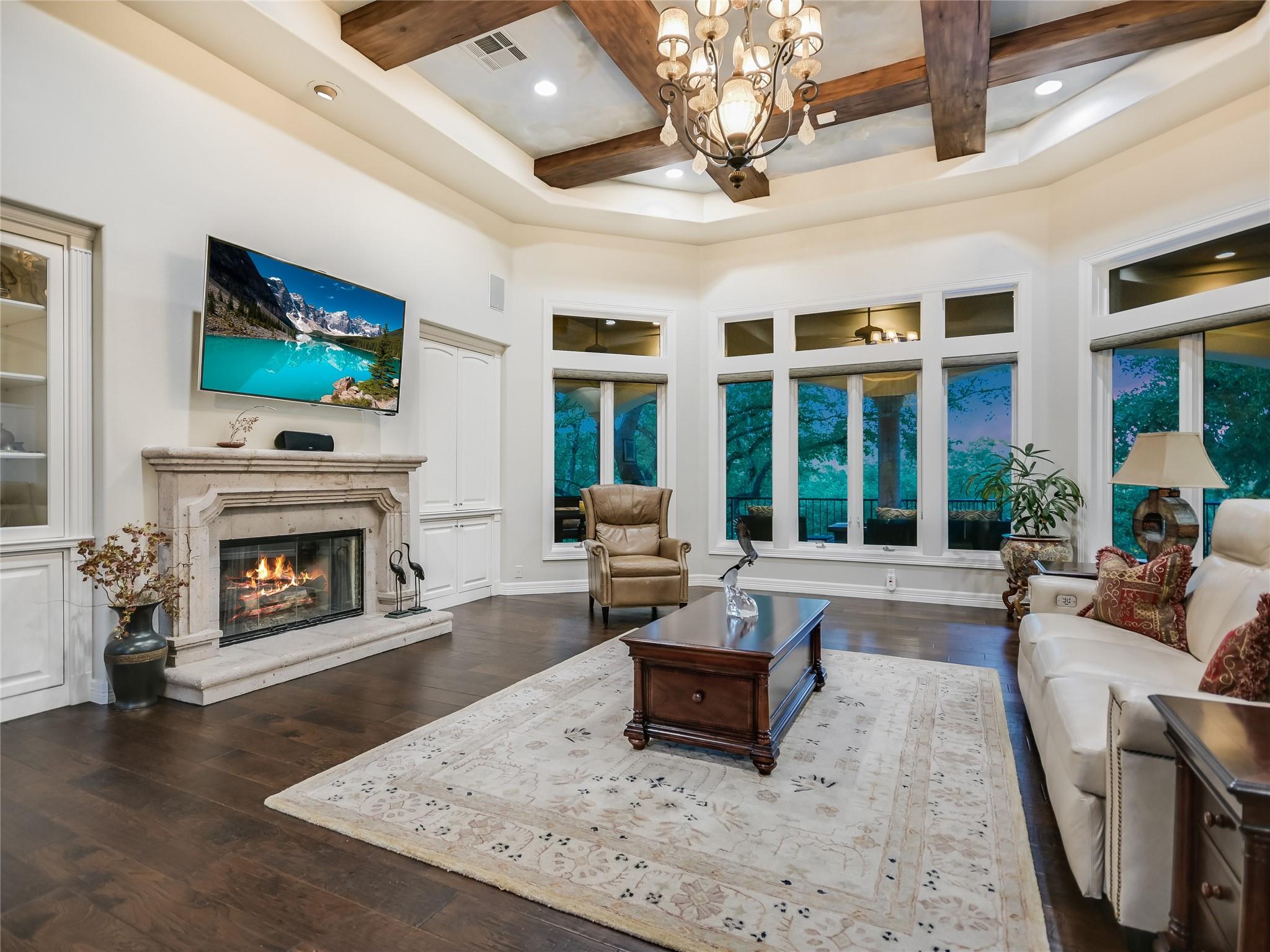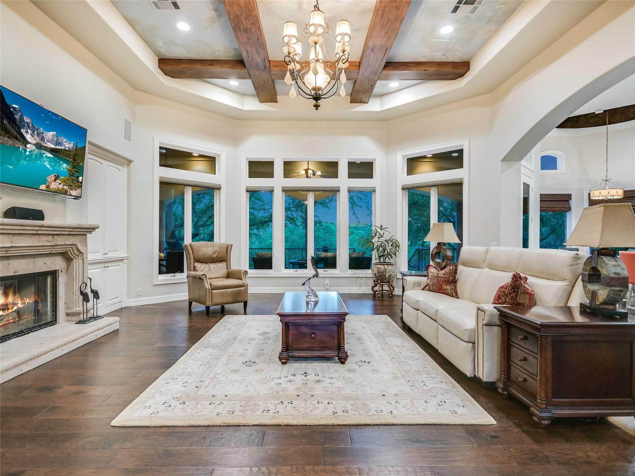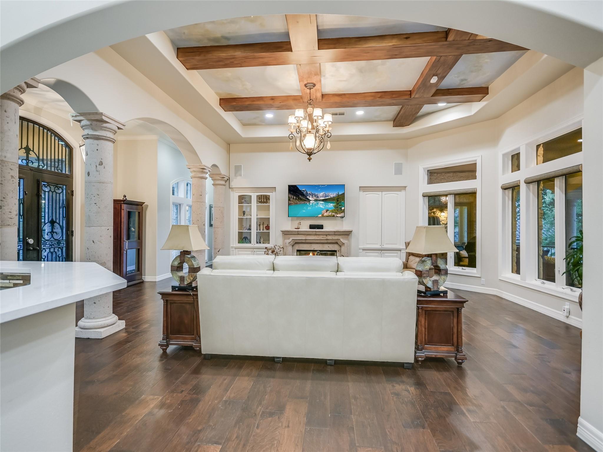 | Interior Features | Bar, Breakfast Bar, Ceiling Fan(s), Beamed Ceilings, High Ceilings, Quartz Counters, Crown Molding, Double Vanity, Gas Dryer Hookup, French Doors, High Speed Internet, In-Law Floorplan, Interior Steps, Kitchen Island, Multiple Dining Areas, Multiple Living Areas, Open Floorplan, Pantry, Primary Bedroom on Main, Walk-In Closet(s), Wet Bar, Wired for Sound | |