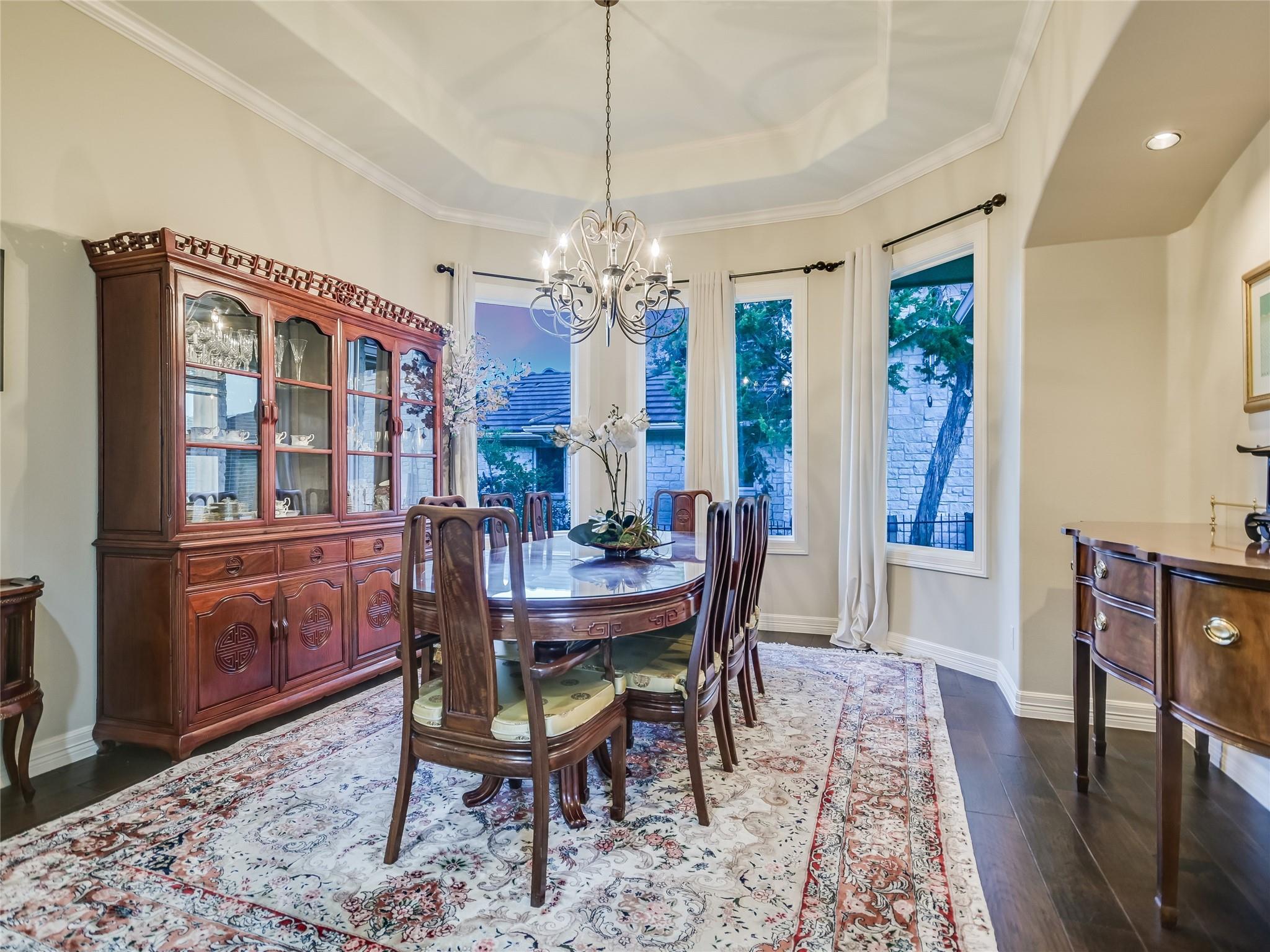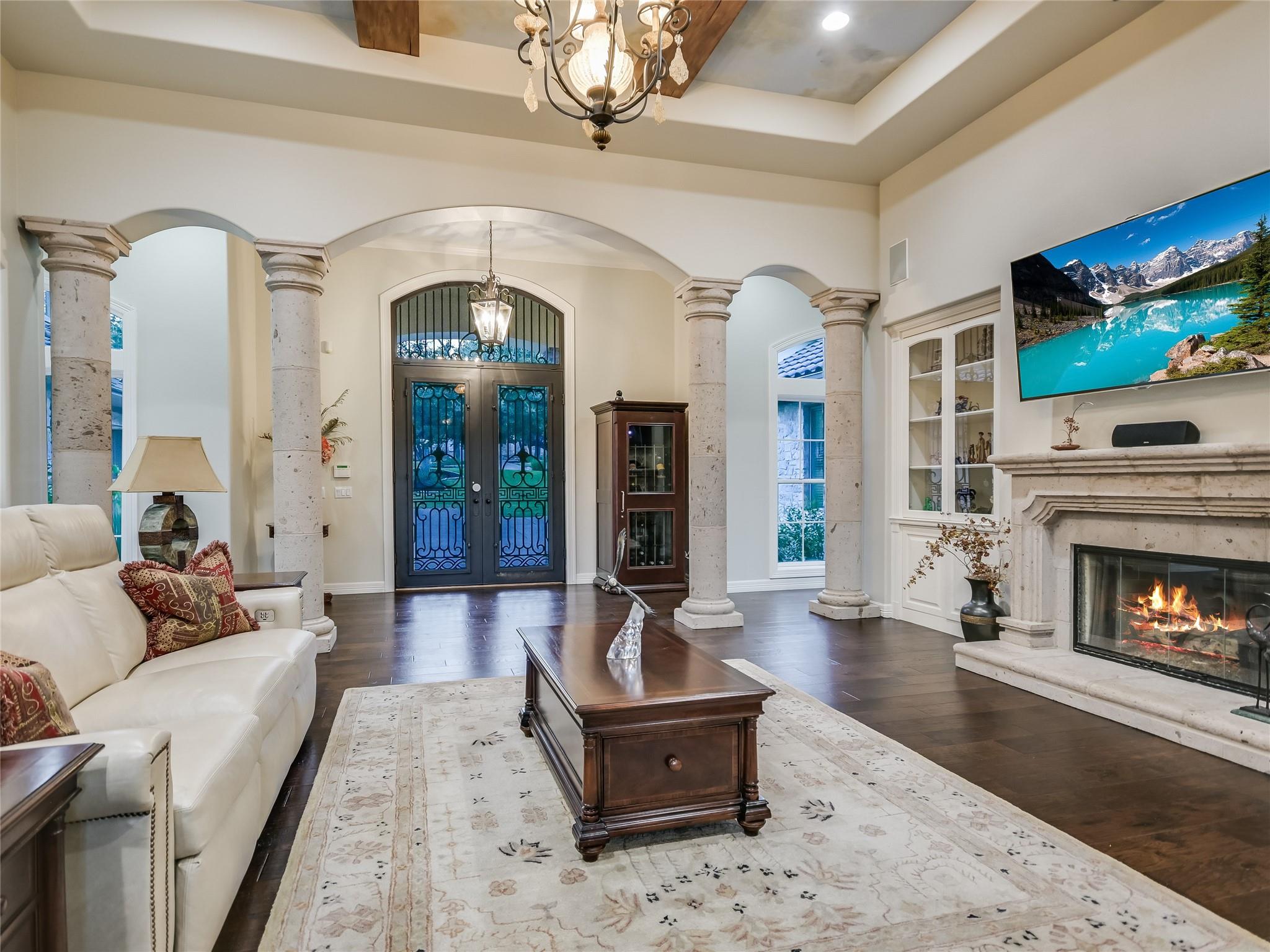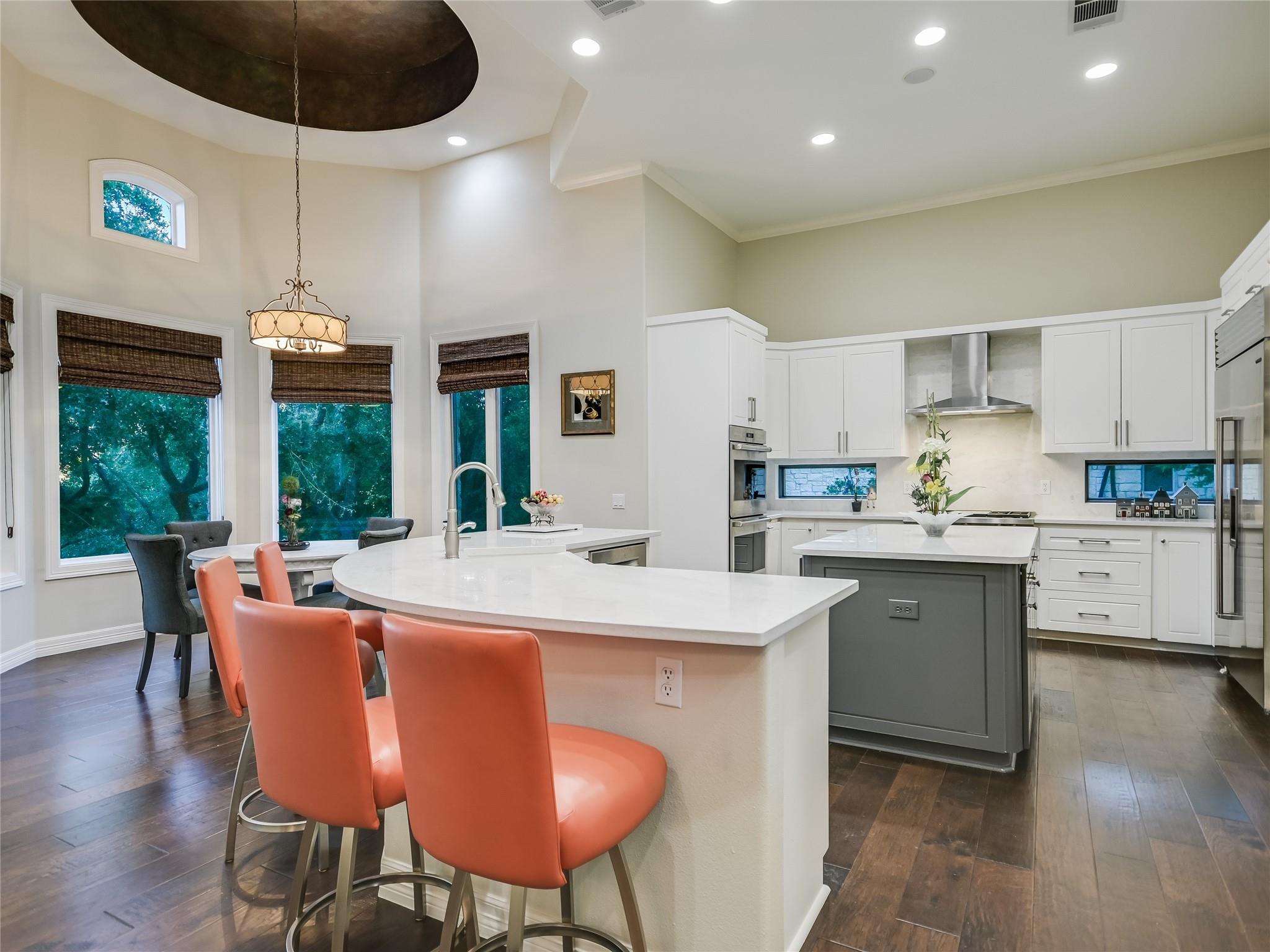 | Interior Features | Bar, Breakfast Bar, Ceiling Fan(s), Beamed Ceilings, High Ceilings, Quartz Counters, Crown Molding, Double Vanity, Gas Dryer Hookup, French Doors, High Speed Internet, In-Law Floorplan, Interior Steps, Kitchen Island, Multiple Dining Areas, Multiple Living Areas, Open Floorplan, Pantry, Primary Bedroom on Main, Walk-In Closet(s), Wet Bar, Wired for Sound | |
