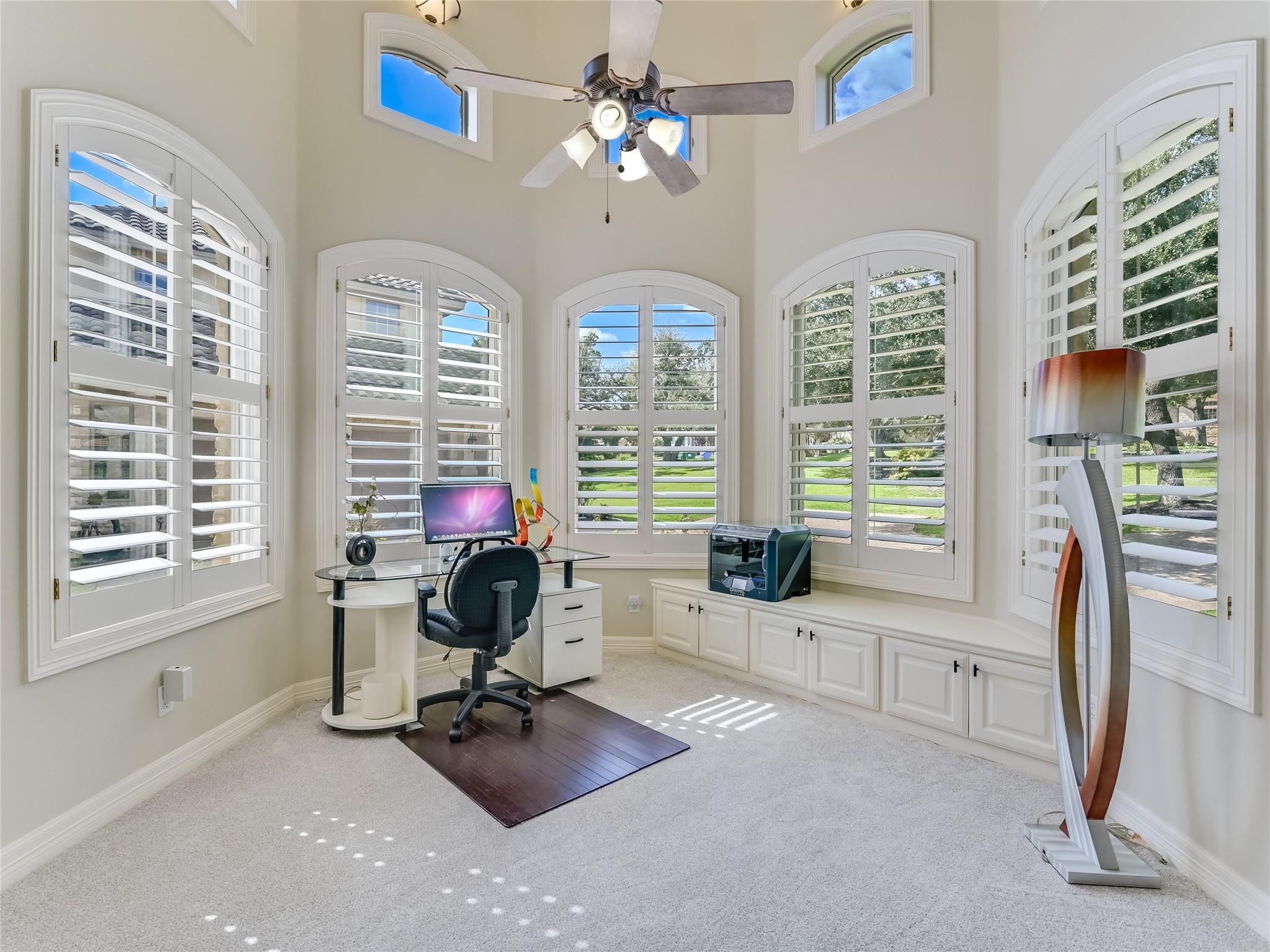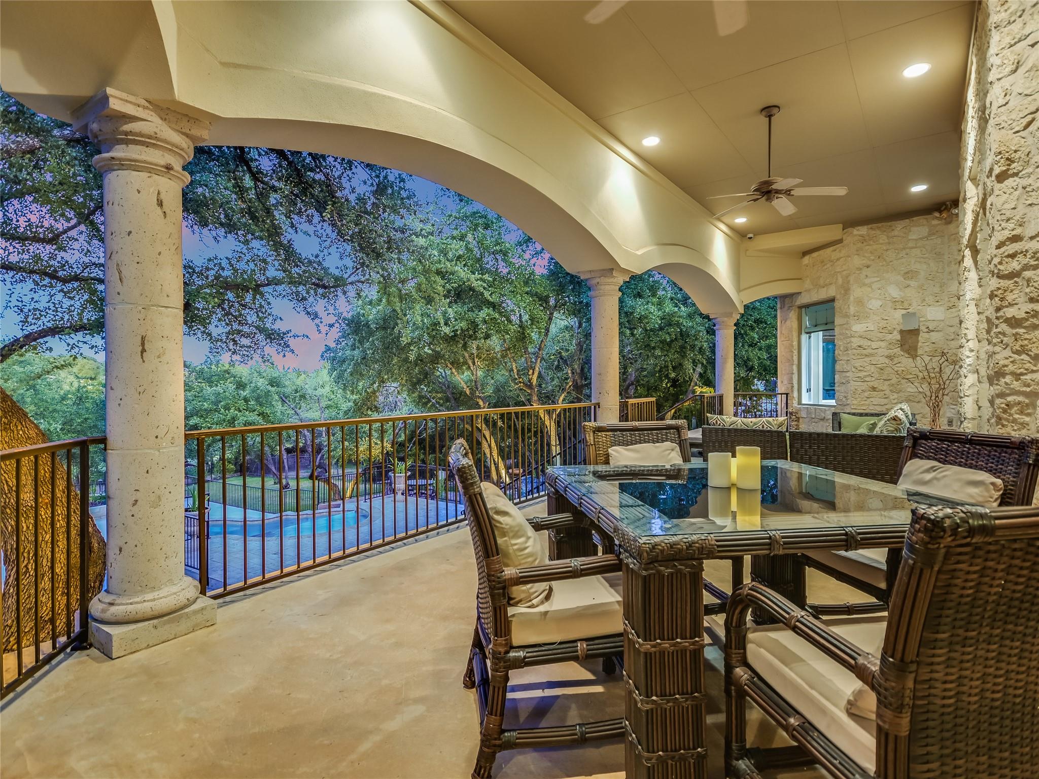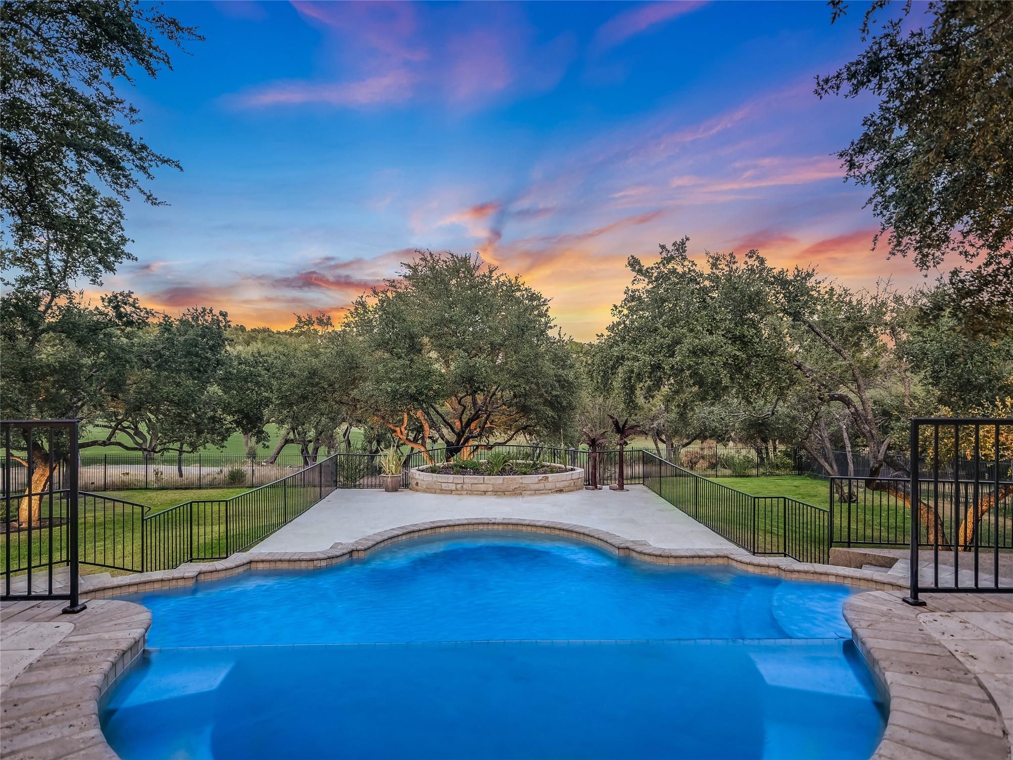 Nestled within the gated "Woods" section of Barton Creek, this exquisite custom-built residence offers the perfect blend of comfort, elegance, and modern living. This impressive home has 3,889 sq. ft. PLUS a bonus of 466 square feet above the garage. The open floor plan features 4 bedrooms, 4.5 bathrooms, a stylish study, and a bar. The bonus sq. footage above the garage is a versatile space that can be used as a guest suite, exercise room, media room, music room, or arts and crafts room. This bonus area includes a full bathroom. With a kitchen remodel in 2021, this residence boasts contemporary features and a fresh, updated look. The kitchen is a chef's haven, equipped with top-of-the-line appliances ensuring an exceptional cooking experience every time. The family room is the heart of entertainment, and a striking bar area adds a touch of luxury to your gatherings. The study provides a private and tranquil space, ideal for remote work or quiet reflection. As you step outside to the incredible backyard, you'll be captivated by the serene setting on this deep private lot, offering views of your own heated saltwater pool and spa, meticulously maintained landscaping, and the fairway of hole #6 of the Fazio Foothills golf course. Whether it's a quiet morning coffee or an evening get-together with friends, the outdoor space and expansive covered deck provides an inviting backdrop for relaxation and entertainment. This charming home is located on one of the most desired streets in Barton Creek, offering a sense of community and security within the exclusive gated neighborhood. Don't miss the opportunity to make this magnificent property yours.