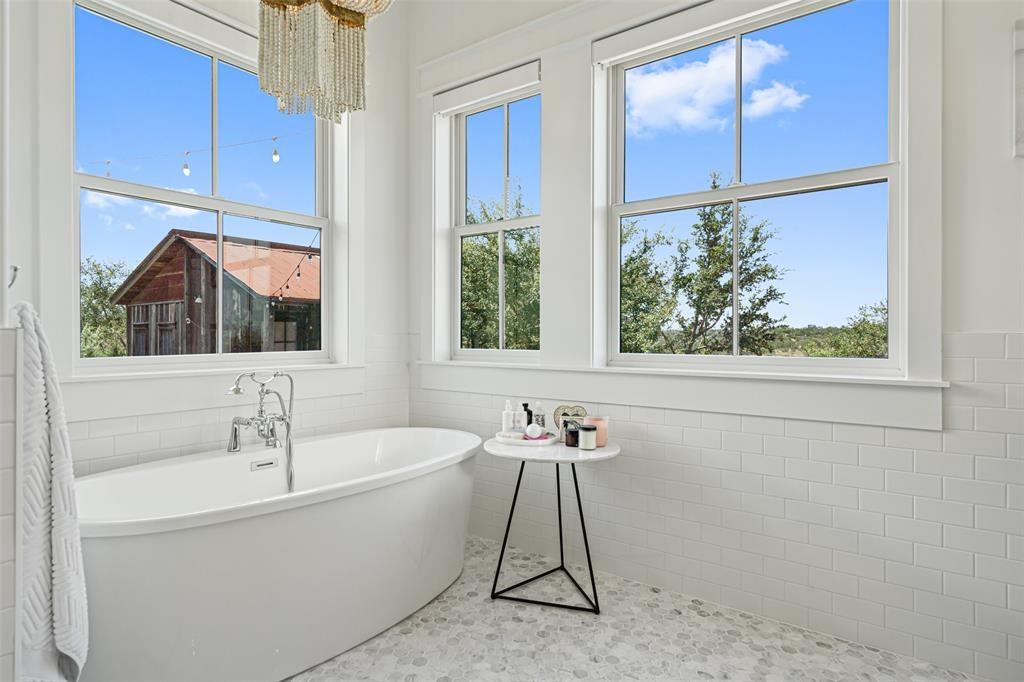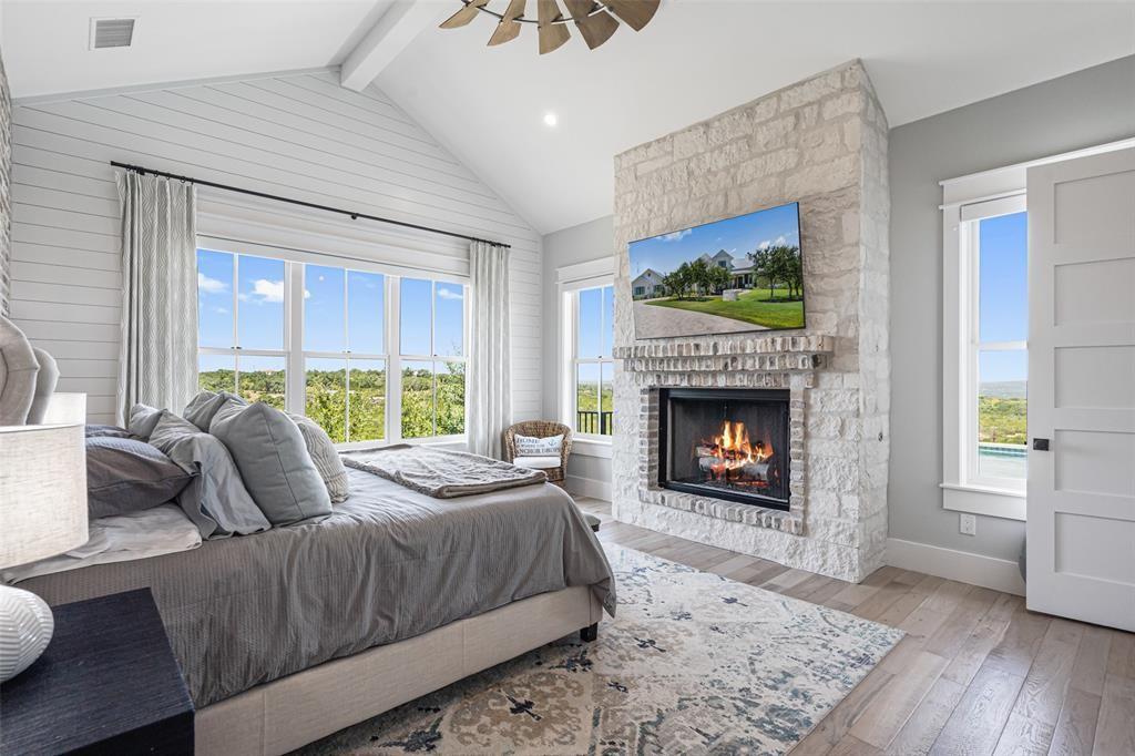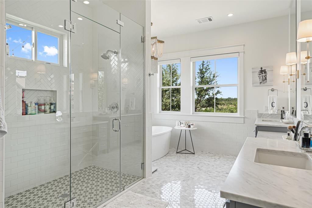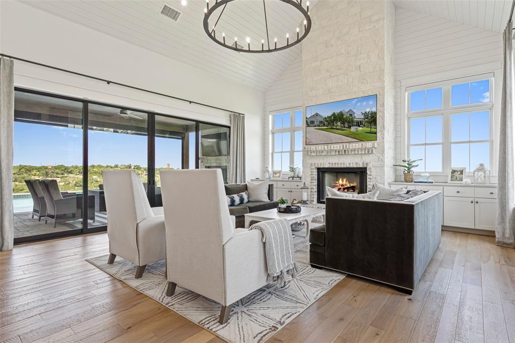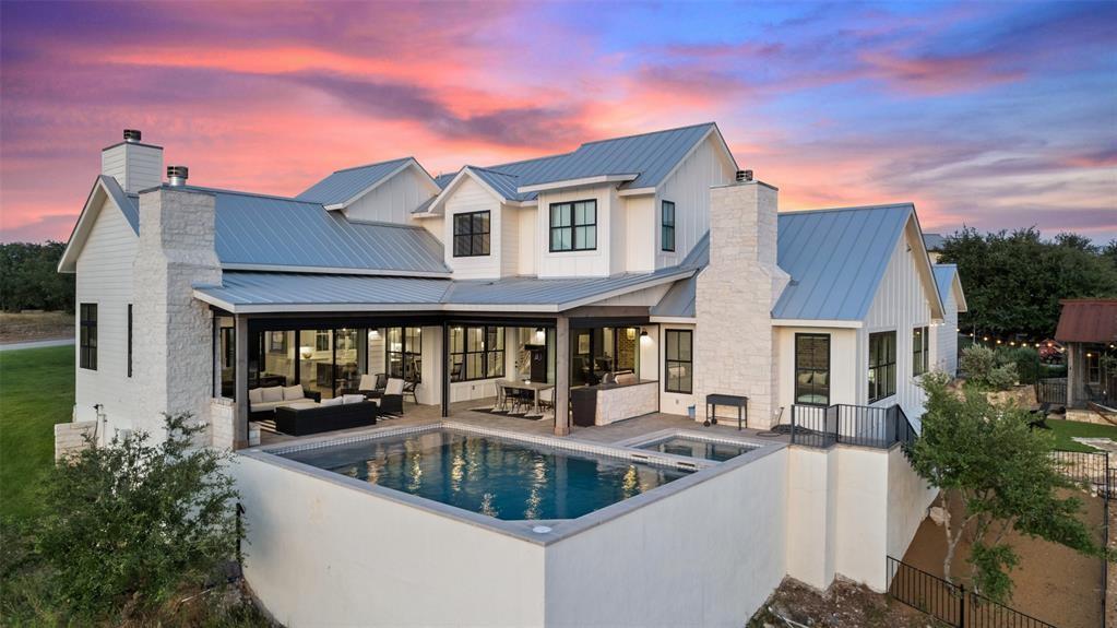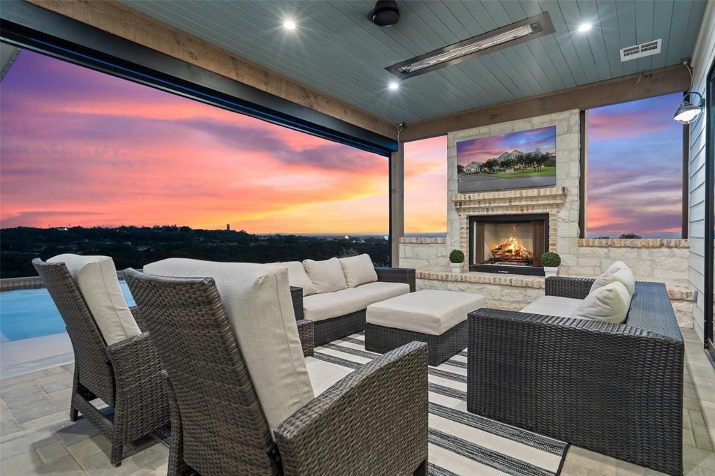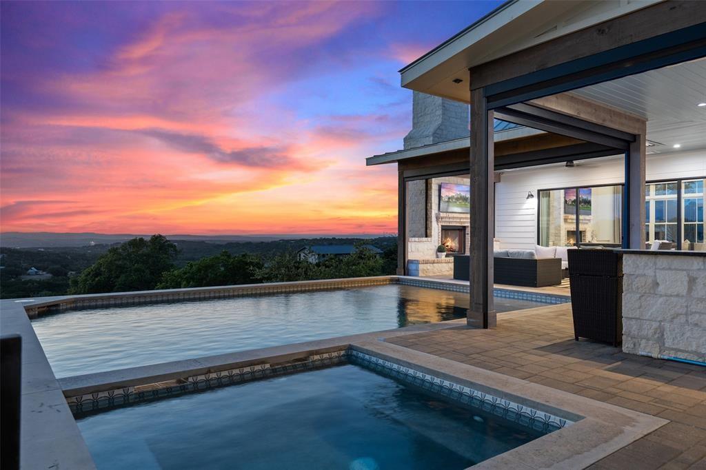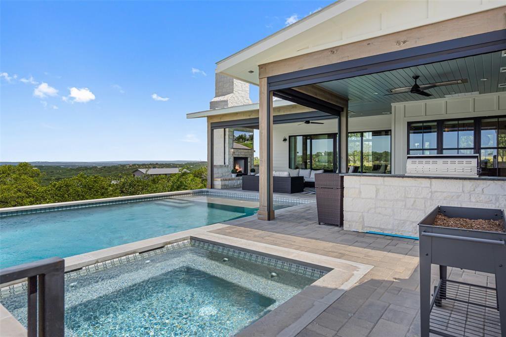 This stunning home offers breathtaking views that stretch for miles, within the highly ranked Lake Travis ISD. Step inside and be greeted by the open floor plan, flooded with an abundance of natural light. This builder's personal home showcases the highest level of finishes and attention to detail. From the spray foam insulation throughout to the standing seam metal roof, no expense has been spared in ensuring optimal energy efficiency and longevity. Additionally, an artisan-built guest casita adds a touch of charm. The main home is 3,212 sqft with 3 spacious bedrooms, an office and a den. The guest house is a cozy 330 sqft with a living and dining area and sleeping loft. The Chef's Kitchen seamlessly unfolds into a spacious breakfast room, adorned with high ceilings that create an atmosphere of grandeur. Experience the epitome of convenience and comfort with automated interior shades in every room. Stay protected from the elements with automated patio sun and bug screens, ensuring year-round enjoyment of your outdoor spaces. Furthermore, infrared red heating on the patio, along with 5 tons of exterior air-conditioning, guarantee your comfort in any season. Indulge in the beauty of your surroundings through Anderson windows and Western sliders, inviting the outdoors in. Hardwood flooring throughout adds warmth and sophistication. The detached air-conditioned garage boasts space for 3.5 cars, ensuring ample room for your vehicles and storage needs. Built with superior craftsmanship, this home features 2x6 wall construction throughout. Multiple covered patios beckon you to entertain and unwind in style. An outdoor kitchen allows for culinary delights, while the sparkling pool and spa offer a refreshing respite on warm Texas days. From the panoramic views to the thoughtfully designed outdoor spaces, every aspect has been meticulously crafted to create an unparalleled living experience.