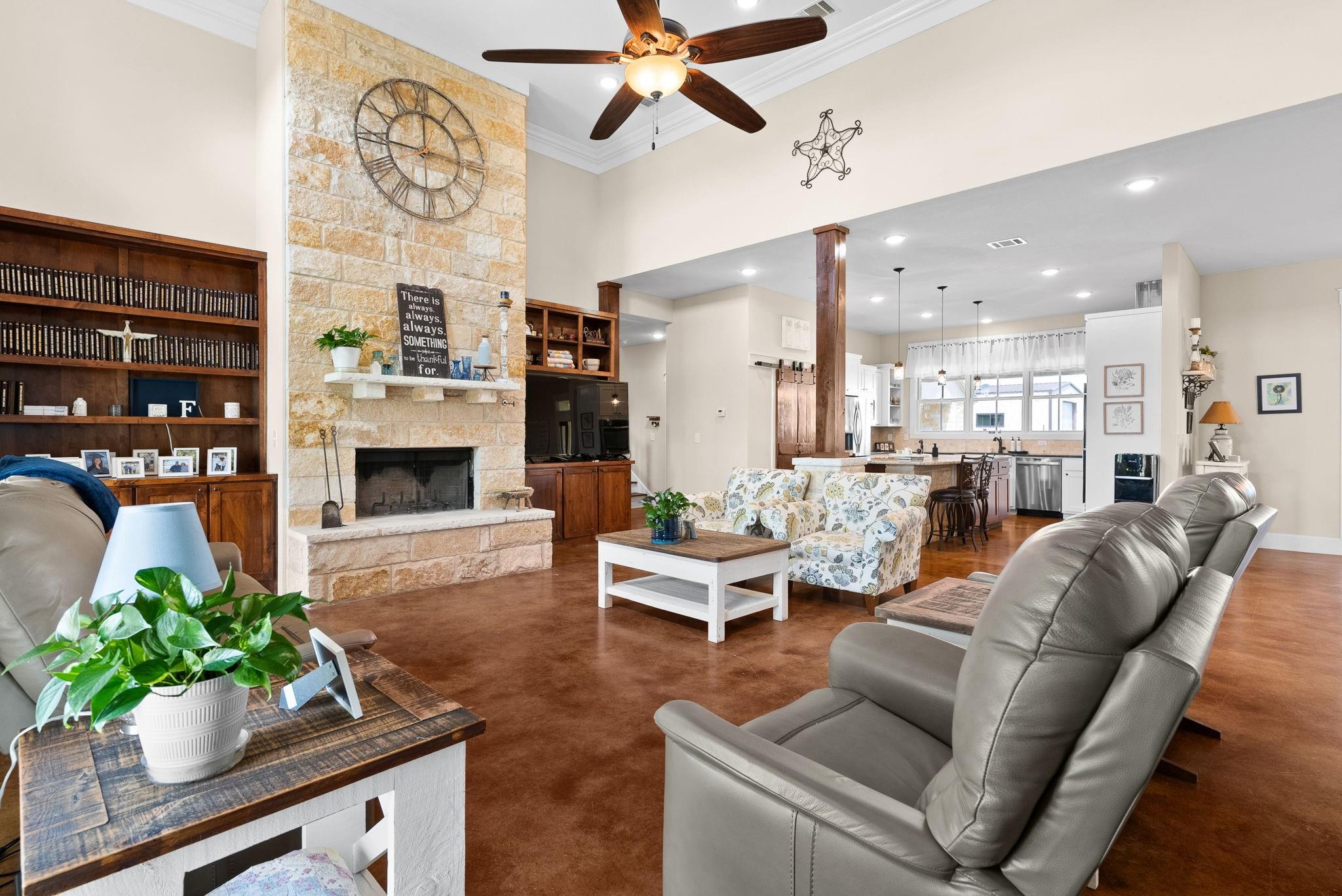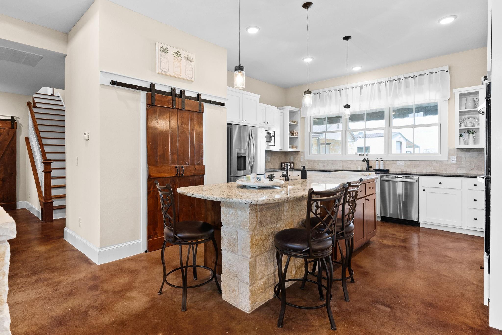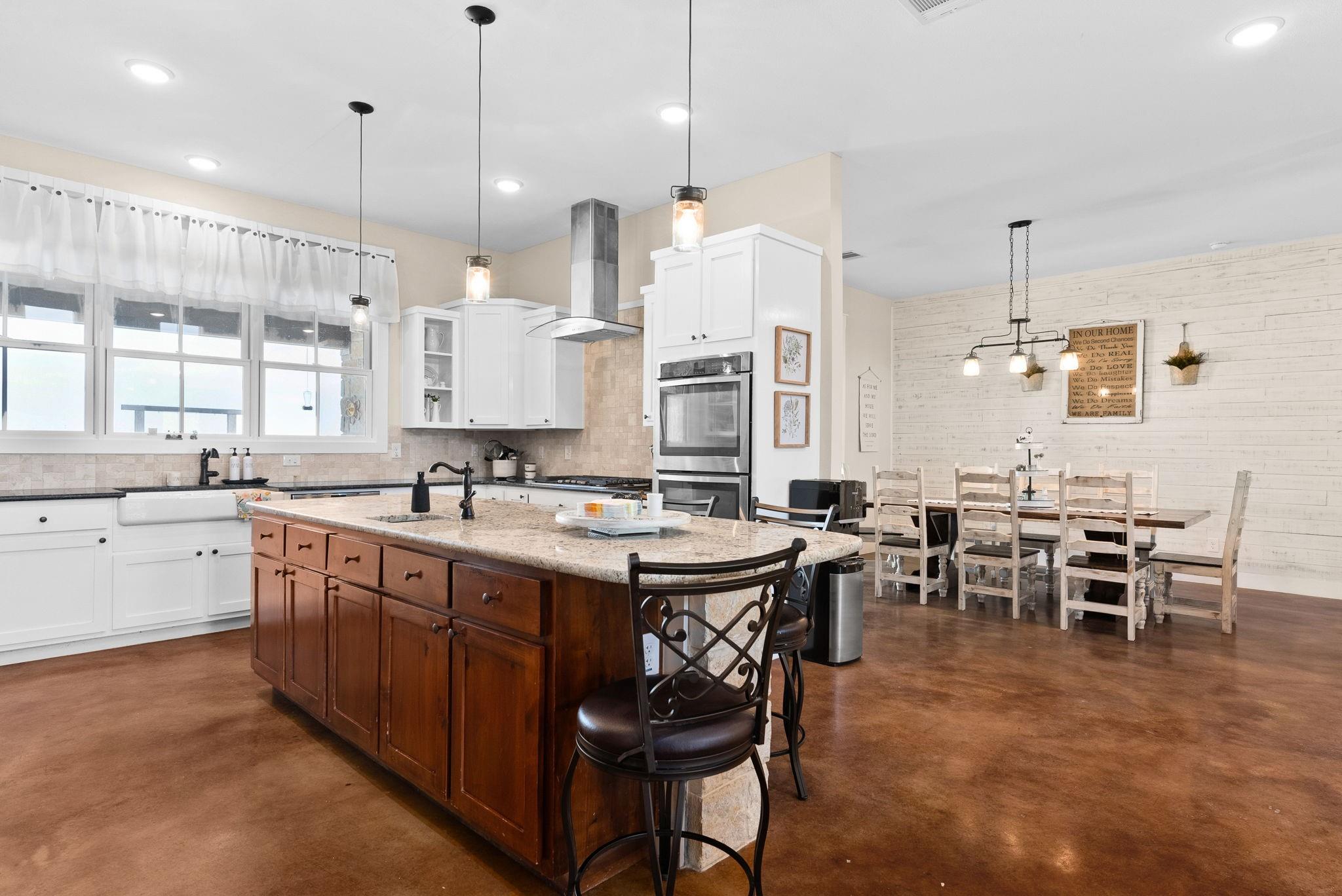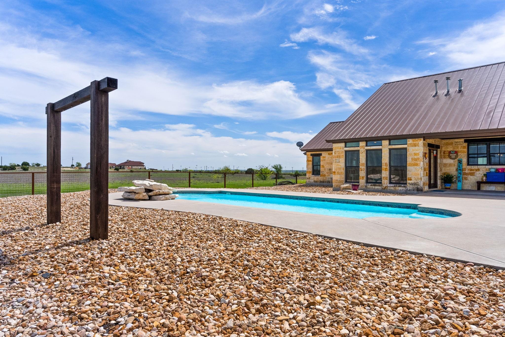 This exquisite property offers a rare opportunity to own a stunning single-family home with many desirable features. Nestled on 47.73 acres, this Texas Hill Country style main home boasts a spacious floor plan with 3 bedrooms, 3 bathrooms and many amenities. Step inside to discover a gourmet kitchen complete with a large island, granite countertops, stainless steel appliances, a walk-in pantry, and a double oven, making it a chef's dream come true. The open-concept living and dining areas are accented by a cozy fireplace, creating the perfect ambiance for relaxing evenings with family and friends. The main house spans 3011 square feet and includes a sunroom that overlooks the sparkling pool, offering a tranquil retreat within your own home. The property also features a 764 square foot guest house with 2 bedrooms and 1 bathroom providing additional living space for guests or extended family members. For those who enjoy outdoor living, this home offers a well-maintained pool, perfect for cooling off on hot summer days. The property also includes a new 5 gpm well drilled in 2023, a well house, and a 1250-gallon storage tank that ensures efficient water supply to the irrigation system, guest house and shop. The property also includes a 30x50 shop with two overhead doors and a 9x10 feed room, offering ample space for storage and hobbies. Additionally, the shop includes a 40x80 shed off that provides even more options for storage and workspace. Don't miss out on the opportunity to own this exceptional home that combines luxury living with natural beauty. Schedule a showing today and experience the gracious living in the Texas Hill Country.