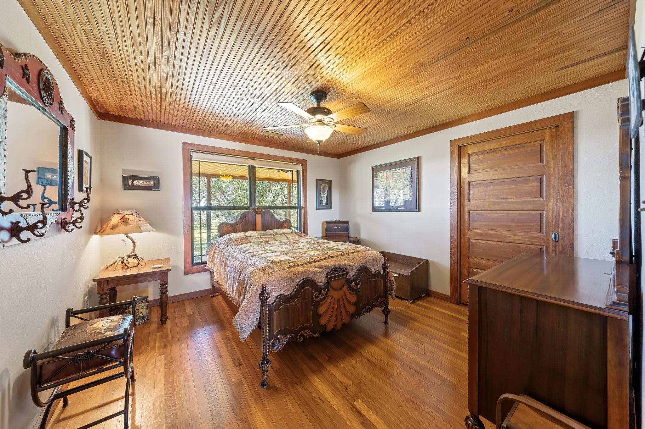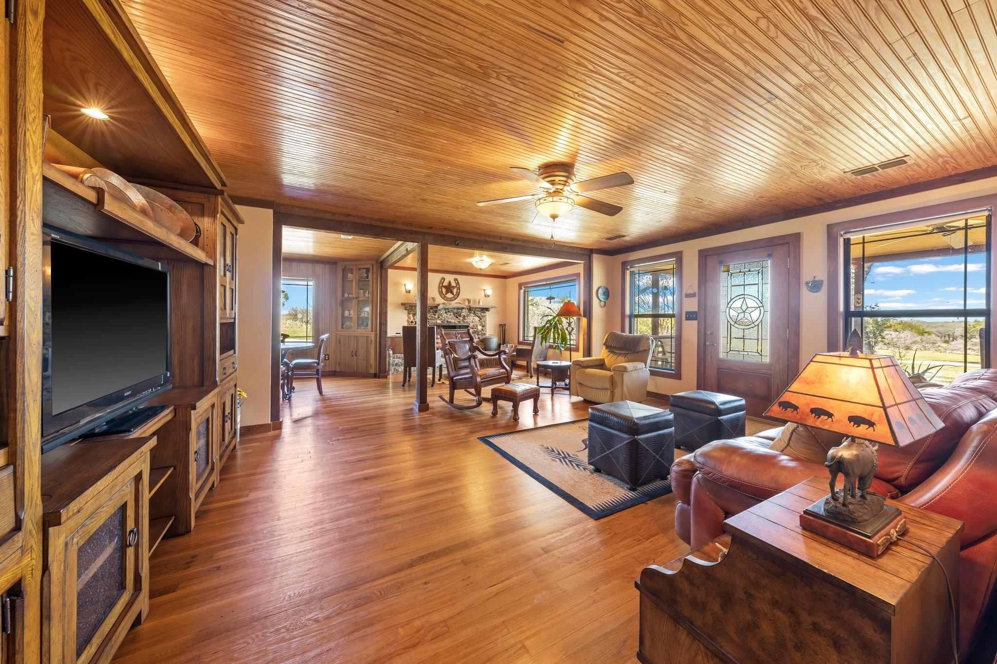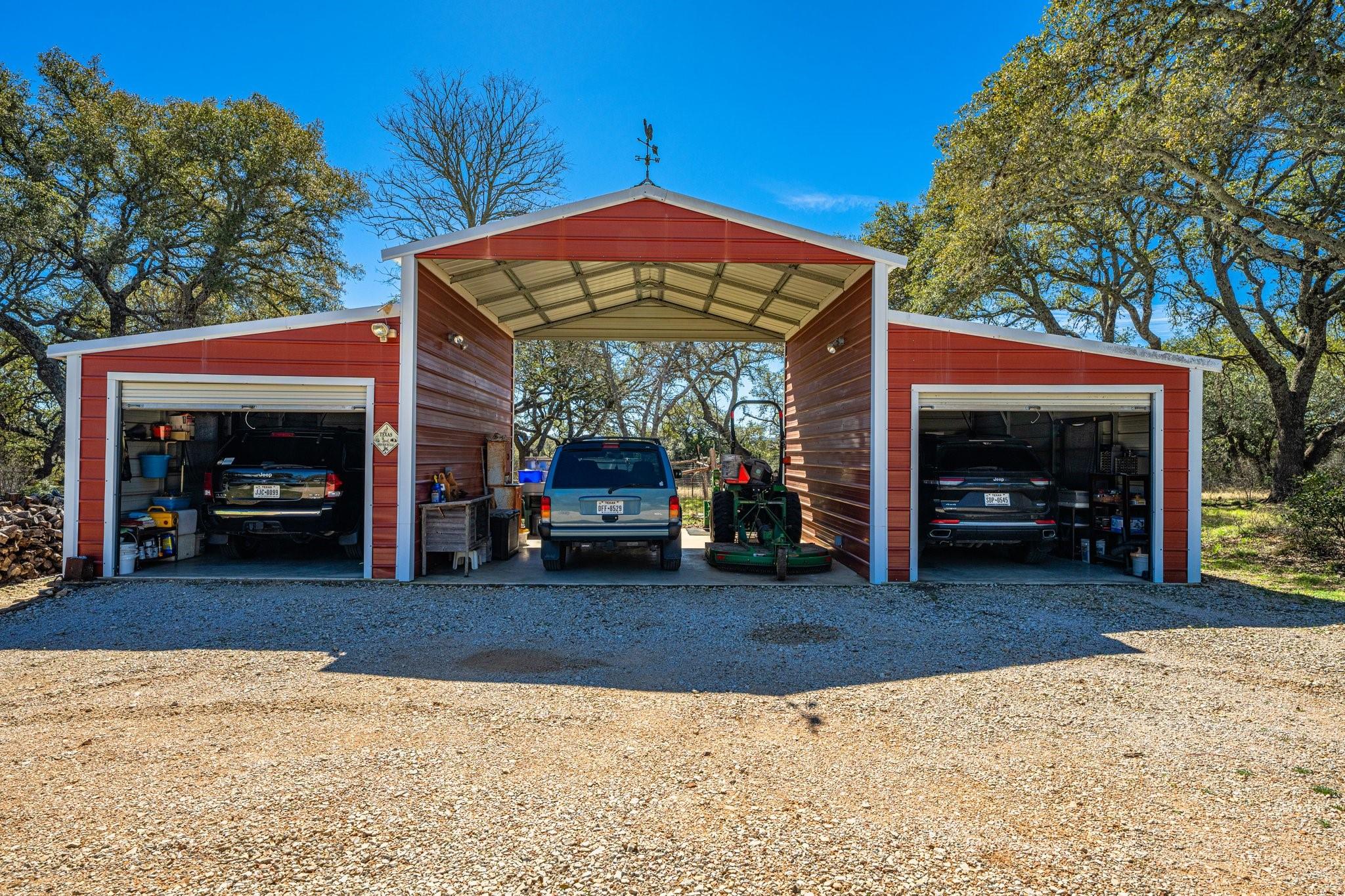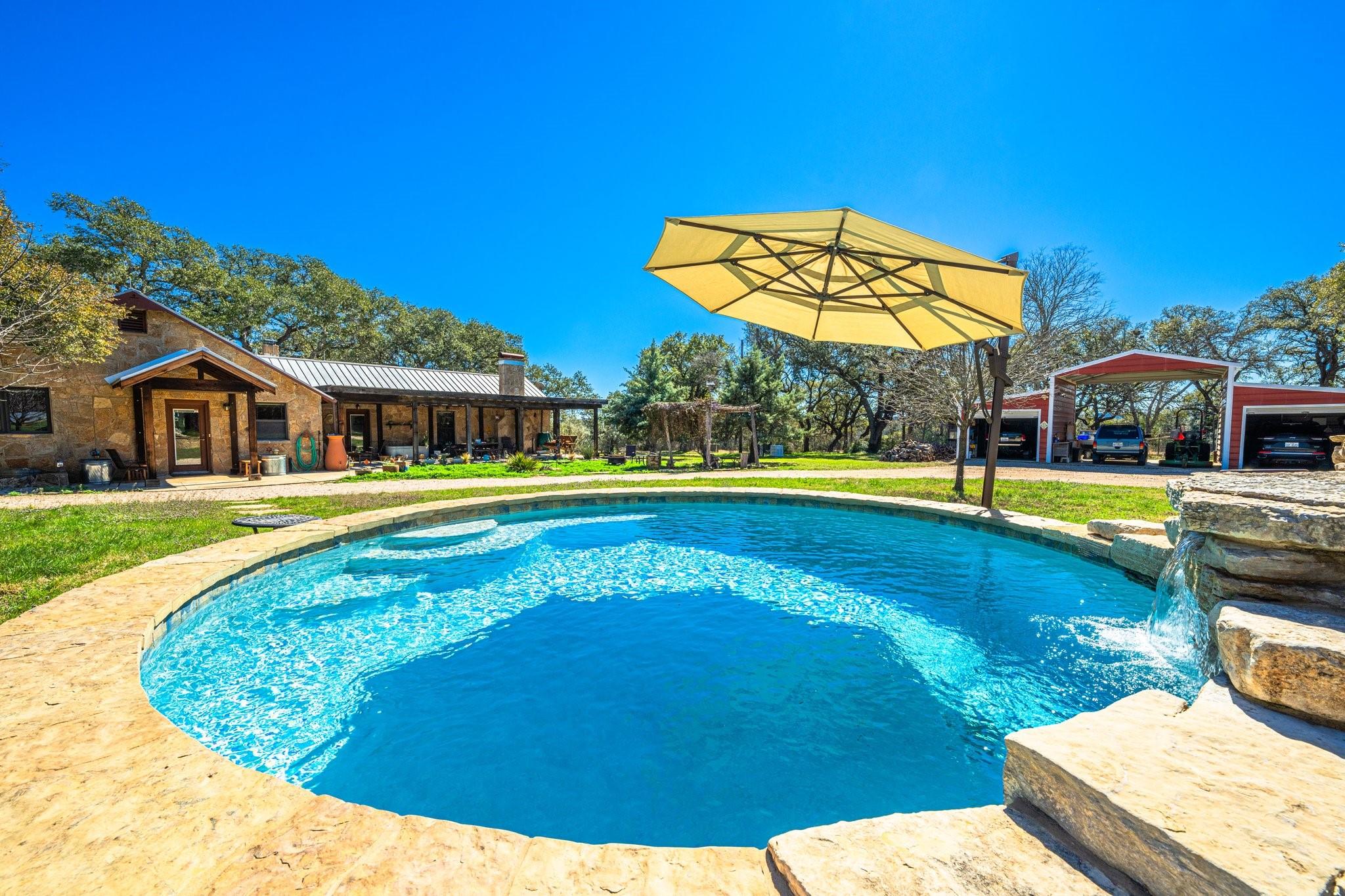 MOTIVATED SELLER! This private retreat is nestled on a sprawling 55-acres that features the tranquil Flat Creek, massive oak trees, and benefits from the wildlife exemption in place. The 55 acres consists of two adjacent lots, the original ranch home, on 32.14 acres & restored 3/2 guest house on 22.89 acres. They also can be sold separately. The estate is home to generations of foxes, owls, and turkeys raising their young, offering an abundance of wildlife. Conveniently located 4 minutes to downtown Johnson City. The living quarters include a lovingly restored rock ranch house and a 3/2 fully furnished barndominium guest quarters. The main house is a 3/2 featuring pressed tin ceilings in the kitchen, custom hickory cabinets, beadboard ceilings, and original oak hardwood floors. Upscale interior features include a fireplace in living room and a propane soapstone stove in the master bedroom and luxurious Kohler jacuzzi tub in the guest bathroom. Recent upgrades include a new whole-house Generac generator and an high end AC unit. Outdoors, you'll find an inviting in-ground pool complete with a cascading waterfall, offering a serene oasis for relaxation and entertainment. Beyond the main residence, amenities cater to every need, from the expansive 2-car garage with room for extra parking and the large RV carport. Additionally, there is a 3/2 guest house featuring spray foam insulation for enhanced energy efficiency, and beautiful wood detail throughout. The guest home can be used for long term rental income. This estate effortlessly marries functionality with comfort. Schedule a showing today!
