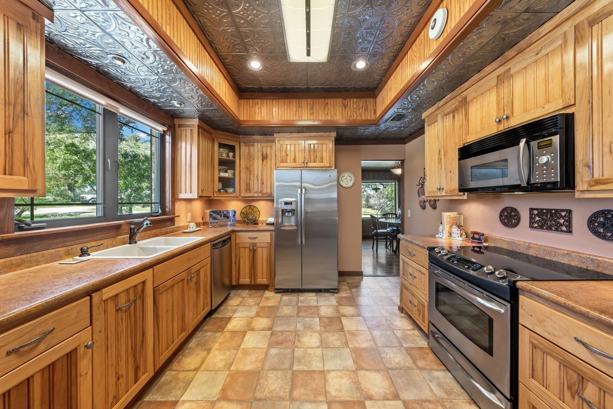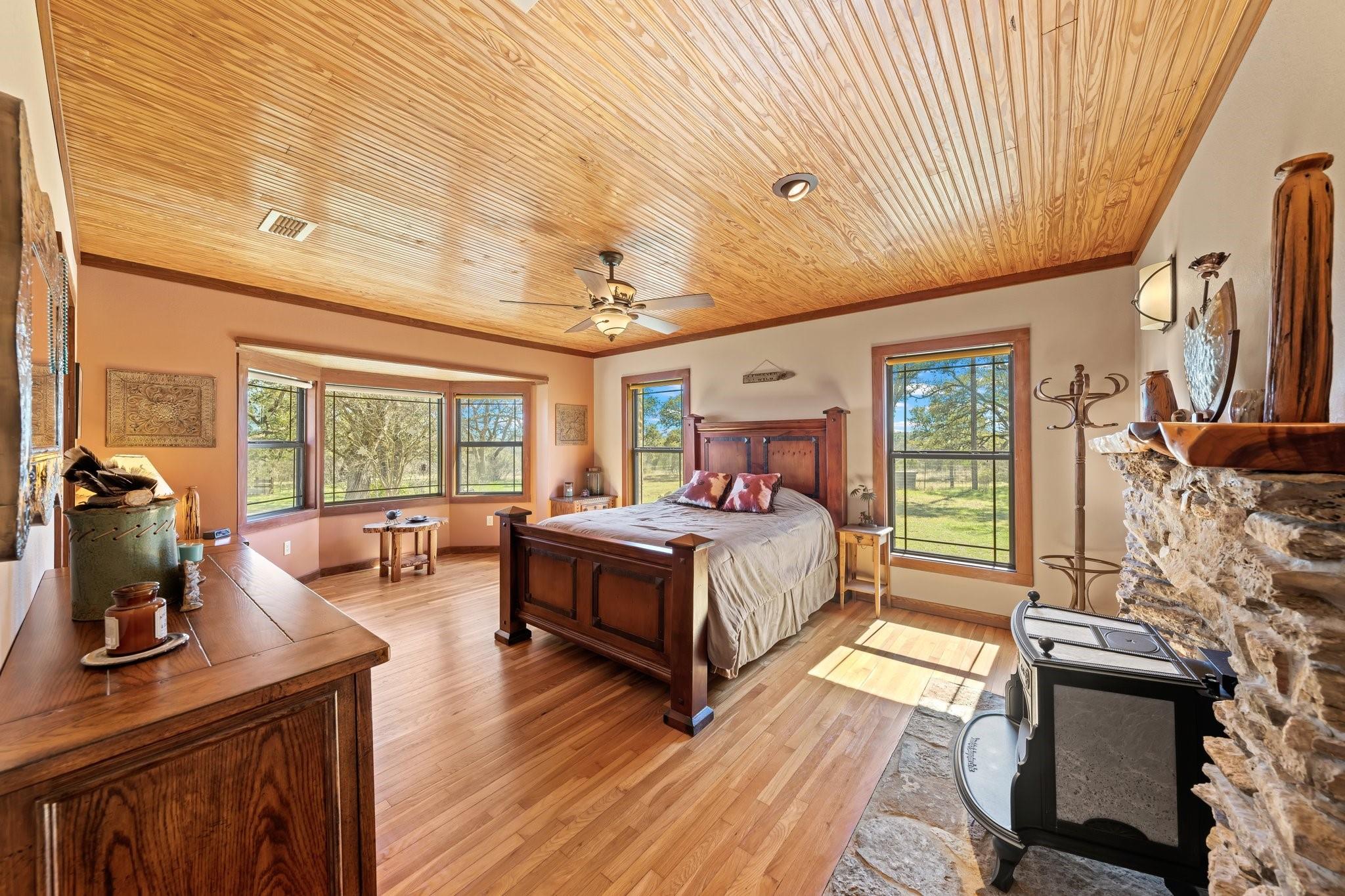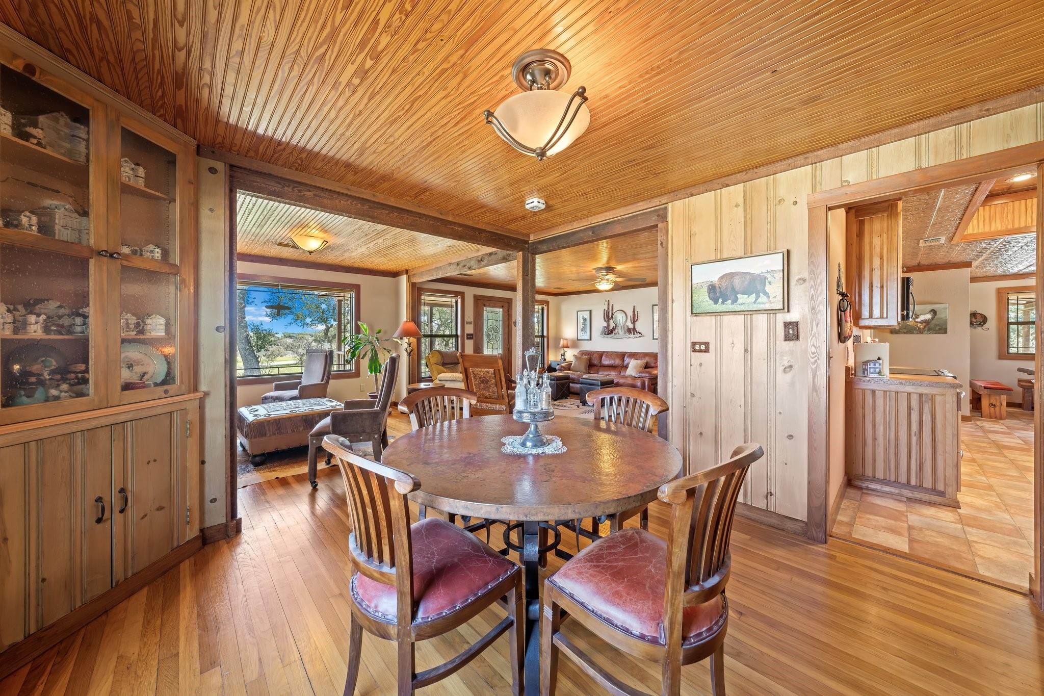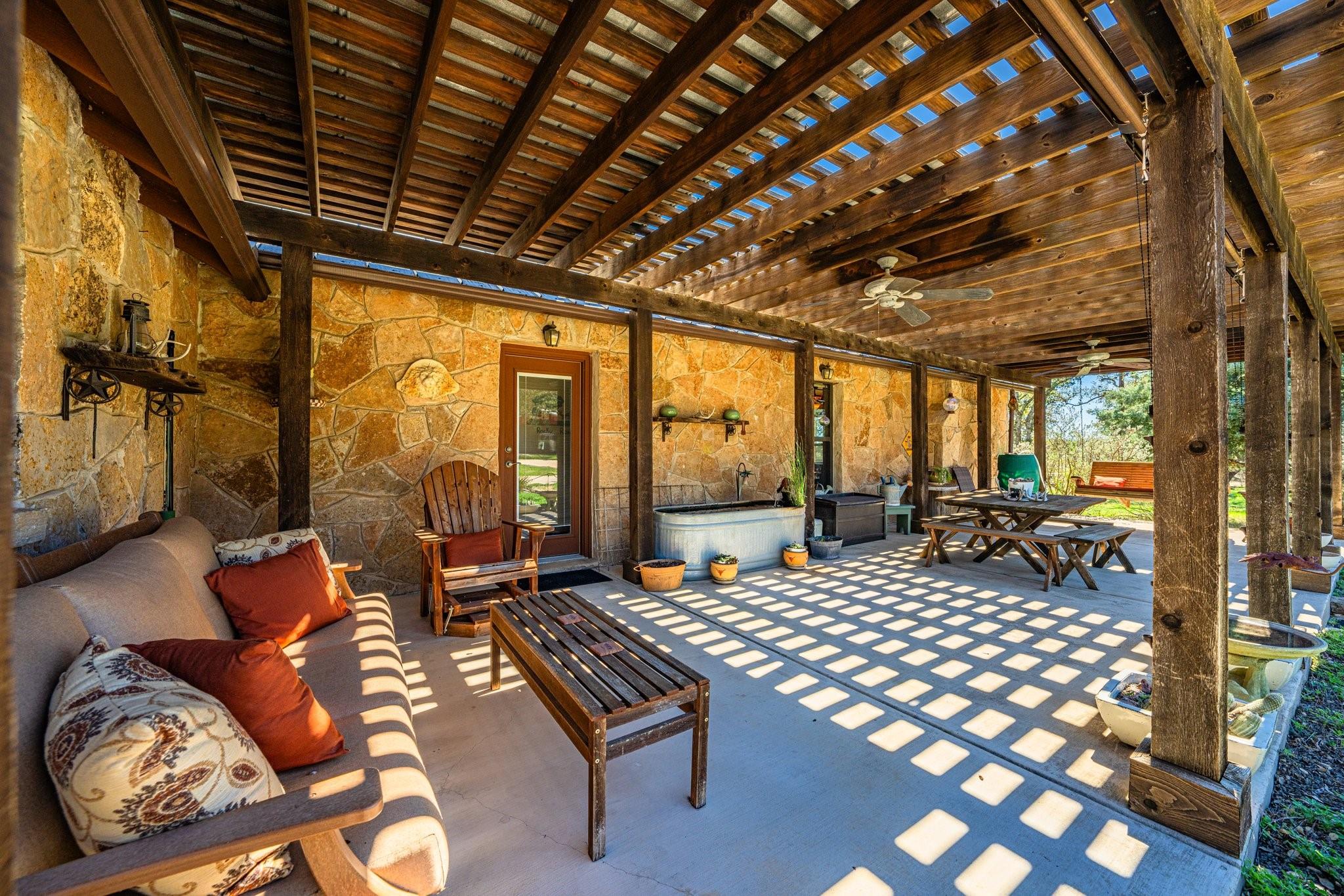 MOTIVATED SELLER! This private retreat is nestled on a sprawling 55-acres that features the tranquil Flat Creek, massive oak trees, and benefits from the wildlife exemption in place. The 55 acres consists of two adjacent lots, the original ranch home, on 32.14 acres & restored 3/2 guest house on 22.89 acres. They also can be sold separately. The estate is home to generations of foxes, owls, and turkeys raising their young, offering an abundance of wildlife. Conveniently located 4 minutes to downtown Johnson City. The living quarters include a lovingly restored rock ranch house and a 3/2 fully furnished barndominium guest quarters. The main house is a 3/2 featuring pressed tin ceilings in the kitchen, custom hickory cabinets, beadboard ceilings, and original oak hardwood floors. Upscale interior features include a fireplace in living room and a propane soapstone stove in the master bedroom and luxurious Kohler jacuzzi tub in the guest bathroom. Recent upgrades include a new whole-house Generac generator and an high end AC unit. Outdoors, you'll find an inviting in-ground pool complete with a cascading waterfall, offering a serene oasis for relaxation and entertainment. Beyond the main residence, amenities cater to every need, from the expansive 2-car garage with room for extra parking and the large RV carport. Additionally, there is a 3/2 guest house featuring spray foam insulation for enhanced energy efficiency, and beautiful wood detail throughout. The guest home can be used for long term rental income. This estate effortlessly marries functionality with comfort. Schedule a showing today!