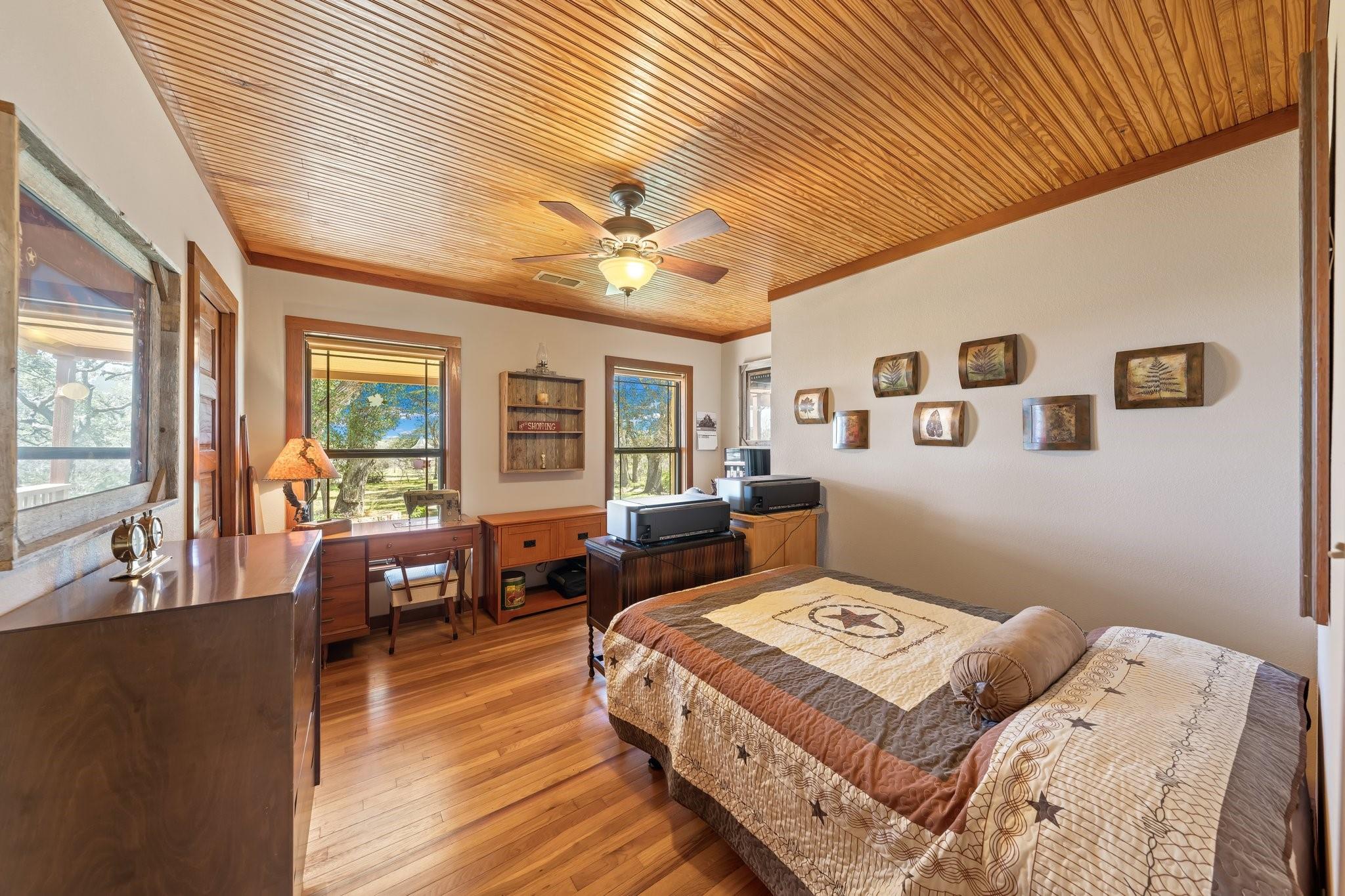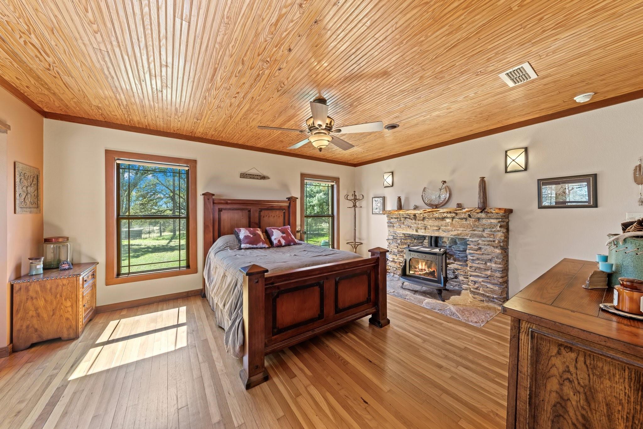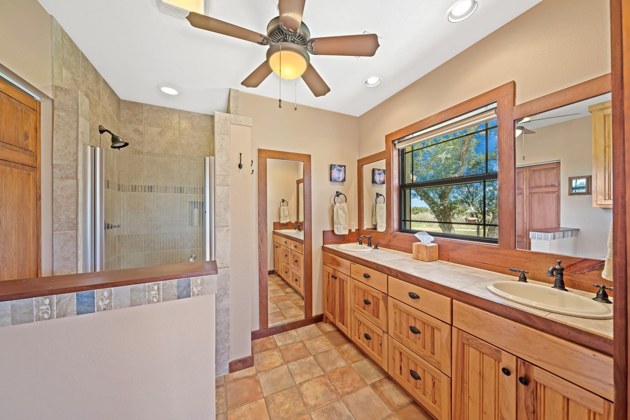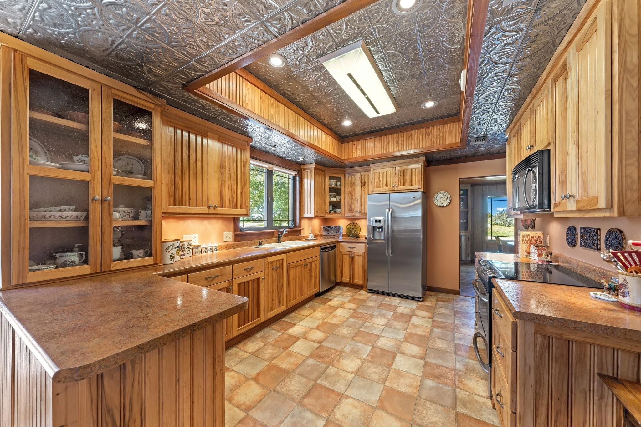 MOTIVATED SELLER! This private retreat is nestled on a sprawling 55-acres that features the tranquil Flat Creek, massive oak trees, and benefits from the wildlife exemption in place. The 55 acres consists of two adjacent lots, the original ranch home, on 32.14 acres & restored 3/2 guest house on 22.89 acres. They also can be sold separately. The estate is home to generations of foxes, owls, and turkeys raising their young, offering an abundance of wildlife. Conveniently located 4 minutes to downtown Johnson City. The living quarters include a lovingly restored rock ranch house and a 3/2 fully furnished barndominium guest quarters. The main house is a 3/2 featuring pressed tin ceilings in the kitchen, custom hickory cabinets, beadboard ceilings, and original oak hardwood floors. Upscale interior features include a fireplace in living room and a propane soapstone stove in the master bedroom and luxurious Kohler jacuzzi tub in the guest bathroom. Recent upgrades include a new whole-house Generac generator and an high end AC unit. Outdoors, you'll find an inviting in-ground pool complete with a cascading waterfall, offering a serene oasis for relaxation and entertainment. Beyond the main residence, amenities cater to every need, from the expansive 2-car garage with room for extra parking and the large RV carport. Additionally, there is a 3/2 guest house featuring spray foam insulation for enhanced energy efficiency, and beautiful wood detail throughout. The guest home can be used for long term rental income. This estate effortlessly marries functionality with comfort. Schedule a showing today!