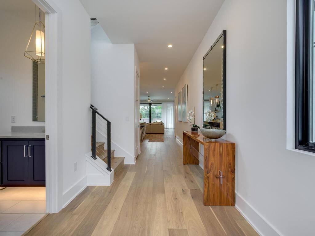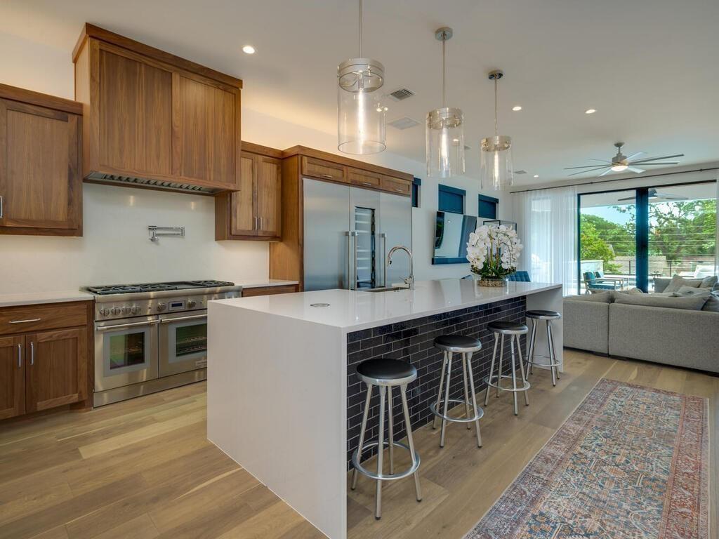 Breakfast Bar, Ceiling Fan(s), High Ceilings, Quartz Counters, Double Vanity, Dry Bar, Gas Dryer Hookup, Entrance Foyer, High Speed Internet, Interior Steps, Kitchen Island, Open Floorplan, Pantry, Primary Bedroom on Main, Smart Thermostat, Walk-In Closet(s), Washer Hookup, Wired for Data, Wired for Sound, See Remarks |