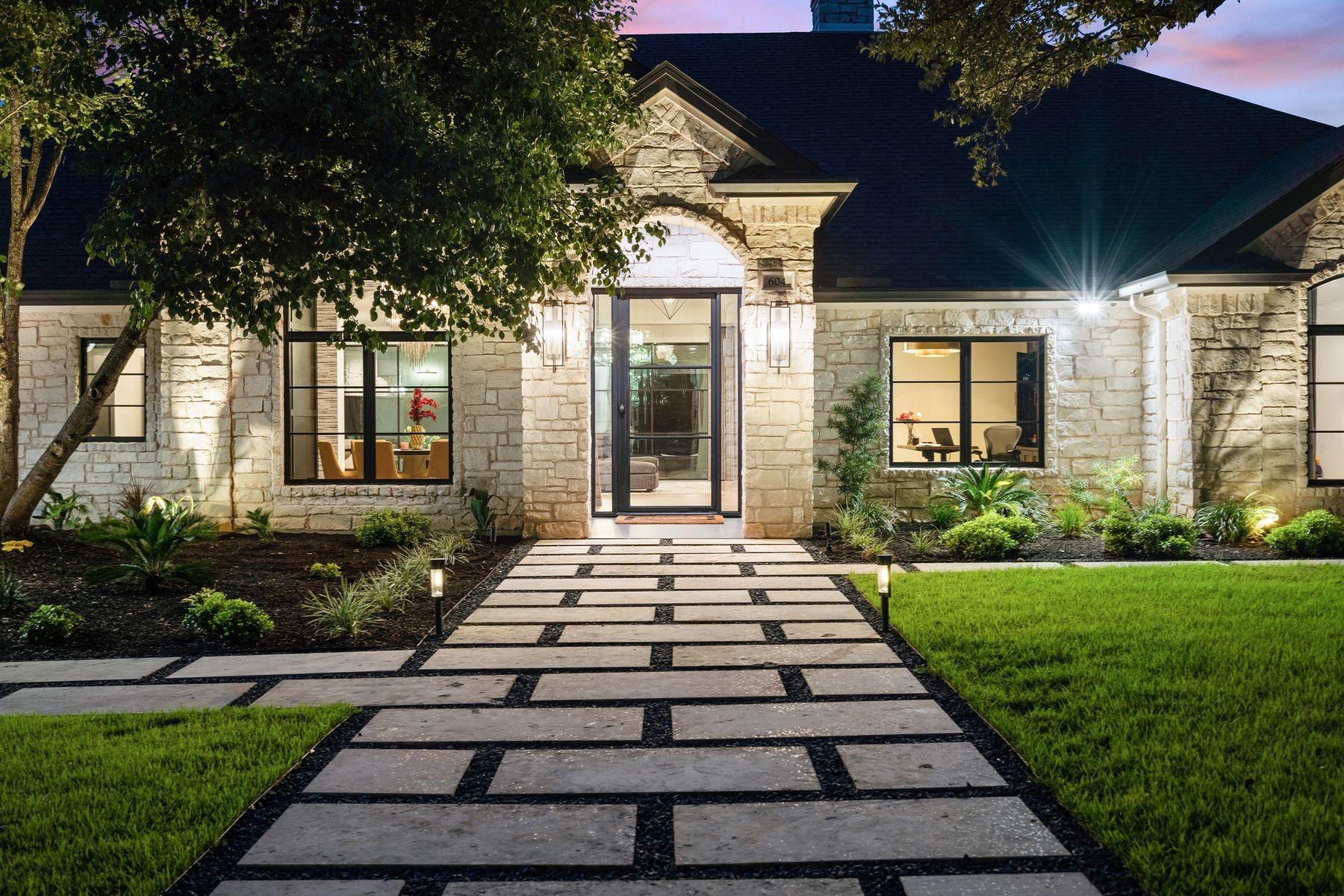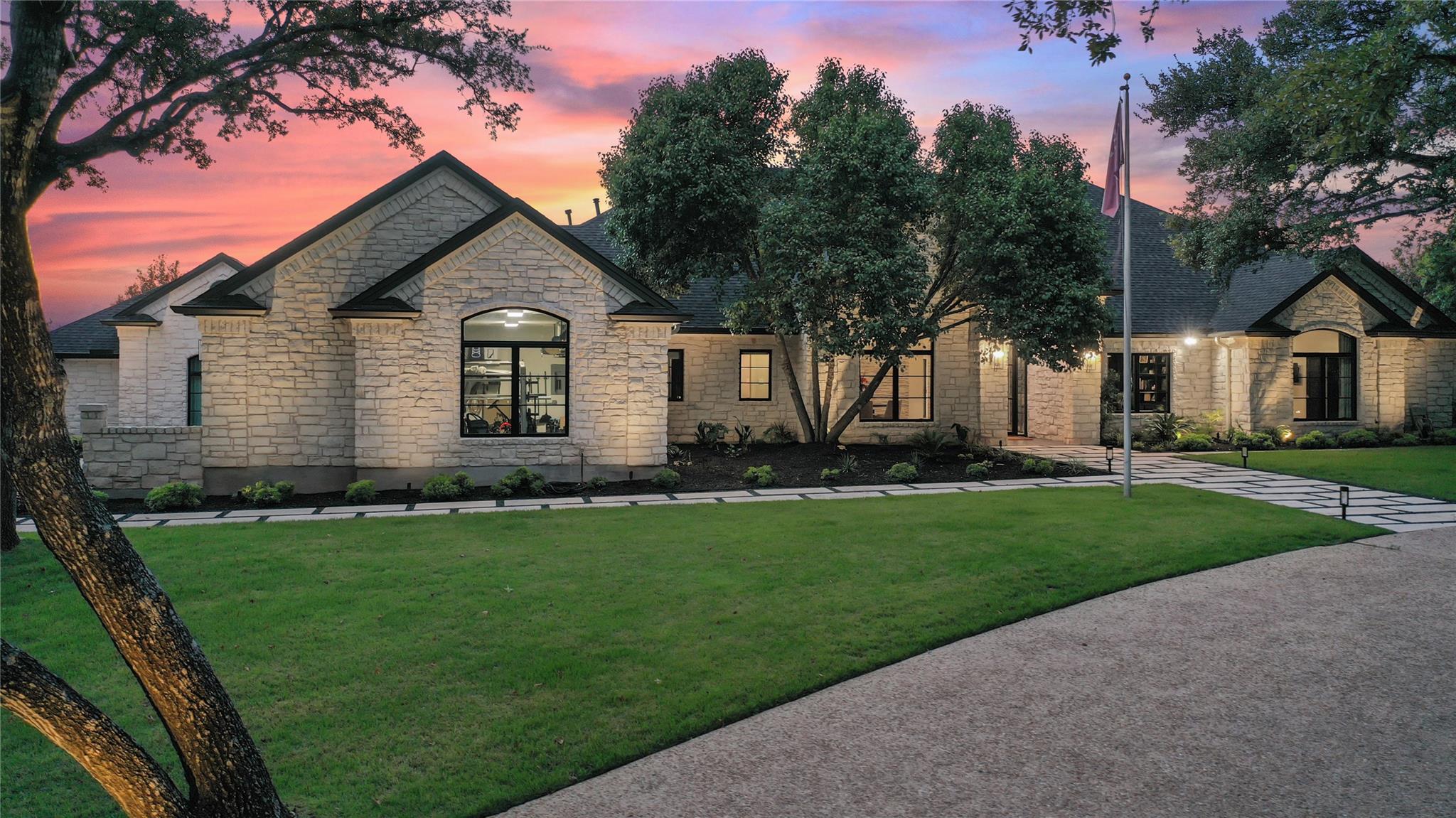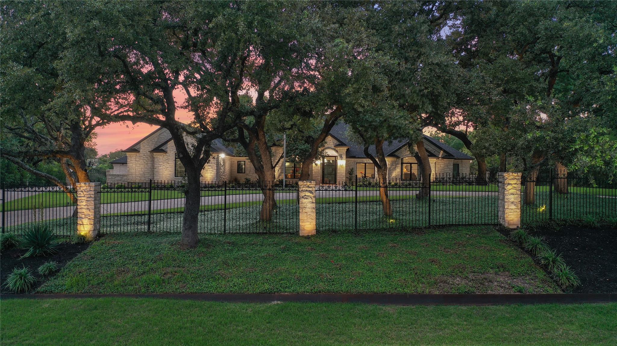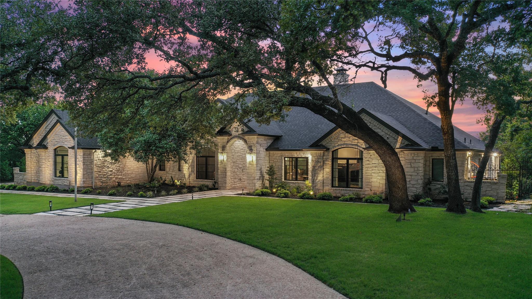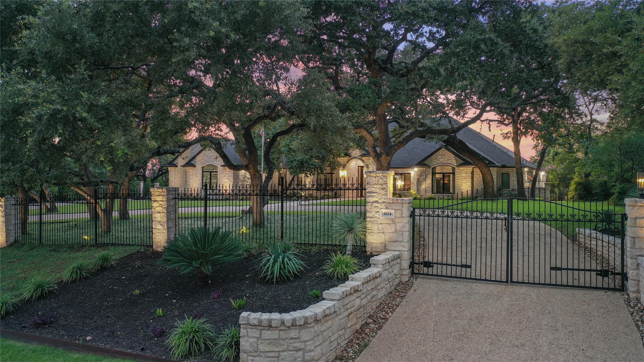Sophisticated resort-style property on 2.29 gated, private acres in Rob Roy on the Creek. This rare one-story estate homes overlooks hill country views of Barton Creek through a landscape dotted with mature oak trees, tropical bananas and stately palms. Revel in your surroundings as you bask in the resort like pool, covered bar and outdoor kitchen overlooking a lush green lawn and the wilderness below; light the evenings with fire bowls flanking the pool. Extensively remodeled in 2020, the interior is a sleek, glamorous counterpart to the stunning views framed by blackened steel windows and doors. Throughout, you will find exquisite materials and striking accents combining to convey style and quality. Bookended by striking herringbone tile fireplaces on each end and the gorgeous gourmet kitchen, the expansive main living area opens directly out to the terrace, exponentially expanding living and entertaining space. Host a wine-tasting event with bottles pulled from the glass-enclosed wine cellar or movie night in the game room which enjoys its own mirror-and-brass bar. The refined primary suite enjoys a wall of windows looking out over the backyard greenery and a sleek, marble bath in which to prepare for the day. Architectural plans for a secondary 5th bedroom, 1100 square-foot primary suite with striking views offer tremendous value and room to expand the transitional floorplan.
