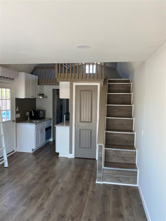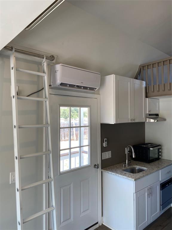 Highly efficient 640 sq ft Tiny Home on large lot for lease. One bedroom downstairs, two lofts upstairs. Main Bedroom has ample storage and built-in dresser in the closet as well. Kitchen includes granite countertops, microwave with hot plate, dishwasher, and refrigerator. Electric tankless hot water heater in bath. Pull-out washing machine. Large wooden wrap around deck. This property is fully fenced with automatic gate.
