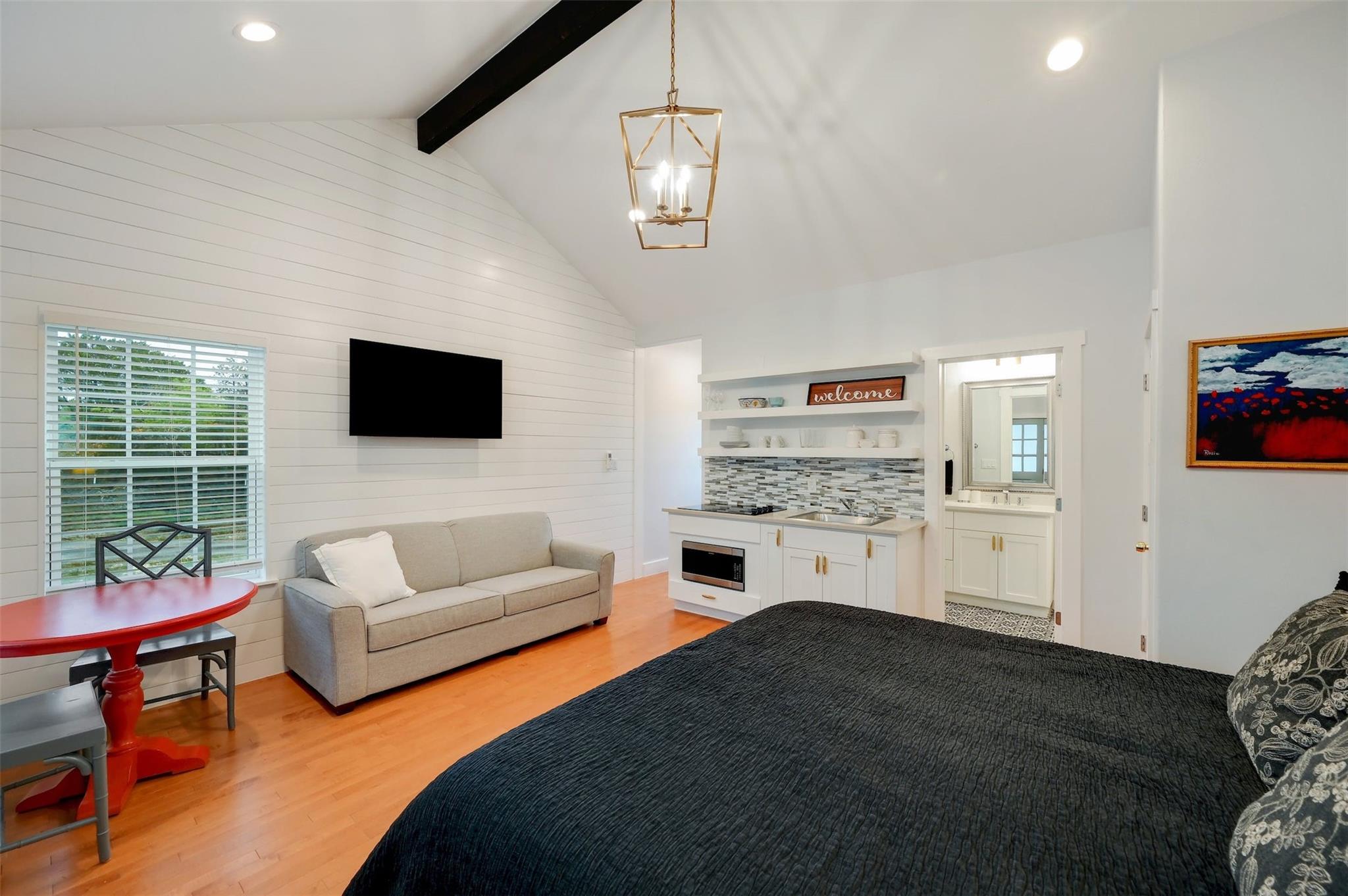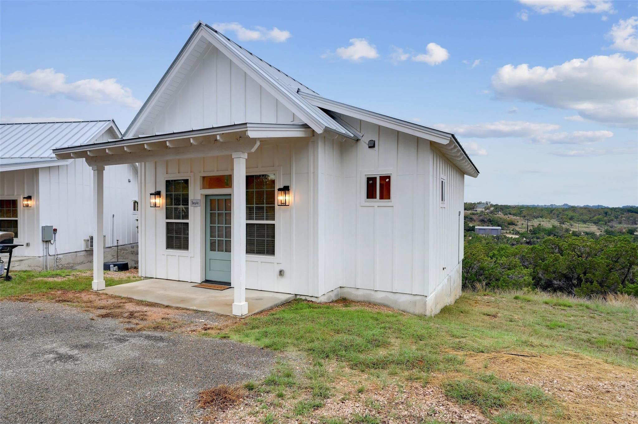 Welcome to Madrona Ranch, a sprawling 30-acre haven of Hill Country bliss offering limitless possibilities. This remarkable property, nestled atop rolling hills, is an ideal canvas for creating a multi-generational homestead or establishing a thriving short-term rental venture. Unrestricted and ag-exempt, Madrona Ranch boasts a 1,524 sq ft main residence and three charming casitas, all meticulously designed with a luxurious modern farmhouse aesthetic. Perched on top of a hill, each dwelling captures panoramic views of the picturesque surroundings. The property is fully enclosed by fencing, featuring an electric gate that welcomes you onto the half-mile paved driveway, ensuring both security and a grand entrance. A wet weather creek meanders through the landscape, enhancing the natural beauty of the land. Water sustainability is a key feature, with rainwater collection, a working well, and a 1,500 sq ft workshop equipped with two automatic roll-up bays, water, electricity, and a 30/50AMP RV hookup. The workshop serves as a versatile space for various endeavors. All improvements showcase a commitment to quality, featuring 50-year metal roofs, vertical siding, energy-efficient windows, and rainwater collection systems. Additionally, an owned water purifier and a separate water storage tank in the well house contribute to the property's self-sufficiency. Madrona Ranch invites you to embrace a lifestyle where luxury meets functionality in the heart of the Hill Country. Dripping Springs offers a vibrant array of activities and attractions, from picturesque weddings and tastings at local wineries and distilleries to lively events like the Songwriter Festival, ensuring there's something for everyone to enjoy. Whether envisioning a tranquil family retreat or an investment in the flourishing short-term rental market, this property is a rare gem offering both serenity and potential. Seize the opportunity to make Madrona Ranch your own slice of Hill Country paradise.