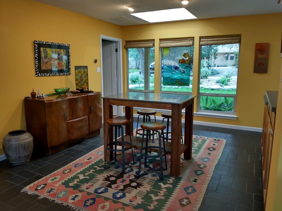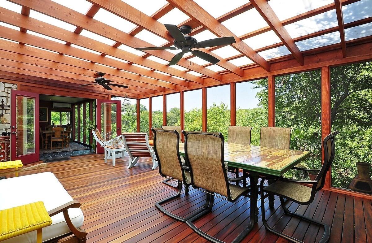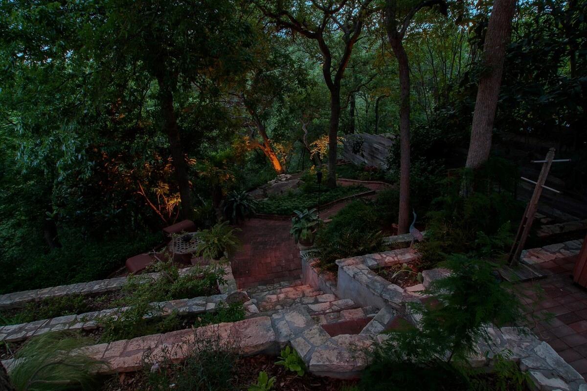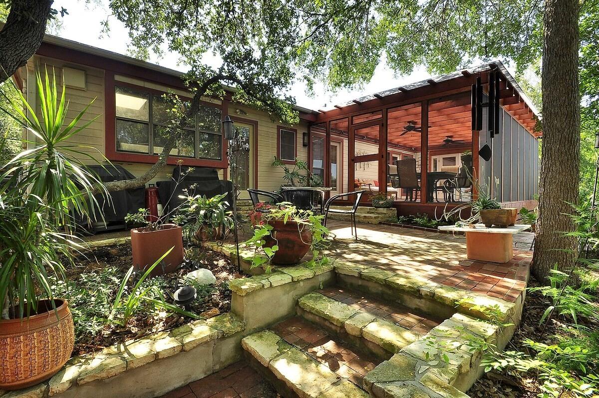 Are you dreaming of a private sanctuary with breathtaking views and the potential to craft your perfect home? Look no further than Hills Haven. This enchanting property is nestled in the heart of Austin, just behind Barton Springs, offering a world of possibilities. Currently, a one-story house awaits your creative touch, inviting you to remodel it into your dream home or embark on the journey of building a custom new construction masterpiece. Hills Haven enjoys a prime location, just a mile away from the entrance to the ACL festival. It's also within easy walking distance of some of Austin's most cherished attractions, including Barton Springs Pool, Zilker Park (home to the Austin City Limits Music Festival and the Trail of Lights), the Long Performing Arts and Palmer Event Centers, Lady Bird Lake's hike-and-bike trail, Restaurant Row, and the trendy South Lamar shopping district. But what truly sets Hills Haven apart is the seamless blend of Austin's bustling offerings and the serene privacy it provides. You'll be able to savor the best of both worlds, thanks to easy access to all that Austin has to offer, coupled with the peaceful seclusion of this unique property. Step outside onto the wide deck, where you can enjoy the stunning natural surroundings and soak up the sunshine. The lush terraced yard feels like your own private park, with Barton Creek meandering nearby, creating a picturesque garden paradise. Inside, the contemporary design welcomes abundant natural light through numerous skylights and expansive windows, making the home feel bright and inviting. Hills Haven is the perfect setting for hosting gatherings and entertaining guests, ensuring that every moment spent here is truly memorable.