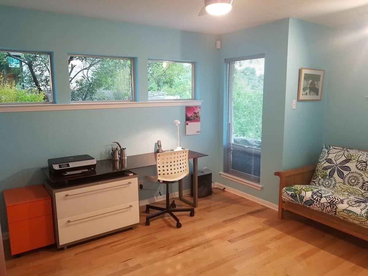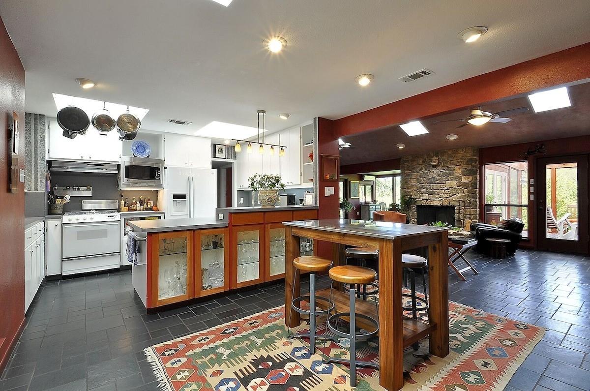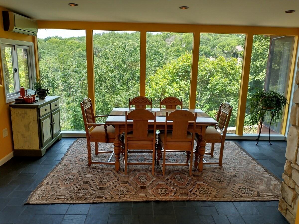 Are you dreaming of a private sanctuary with breathtaking views and the potential to craft your perfect home? Look no further than Hills Haven. This enchanting property is nestled in the heart of Austin, just behind Barton Springs, offering a world of possibilities. Currently, a one-story house awaits your creative touch, inviting you to remodel it into your dream home or embark on the journey of building a custom new construction masterpiece. Hills Haven enjoys a prime location, just a mile away from the entrance to the ACL festival. It's also within easy walking distance of some of Austin's most cherished attractions, including Barton Springs Pool, Zilker Park (home to the Austin City Limits Music Festival and the Trail of Lights), the Long Performing Arts and Palmer Event Centers, Lady Bird Lake's hike-and-bike trail, Restaurant Row, and the trendy South Lamar shopping district. But what truly sets Hills Haven apart is the seamless blend of Austin's bustling offerings and the serene privacy it provides. You'll be able to savor the best of both worlds, thanks to easy access to all that Austin has to offer, coupled with the peaceful seclusion of this unique property. Step outside onto the wide deck, where you can enjoy the stunning natural surroundings and soak up the sunshine. The lush terraced yard feels like your own private park, with Barton Creek meandering nearby, creating a picturesque garden paradise. Inside, the contemporary design welcomes abundant natural light through numerous skylights and expansive windows, making the home feel bright and inviting. Hills Haven is the perfect setting for hosting gatherings and entertaining guests, ensuring that every moment spent here is truly memorable.