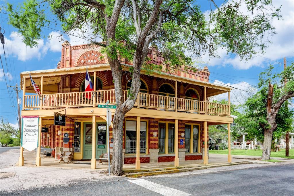 Exclusive opportunity to purchase the Grand Fayette Hotel overlooking the charming historic square of Fayetteville. The iconic building, built in 1900, became a boutique hotel in 2003 and was updated in 2017 to have 10 beautifully decorated ensuite rooms, 8 rooms upstairs and 2 at garden level. All furnishings and hotel linens are included (some exclusions apply.) On a corner 9027 sf lot, an enclosed patio garden joins the main hotel (7407 sf) with the garden cottage(816 sf). The Grand Fayette has a popular Wine Bar Restaurant run by Chefs George and Kathy Valtasaros bringing in patrons from Houston, Austin and surrounding areas. The large dining area is also the perfect venue for weddings, rehearsal dinners, birthday and anniversary parties and many other events. Enter through antique double doors to the comfortable lobby with guest lounge area and 2 half baths. A small, enclosed area off of the lobby is currently being used for a high-end retail store. The Wine Bar Restaurant is directly off the lobby and opens to the large dining area. Upstairs in the hotel are 8 well-appointed guest rooms with private baths depicting the charm and grace of Fayetteville and the countryside. Upstairs has a guest lounge area and coffee bar with a screen door leading out to the front balcony. The garden cottage has 2 first floor private suites. A backstairs balcony, garden and patio with fountain provides multiple outdoor spaces for guests. Centrally located 85 miles from Houston, 80 miles from Austin and 14 miles from Round Top. Fayetteville is active with restaurants, shops, art galleries, art/music festivals and is building a multi-purpose performance center a block away, drawing more and more people to this delightful town.