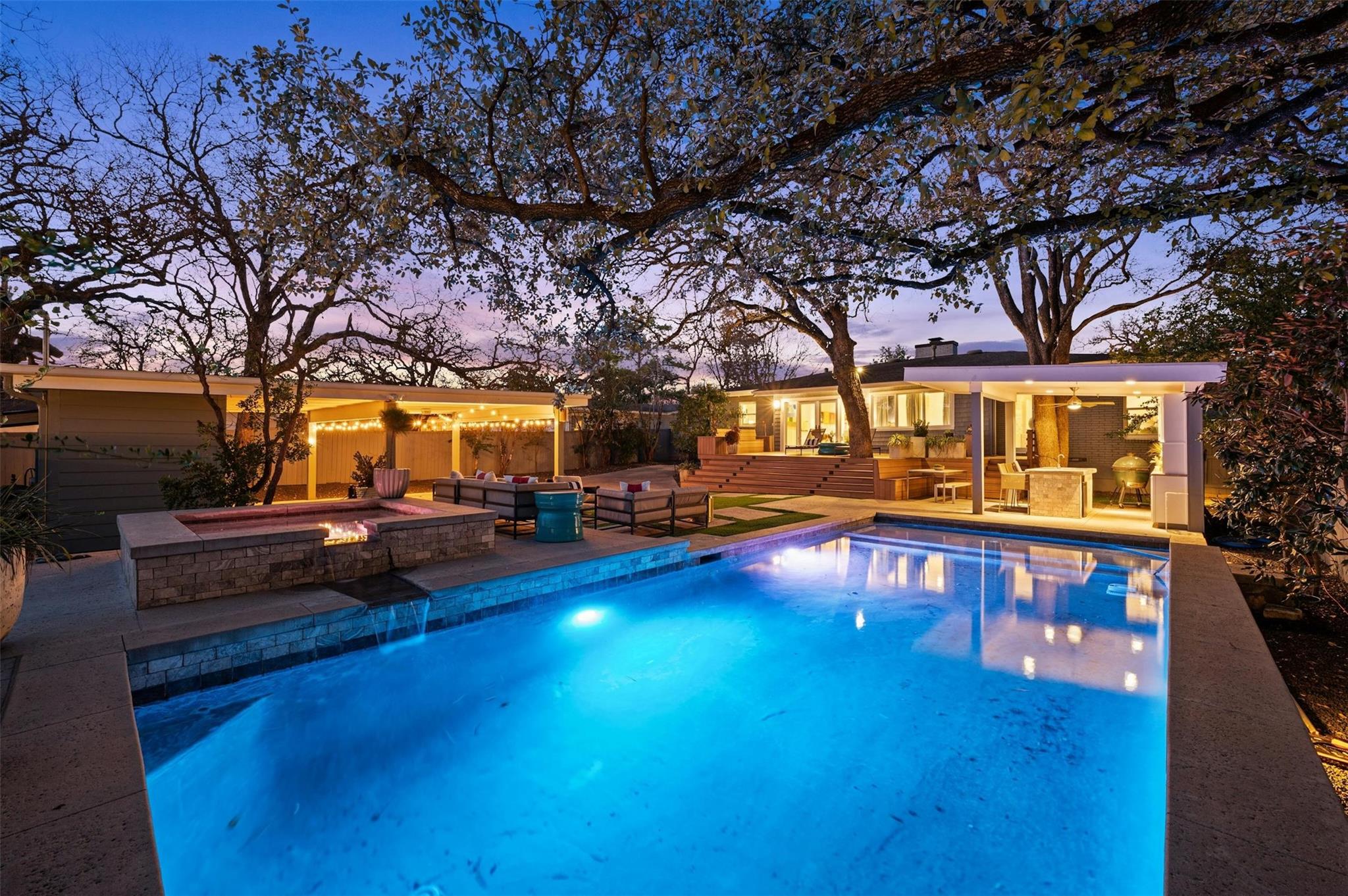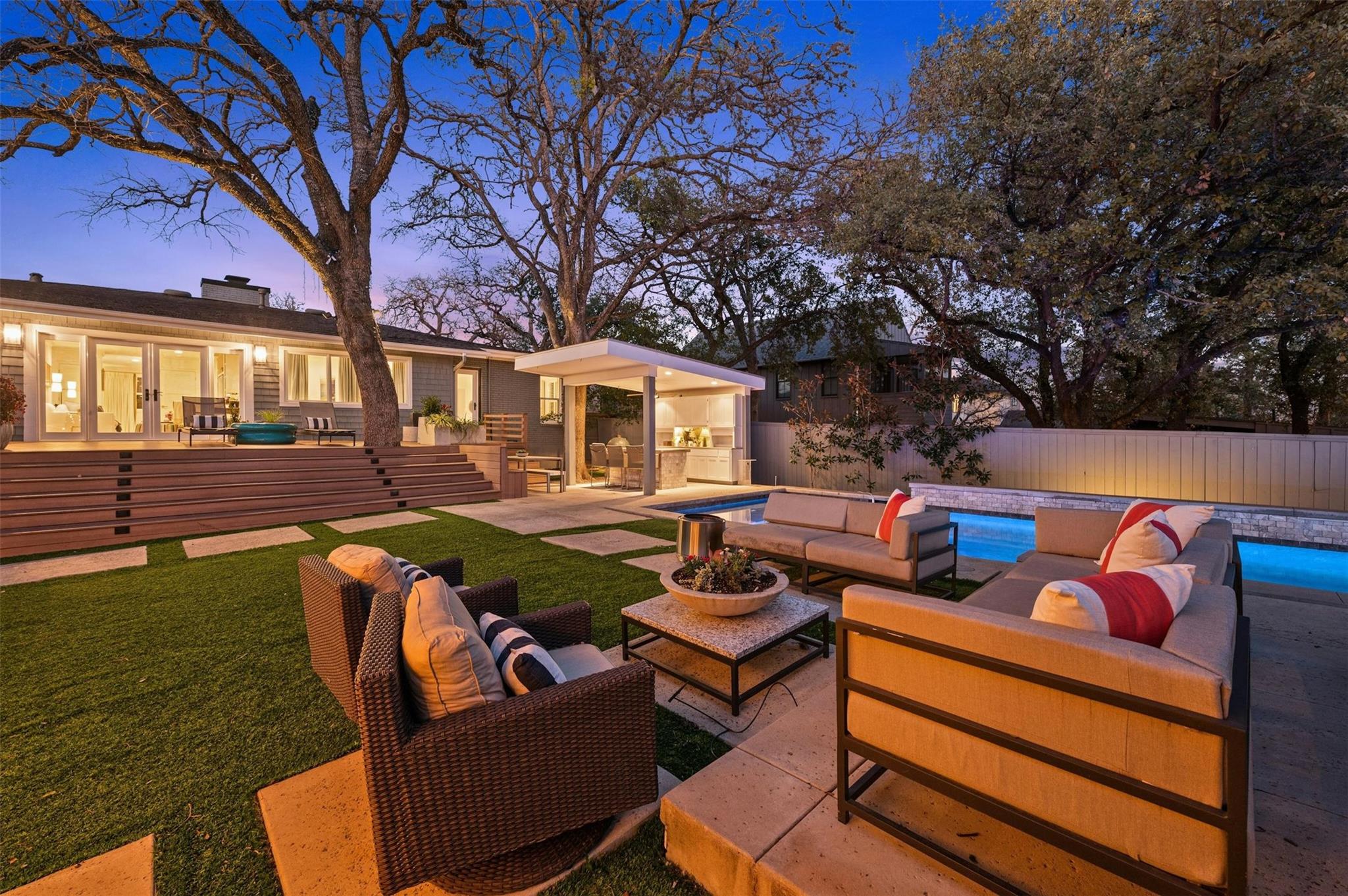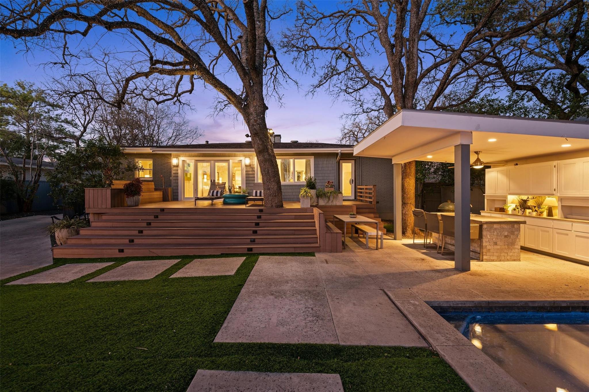 An exceptional blend of 1950s charm with modern updates in the heart of Tarrytown. The resort-like backyard has everything you need for summertime in Austin. Saltwater pool, hot tub, outdoor kitchen, TV, putting green, and low maintenance tuft. The interior showcases an old-world warmth layered with all the modern amenities you would come to expect. Not your big white box with no soul, this house oozes with character and history. Hardwood floors, fireplace, custom closets, built-in shelves, updated kitchen and bathrooms that feature Carrara marble, quartz, soapstone, and custom lighting throughout. The convenient location is just five minutes to downtown and within walking distance of Casis Elementary and the Casis Shopping Center.