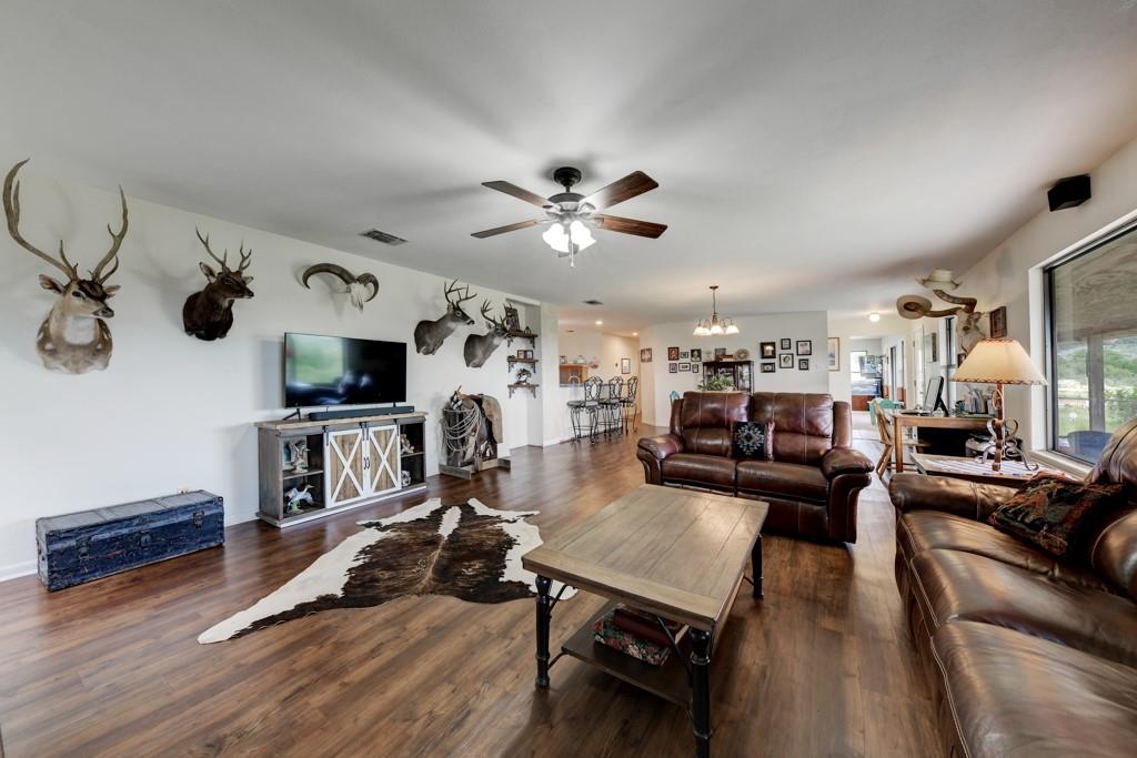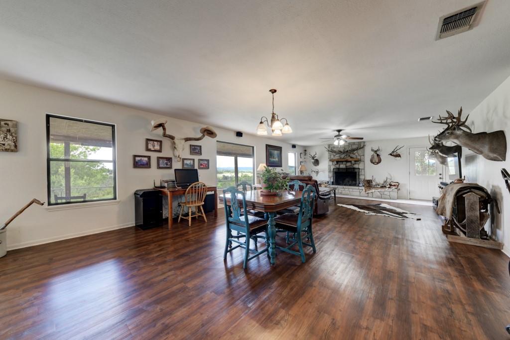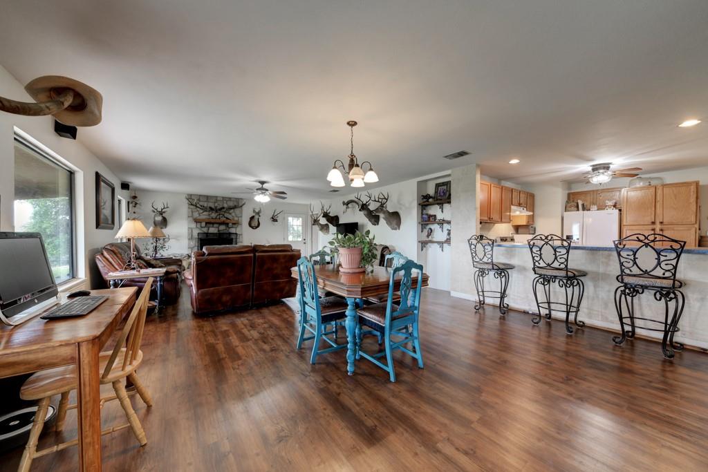 Experience the enchantment of nature's splendor at this expansive 85 acre fenced farm and ranch property. Tucked away amidst breathtaking natural landscapes, this serene haven offers a tranquil escape from the fast-paced urban lifestyle. With abundant land to spare, you have the perfect canvas to build your dream home, establish a personal sanctuary, or engage in an array of outdoor activities such as hiking, horseback riding, and hunting. Surrounded by pristine beauty and teeming wildlife, this retreat emanates a profound sense of peace that is truly unparalleled. Amongst this stunning property, you will find a charming 3 bedroom, 2 bathroom home that exudes character and beauty. The open-concept floor plan seamlessly connects the living room, dining area, and kitchen, creating a perfect space for entertaining guests or spending quality time with your loved ones. The abundance of natural light flowing through the large windows creates a warm and inviting atmosphere throughout. The kitchen features a breakfast bar and lots of countertop space. The home boasts a spacious primary suite, offering a tranquil retreat at the end of a long day. The primary bathroom is a spa-like oasis, complete with a luxurious walk-in shower and separate soaking tub. Additional bedrooms are generously sized and are equipped with ceiling fans. As an added bonus, the property is also complete with a meat processing house equipped with a walk-in cooler, cutting tables, fridge, and deep freezer. The possibilities are endless! Don't let this extraordinary opportunity slip through your fingers.