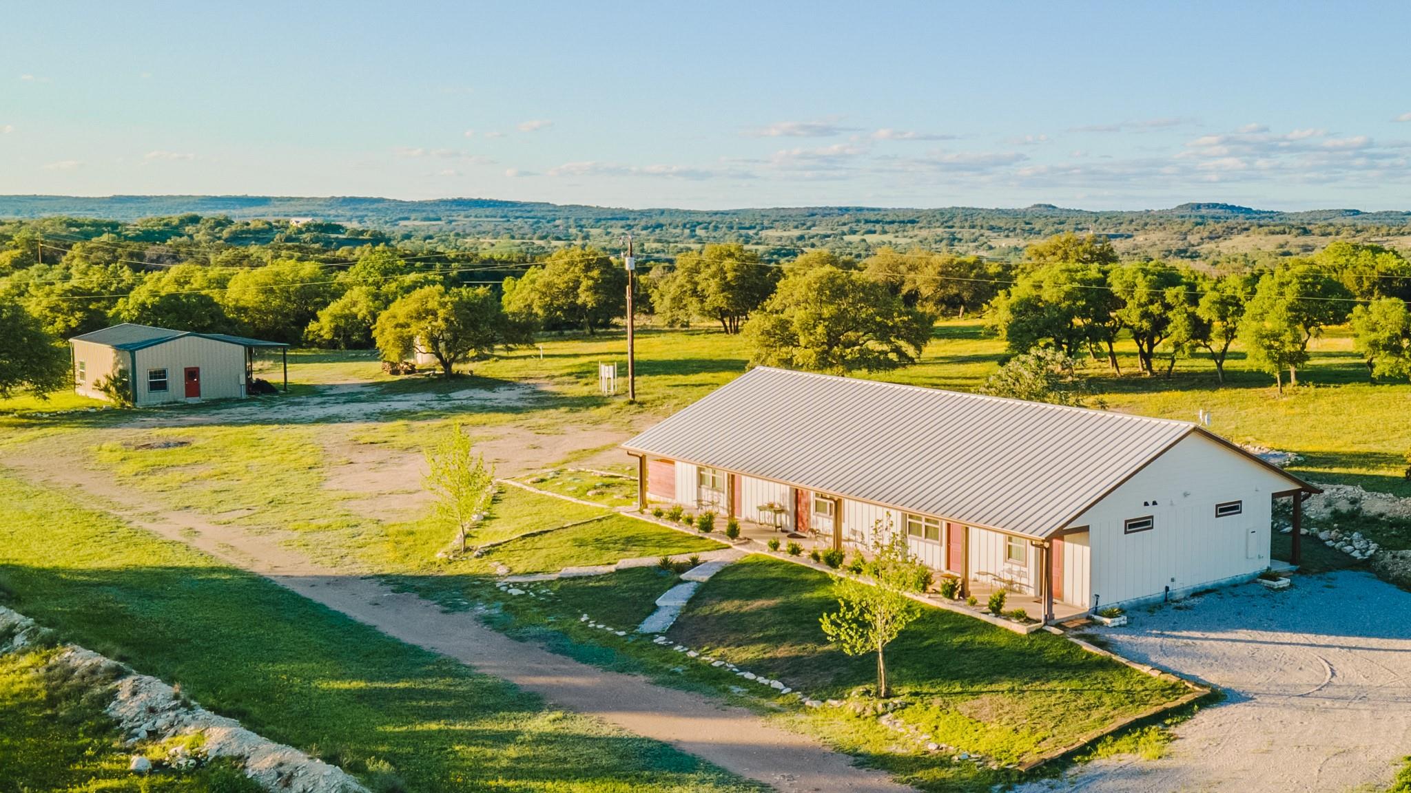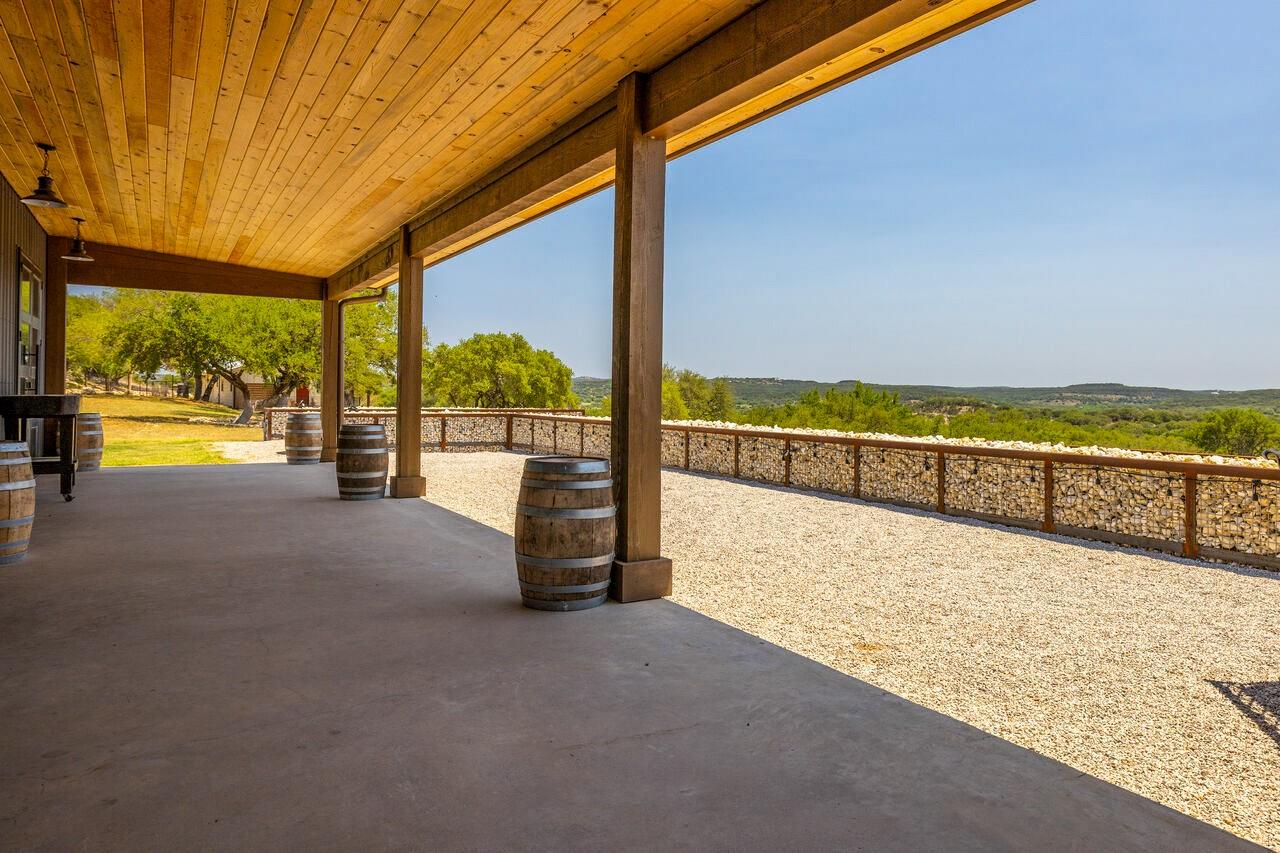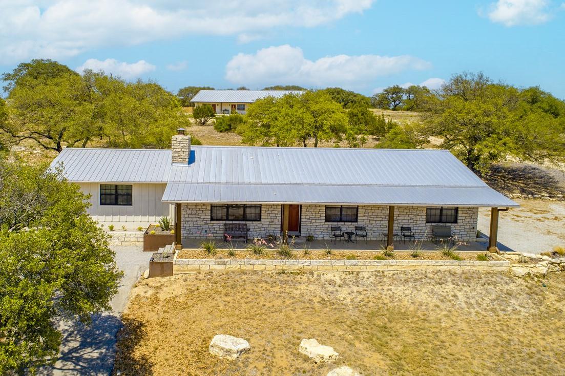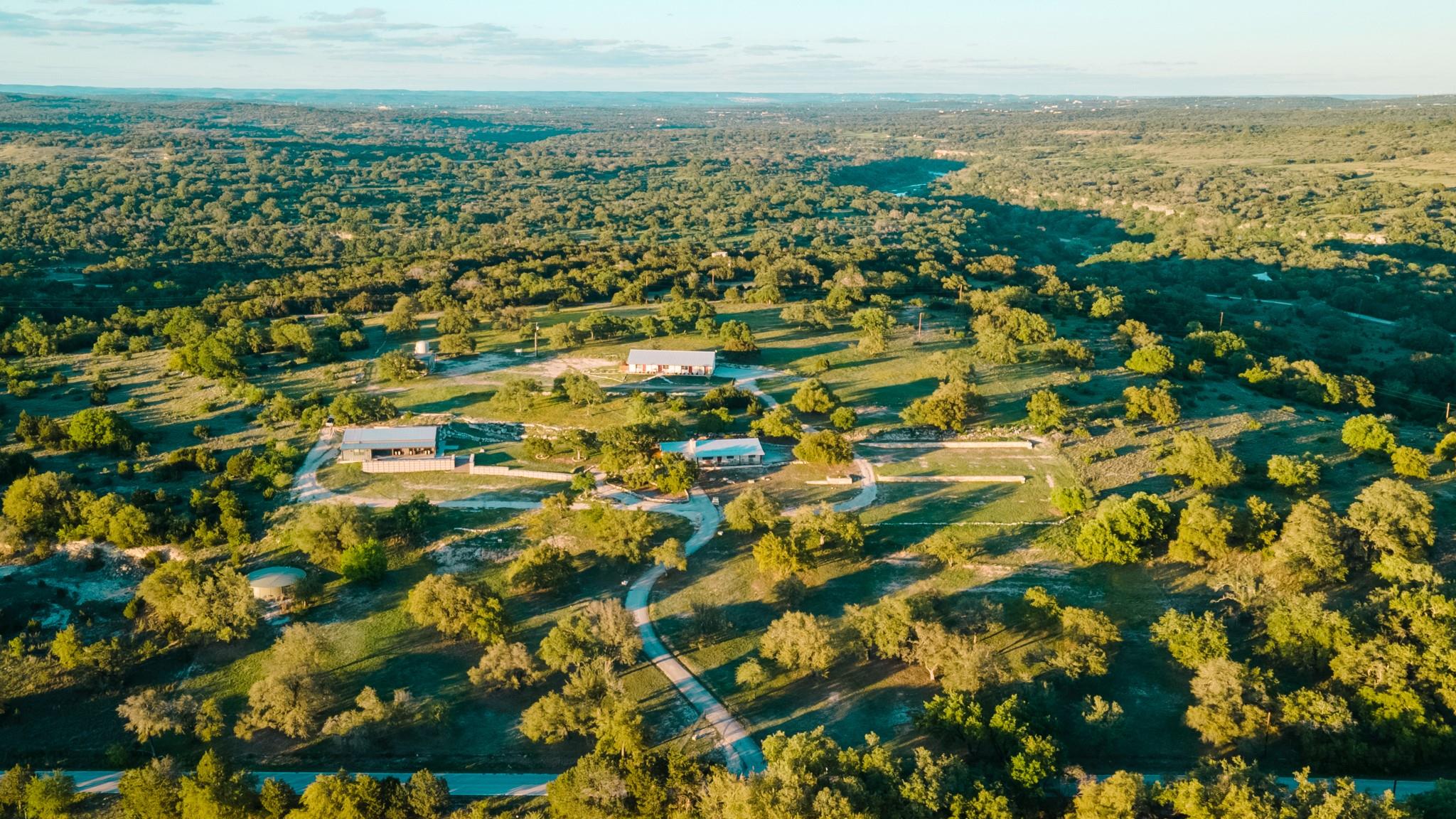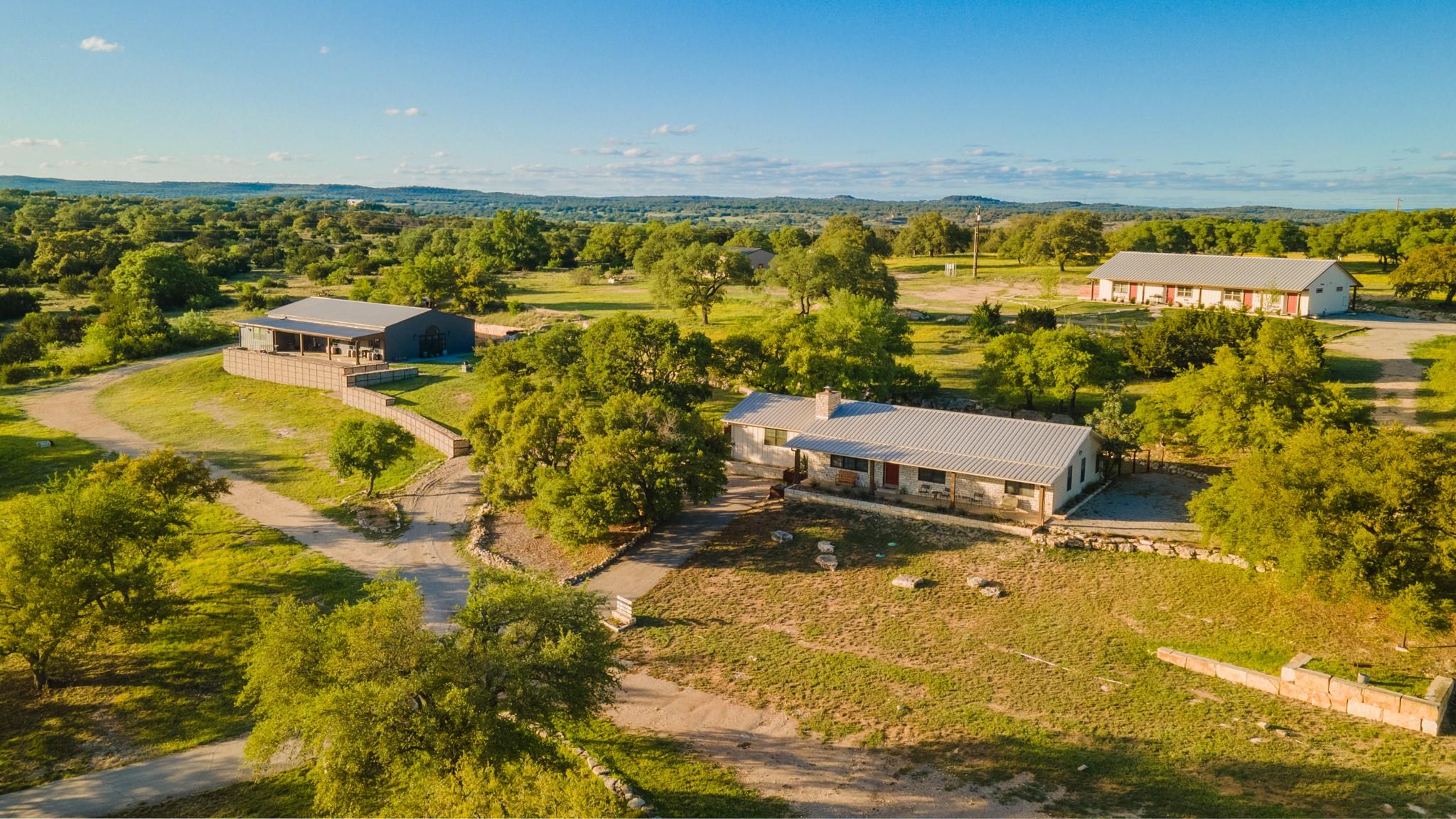 Welcome to your Hill Country oasis, a stunning 14+/- acre private property nestled atop a sprawling hilltop in the heart of the Hill Country Wine region. The Ranch House is a remodeled 2,000 sqft home, with 4 bedrooms and 3 full baths. With an expansive front porch and private side and back patios, it provides the perfect setting for peaceful moments or lively gatherings. Inside, discover modern amenities such as a kitchen breakfast bar, all-new stainless steel appliances, and a wood-burning stone fireplace in the spacious living room. For larger groups, The Lodge offers a newly constructed 2,500 sqft home. Featuring 6 large bedrooms and 4 bathrooms, this residence is designed to provide individual privacy within a communal atmosphere. Enjoy the open kitchen/dining/living room area, complete with new stainless steel appliances. Expansive front and back porches offer direct access from each bedroom, while a Fire Suppression system ensures safety and peace of mind. Entertain in style at the Amenity Barn, a versatile space perfect for both indoor and outdoor gatherings. With 3,000 sqft of fully heated and air-conditioned interior space, this amenity barn features custom iron double French Doors that frame the stunning views. Elegant chandeliers, windmill ceiling fans, gabin walls, and polished stained concrete floors create an atmosphere of rustic charm. The amenity barn features a large space for gatherings, two flex rooms, a kitchen with a commercial ice maker, and a laundry room. Two full baths with walk-in showers add convenience, while the expansive covered front porch provides a breathtaking backdrop for sunset gatherings and social events. The property is equipped with a 63,000-gallon Rainwater Collection Tank, ensuring ample water for all buildings, alongside 3 Septic Systems and a large storage barn for added convenience and future growth potential. Hamilton Ridge offers a truly exceptional Hill Country experience perfect for a family compound or retreat!