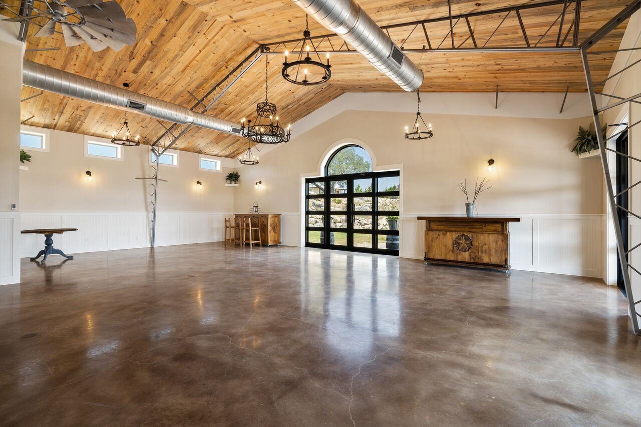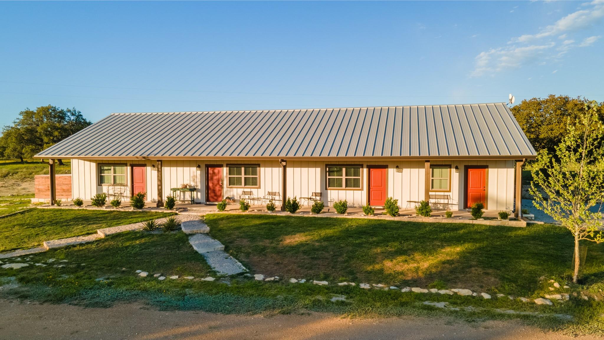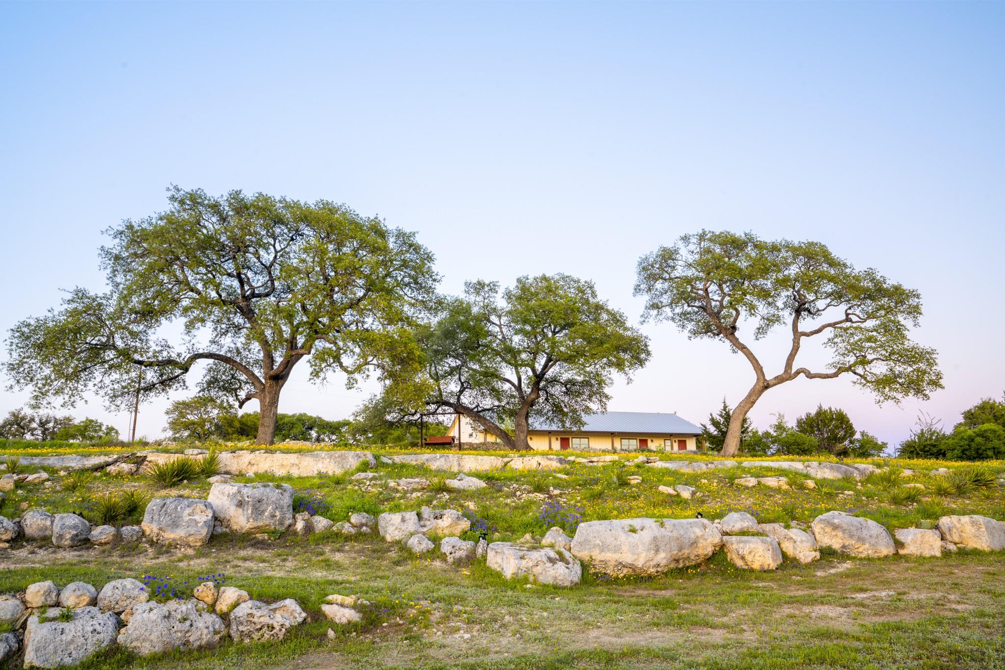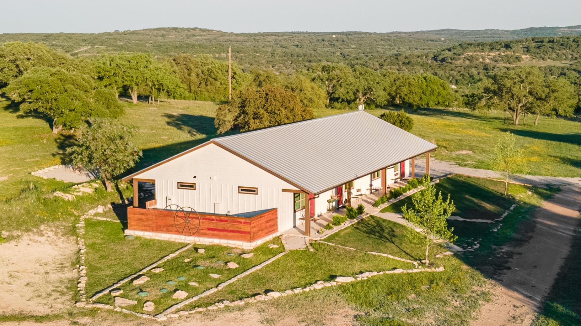Welcome to your Hill Country oasis, a stunning 14+/- acre private property nestled atop a sprawling hilltop in the heart of the Hill Country Wine region. The Ranch House is a remodeled 2,000 sqft home, with 4 bedrooms and 3 full baths. With an expansive front porch and private side and back patios, it provides the perfect setting for peaceful moments or lively gatherings. Inside, discover modern amenities such as a kitchen breakfast bar, all-new stainless steel appliances, and a wood-burning stone fireplace in the spacious living room. For larger groups, The Lodge offers a newly constructed 2,500 sqft home. Featuring 6 large bedrooms and 4 bathrooms, this residence is designed to provide individual privacy within a communal atmosphere. Enjoy the open kitchen/dining/living room area, complete with new stainless steel appliances. Expansive front and back porches offer direct access from each bedroom, while a Fire Suppression system ensures safety and peace of mind. Entertain in style at the Amenity Barn, a versatile space perfect for both indoor and outdoor gatherings. With 3,000 sqft of fully heated and air-conditioned interior space, this amenity barn features custom iron double French Doors that frame the stunning views. Elegant chandeliers, windmill ceiling fans, gabin walls, and polished stained concrete floors create an atmosphere of rustic charm. The amenity barn features a large space for gatherings, two flex rooms, a kitchen with a commercial ice maker, and a laundry room. Two full baths with walk-in showers add convenience, while the expansive covered front porch provides a breathtaking backdrop for sunset gatherings and social events. The property is equipped with a 63,000-gallon Rainwater Collection Tank, ensuring ample water for all buildings, alongside 3 Septic Systems and a large storage barn for added convenience and future growth potential. Hamilton Ridge offers a truly exceptional Hill Country experience perfect for a family compound or retreat!