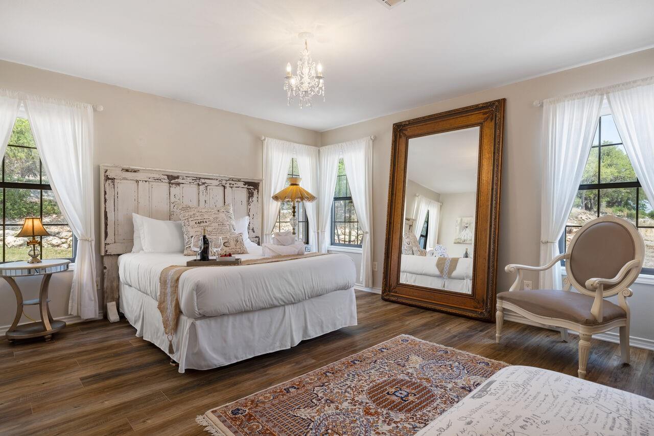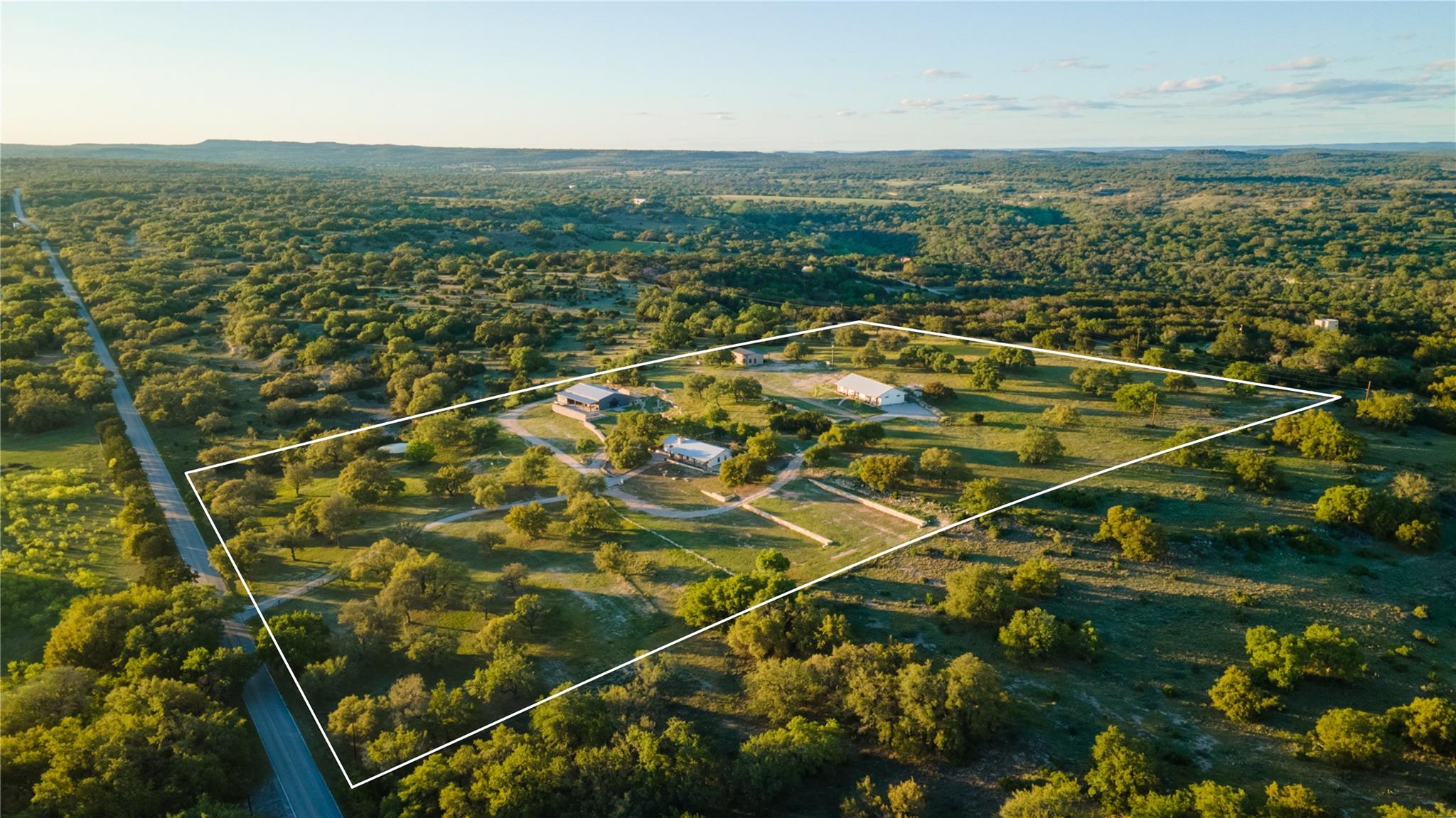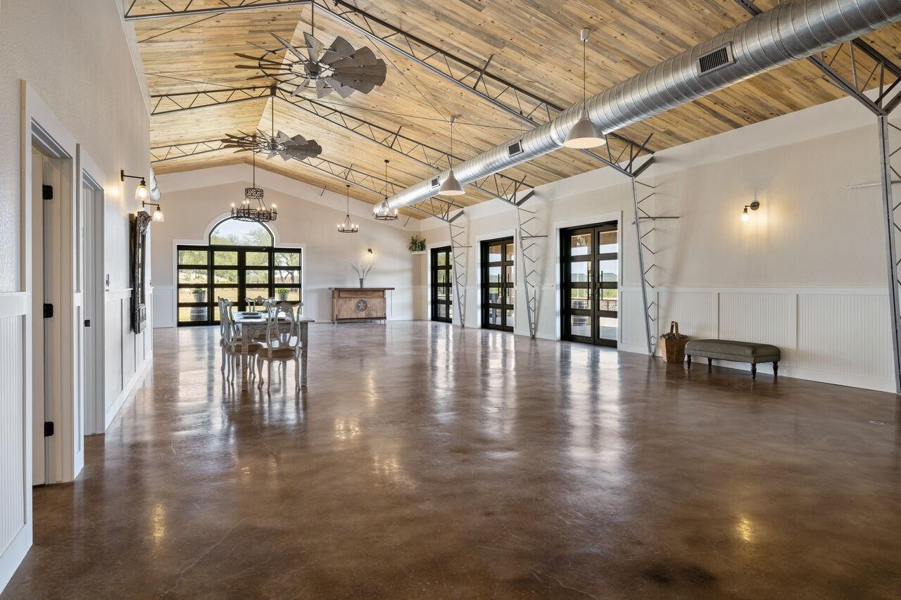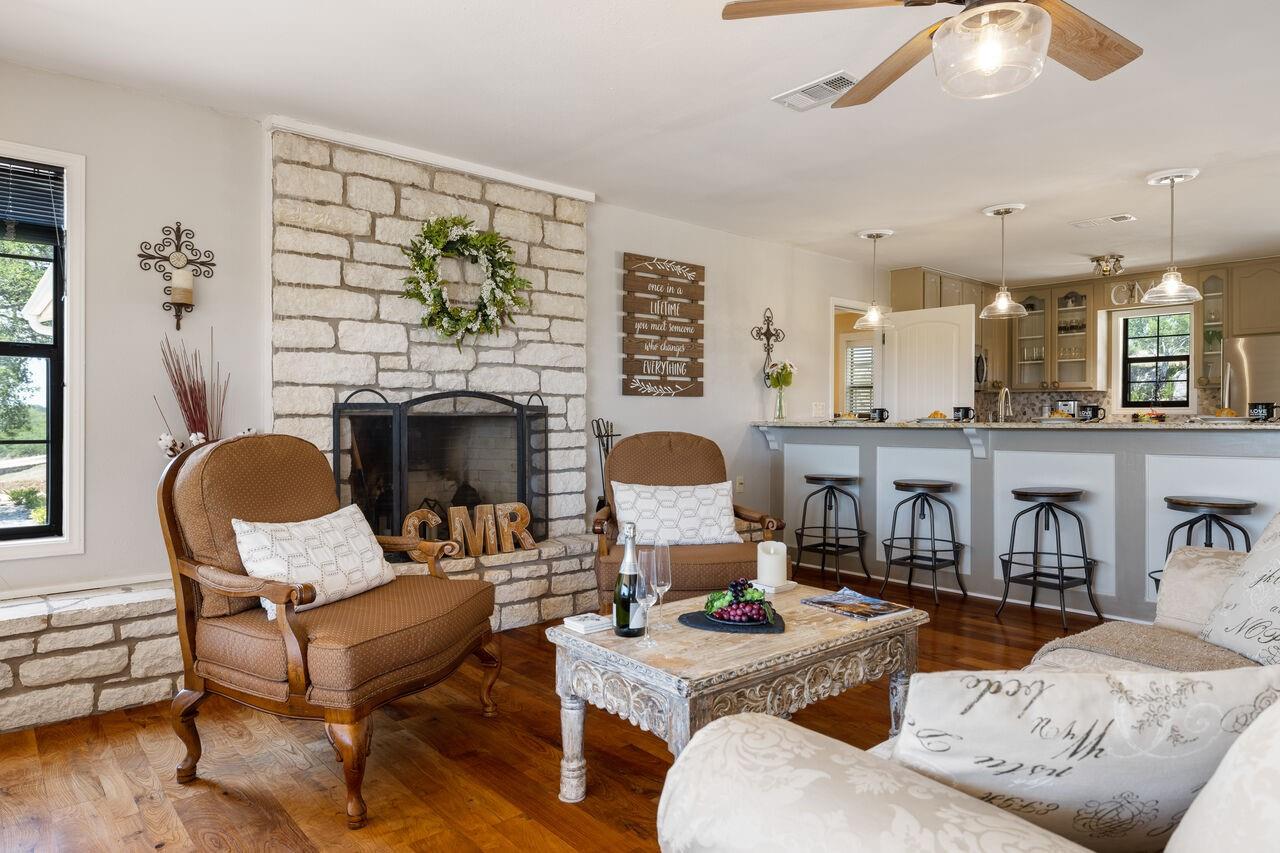 Welcome to your Hill Country oasis, a stunning 14+/- acre private property nestled atop a sprawling hilltop in the heart of the Hill Country Wine region. The Ranch House is a remodeled 2,000 sqft home, with 4 bedrooms and 3 full baths. With an expansive front porch and private side and back patios, it provides the perfect setting for peaceful moments or lively gatherings. Inside, discover modern amenities such as a kitchen breakfast bar, all-new stainless steel appliances, and a wood-burning stone fireplace in the spacious living room. For larger groups, The Lodge offers a newly constructed 2,500 sqft home. Featuring 6 large bedrooms and 4 bathrooms, this residence is designed to provide individual privacy within a communal atmosphere. Enjoy the open kitchen/dining/living room area, complete with new stainless steel appliances. Expansive front and back porches offer direct access from each bedroom, while a Fire Suppression system ensures safety and peace of mind. Entertain in style at the Amenity Barn, a versatile space perfect for both indoor and outdoor gatherings. With 3,000 sqft of fully heated and air-conditioned interior space, this amenity barn features custom iron double French Doors that frame the stunning views. Elegant chandeliers, windmill ceiling fans, gabin walls, and polished stained concrete floors create an atmosphere of rustic charm. The amenity barn features a large space for gatherings, two flex rooms, a kitchen with a commercial ice maker, and a laundry room. Two full baths with walk-in showers add convenience, while the expansive covered front porch provides a breathtaking backdrop for sunset gatherings and social events. The property is equipped with a 63,000-gallon Rainwater Collection Tank, ensuring ample water for all buildings, alongside 3 Septic Systems and a large storage barn for added convenience and future growth potential. Hamilton Ridge offers a truly exceptional Hill Country experience perfect for a family compound or retreat!