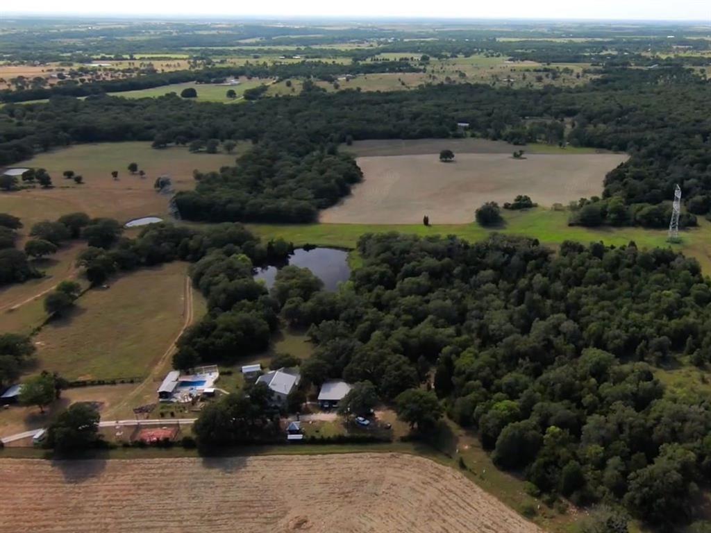 71.54 ACRES. Four separate fenced areas. 40 acres are currently in hay production. The land is a perfect mixture of outstanding hay pastures and beautiful woods and trees with trails throughout. An approx. 2-acre pond and 2 smaller ones are perfect for recreation and wildlife. There is an outdoor kitchen and a large workshop with 4 bay parking attached. In addition, there is a chicken house, large metal framed hay barn with the beginnings of an apartment upstairs. A small building sits on the edge of the approx. 2-acre lake, for perfect campouts. The home runs on solar and 2 Tesla Panels are included ($50K value). Outside is a gorgeous greenhouse, an inground pool with cabana and a Eloo (toilet). The custom designed outdoor pizza oven is ideal for parties around the pool! A fenced sport court is perfect for your active guests! Wonderfully eclectic steel frame home with more than ample insulation boasts soaring ceilings and natural wood trim. The kitchen has lots of counter and cabinet space large island and small breakfast area. Refrigerator and freezer are included which make entertaining at home a breeze! 2 offices or studios are very versatile in their uses. Downstairs are 3 bedrooms and 2 full baths. One of the bedrooms could certainly be a primary bedroom. Upstairs is another large primary bedroom and bath with 2 huge closets! This property is 43 minutes from the Tesla Giga Factory, 27 minutes to the Samsung Factor in Taylor TX, 37 minutes to the Austin International Airport, approx. 2 hours to Houston TX, approx. 38 minutes to Austin TX and 10 minutes to Elgin, TX. Seller is motivated and willing to negotiate. Owner may be willing to divide property into approx. 25 acres with the house, leaving approx. 46.54 acres of raw land. Ask agent about pricing on this division. See Property website here https://vimeo.com/712934988