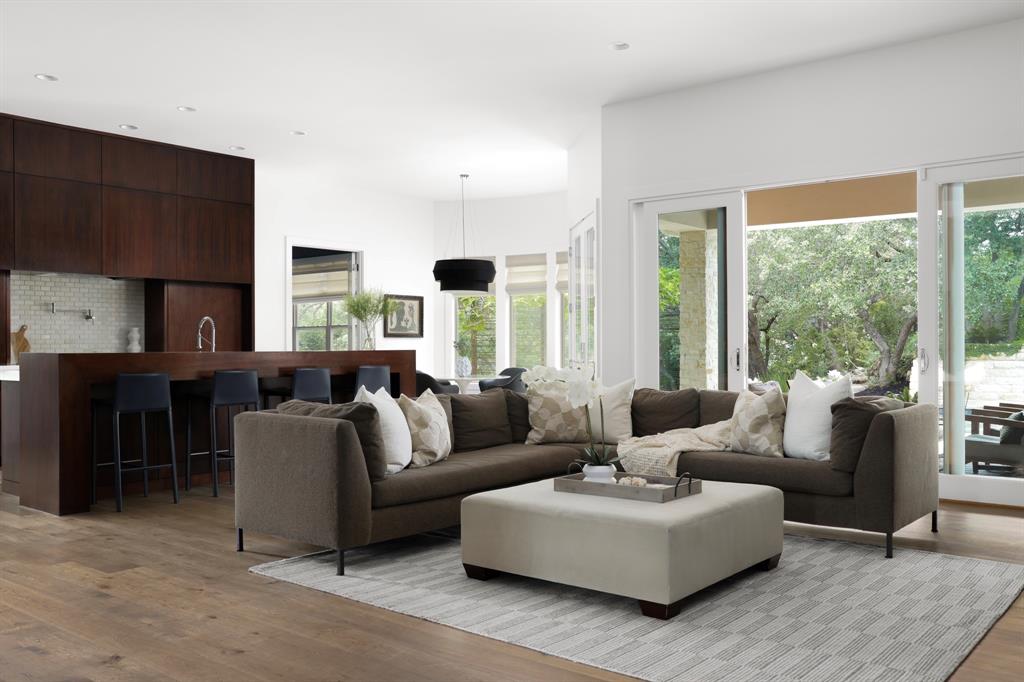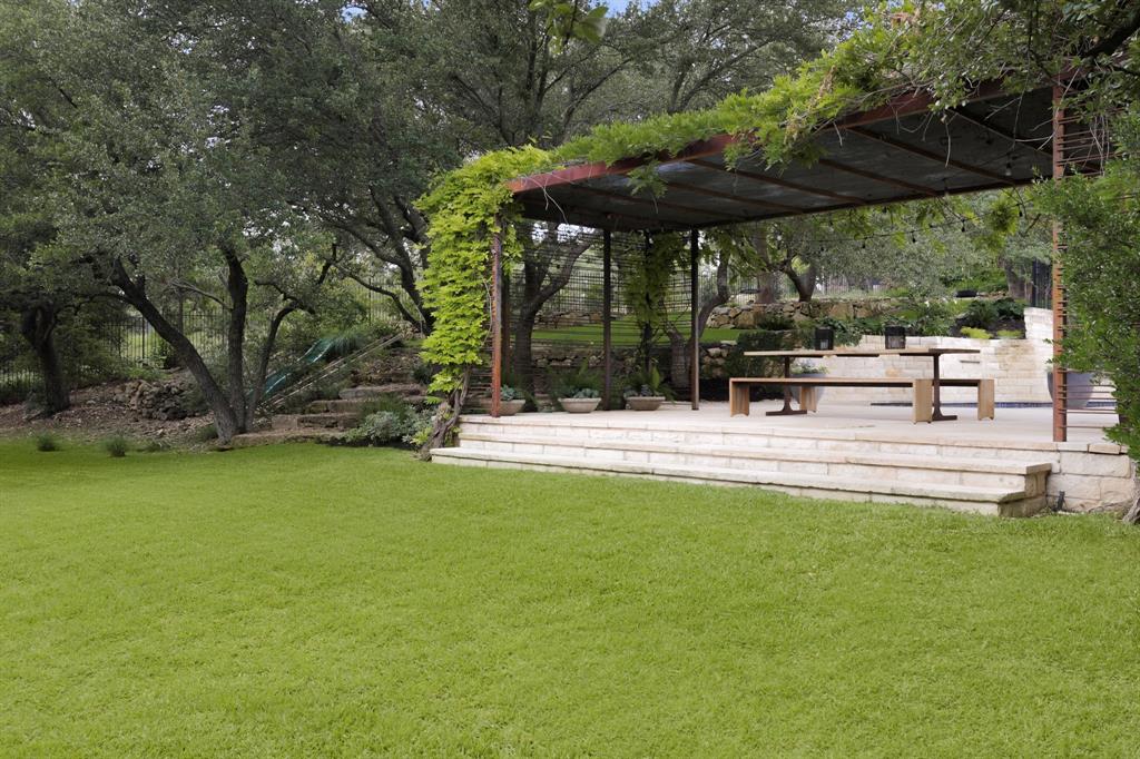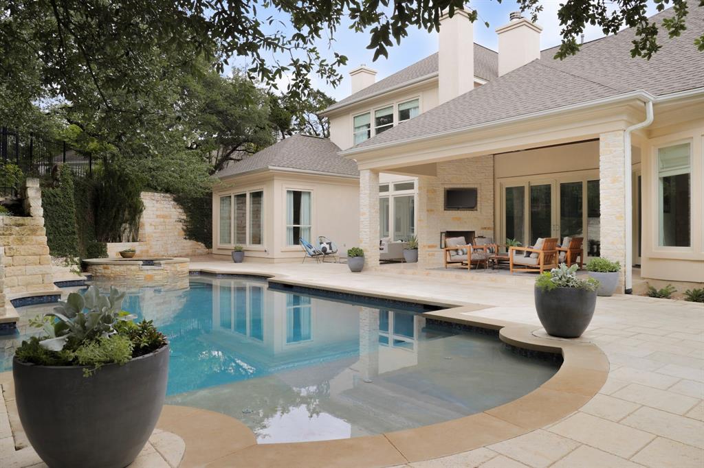 This beautifully updated home exudes grace & refinement with 5-bedrooms, 5.5 bathrooms & offering an unparalleled blend of sophistication, comfort, and picturesque surroundings. Step inside & be captivated by the fabulous, oversized entry opening to the formal living, dining & study, providing versatile spaces for work, relaxing, & entertaining.The kitchen effortlessly opens to the inviting family room, while capturing a view of the sparkling pool & beautiful backyard. High-end appliances & custom cabinetry make the kitchen a focal point of the home while the sleek lines of the custom cabinetry extend into both the formal & informal living areas creating a cohesive flow. Retreat to the main level primary bedroom, a true sanctuary offering a tranquil escape from the demands of the day. This luxurious suite boasts a spa-like bath, while dual closets provide ample storage for even the most extensive wardrobes. Also on the main level is a guest suite that can also serve as a cozy TV room or child’s play area. 3 additional bedrooms, each with en suite bath, are located on the upper level, ensuring privacy & comfort for family members & guests. You will find a work-out room, oversized living space & a second office space or craft room. Step outside to discover your own personal paradise. Relax under the covered patio w/fireplace or dine alfresco under the charming pergola. An expansive pool & spa area invite you to indulge in a refreshing swim or unwind while soaking up the sun. The park-like back yard offers ample space for outdoor activities, grilling & hosting gatherings in a serene setting. The yard is fully fenced, making it ideal for children to play and pets to freely explore. Located on a tranquil cul-de-sac in the esteemed Barton Creek, enjoy access to top-rated schools, world-class golf courses, shopping, & dining. With easy access to major highways, downtown, entertainment, and the airport, this home effortlessly combines convenience and exquisite beauty.