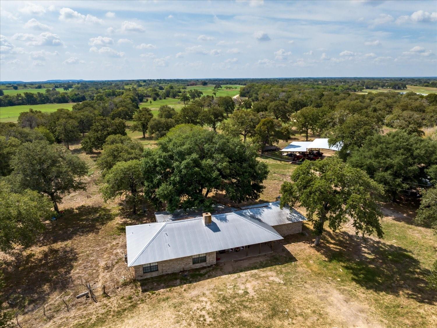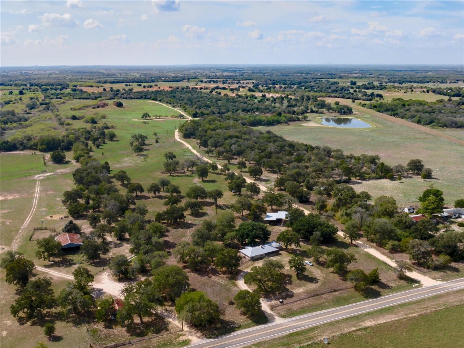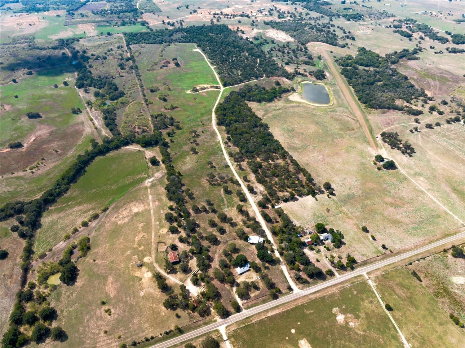 This expansive 145 + acre property just 55 minutes southeast of Austin, TX is one of a kind! Located on a paved county road 19 minutes from the historic Lockhart square with 535+/- ' of road frontage make this property an excellent investment, primary ranch, or recreational oasis. The site built brick home includes 3 bedrooms, 2 bathrooms, and a screened in porch. It's nestled under mature oaks and is serviced by a water well. The fenced back yard has a majestic century oak that provides ample shade. The metal open sided covered workshop/storage area includes a 24x50' concrete slab workshop with an additional 75' of covered space. Extensive improvements include 9 commercial electric meters, (38) 200 AMP breakers, (456) 20 amp breakers, as well as (256) 20 amps, 204 (30 amps) and (30) 50 amp RV plug ins. These are all housed on 38 individual panel boards. This infrastructure makes it turn key for an RV park, festivals, camping, glamping, and a variety of commercial opportunities. A well maintained gravel road takes you easily through the property and meanders through various camp groups and densely tree'd areas throughout the front half of the property. Cleared pastures with sandy loam offers excellent grazing and hunting opportunities. Teaming with wildlife--enjoy deer, turkey, hog, and dove hunting with the opportunity to produce income with a hunting lease. Fully fenced, this slice of heaven has the best topography Texas has to offer-- live oaks, post oaks, hackberry, cedar, native grasses amidst gently rolling hills, and a pond. Enjoy low taxes with the wildlife exemption currently in place. Multiple build sites for one or several homes with stunning views. Peace, quiet, and opportunity are waiting for you in Caldwell County!