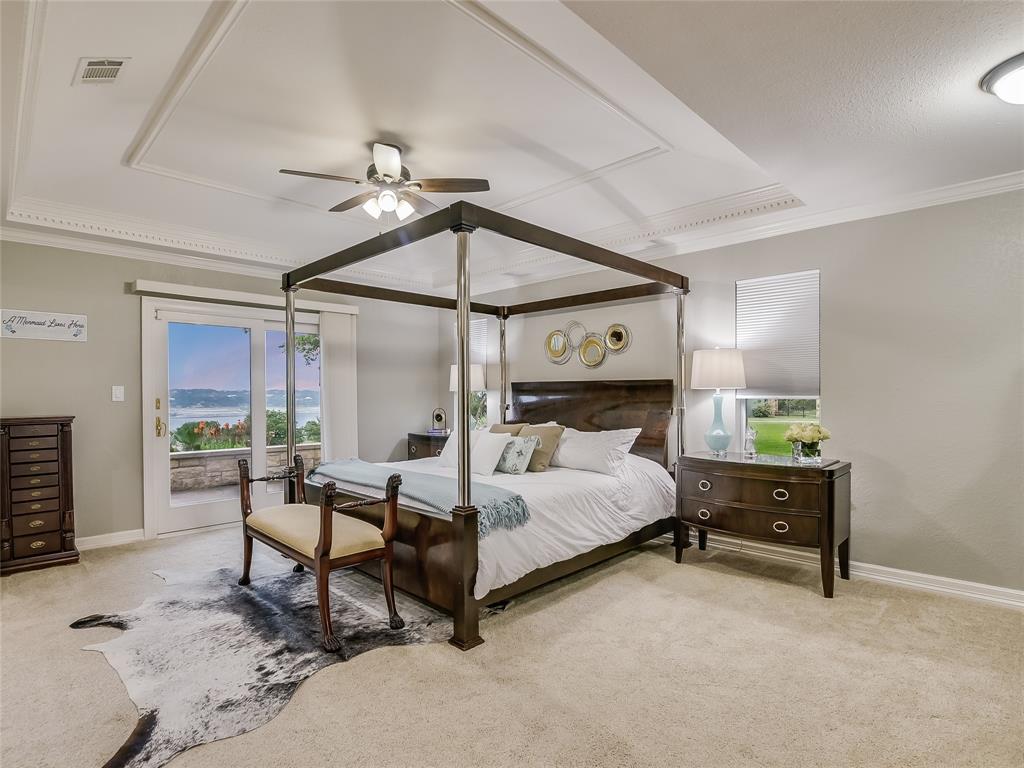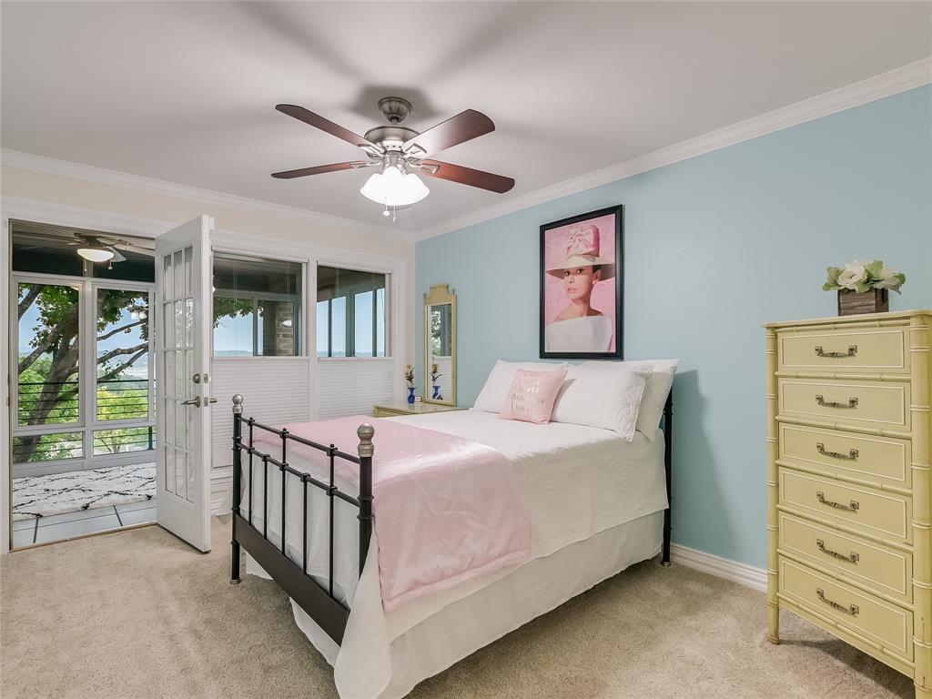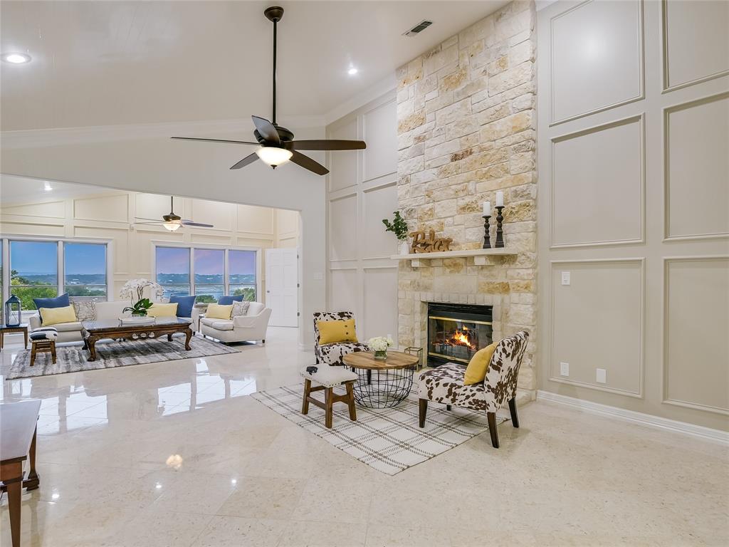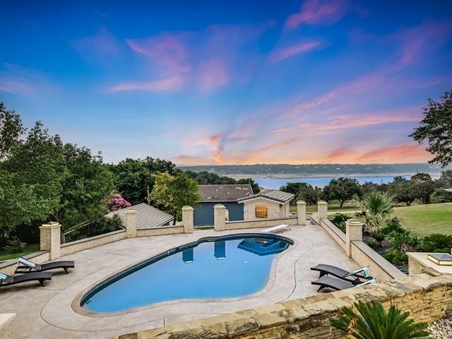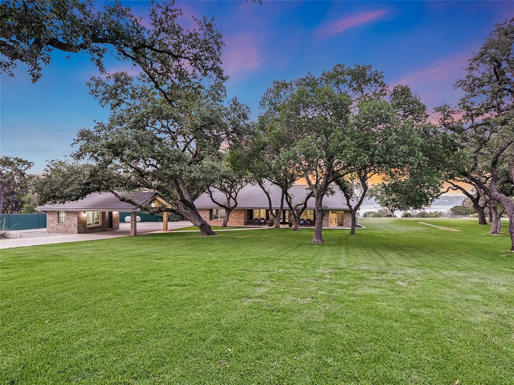 Relax & unwind at the lake! This property has huge oaks and park-like setting overlooking the beautiful resort style pool & lake views. These stunning views greet you the moment you walk in... Spacious updated property with high ceilings and soaring stone fire place and wall of windows across the back of this house. Main House: 2 Living, 2 Din, Primary down, optional gym/game room or could be 2nd suite down, study, wine bar and fridge & 2 bedrooms up, each bedrooms has access to patio and terrace with beautiful inviting views. Guest House: 1 Living, 1 Dining with kitchen bar, 2 Bedroom & 2 Baths, spacious patio for outdoor entertaining. 2 Car Garage with storage plus 2 car covered car port. The pool looks like a resort you will never want to leave.... did I mention the gazebo by the lake. The property has 132 FT of shoreline when lake is at 681 elevation. Boat & Trailer Convey! Short Term Rentals allowed and with property you have plenty of options!!!