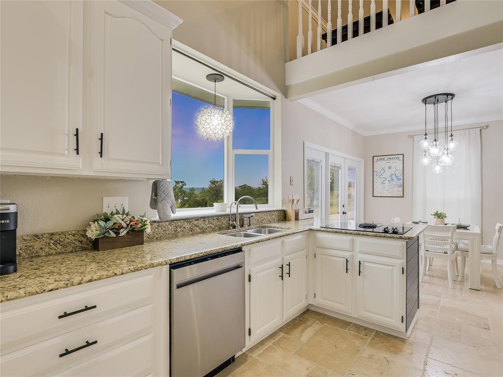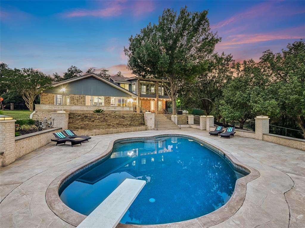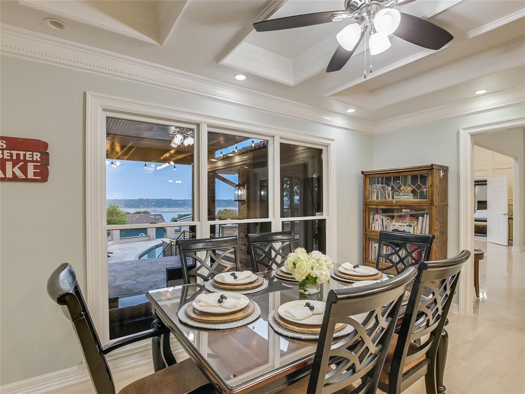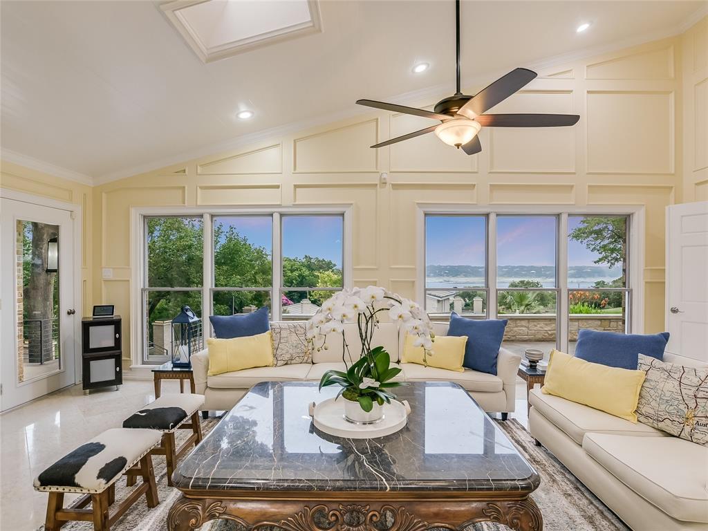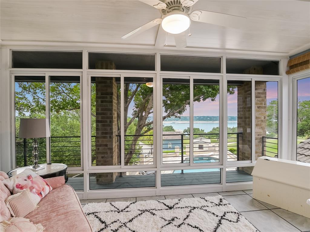 Relax & unwind at the lake! This property has huge oaks and park-like setting overlooking the beautiful resort style pool & lake views. These stunning views greet you the moment you walk in... Spacious updated property with high ceilings and soaring stone fire place and wall of windows across the back of this house. Main House: 2 Living, 2 Din, Primary down, optional gym/game room or could be 2nd suite down, study, wine bar and fridge & 2 bedrooms up, each bedrooms has access to patio and terrace with beautiful inviting views. Guest House: 1 Living, 1 Dining with kitchen bar, 2 Bedroom & 2 Baths, spacious patio for outdoor entertaining. 2 Car Garage with storage plus 2 car covered car port. The pool looks like a resort you will never want to leave.... did I mention the gazebo by the lake. The property has 132 FT of shoreline when lake is at 681 elevation. Boat & Trailer Convey! Short Term Rentals allowed and with property you have plenty of options!!!