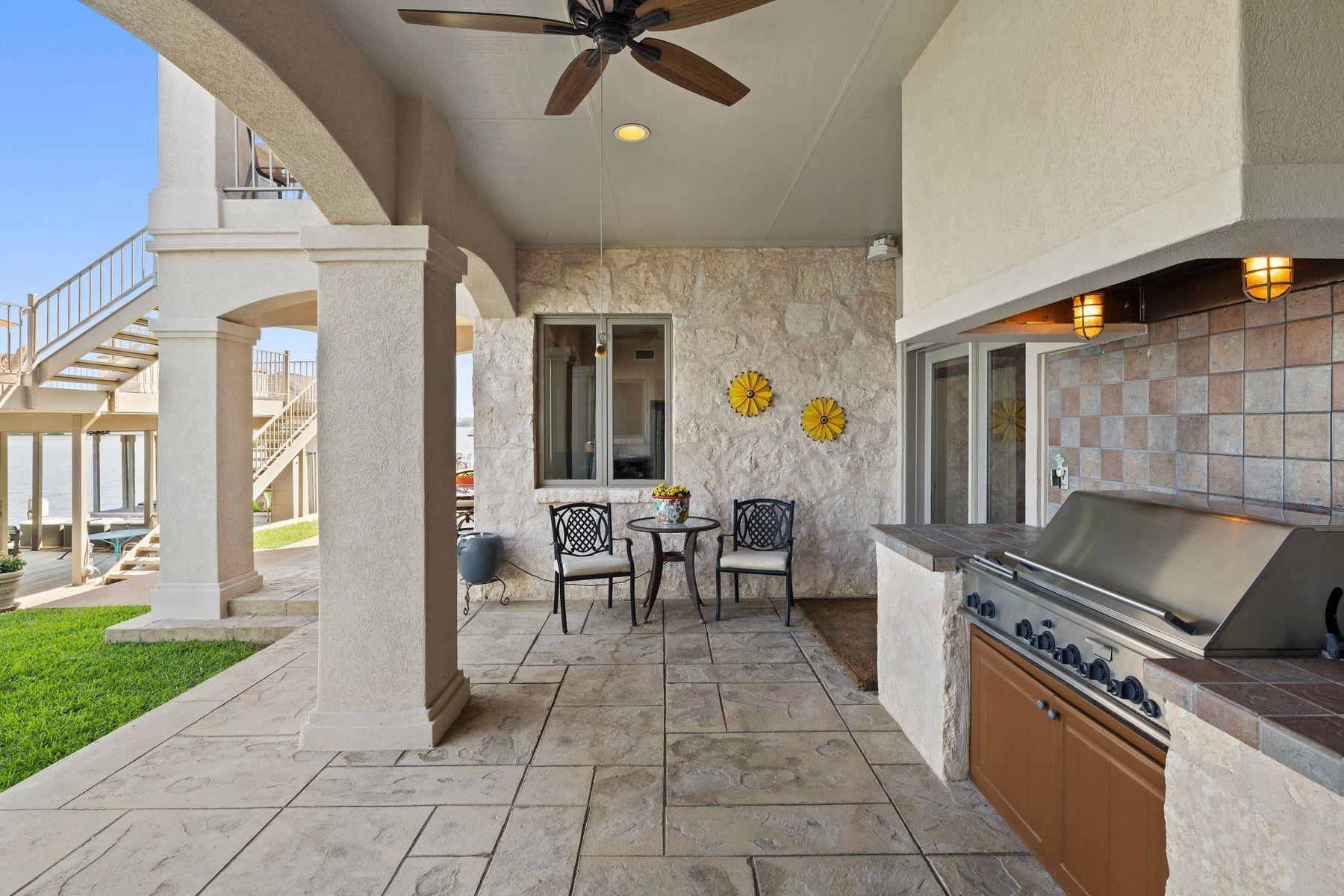 #2 Beaver Island on Lake LBJ is a phenomenal lake house! 100’ of spectacular east facing open waterfront, with every detail thought out to ensure it is the perfect place on the Lake! Stylish and elegantly casual the home was designed for effortless everyday living or the perfect weekend retreat. Featuring 4 bedrooms and 3.5 baths, large open concept living area for great entertaining, gourmet kitchen and large dining room, Master Suite with amazing lake views and a beautiful home office. There is a lot of flexible space to expand the usable living areas in the home. Multiple outdoor entertaining areas include excellent outdoor kitchen with the best Lakeside Margarita Bar you’ve seen! Private upper-level patio with skyway to the huge deck over the boat house. The boat house has 2 full boat slips, one setup for boat and one set up for 2 jet skis then one additional jet ski lift. Perfect for all the lake toys, you’ll be ready to hit the water for wonderful adventures of boating, fishing, sailing, swimming, kayaking, paddle boarding, relaxing or just enjoying life! Beaver Island, a highly sought after location on Lake LBJ, a small Island of 41 homes, creating a warm friendly community jetting out into the blue waters of Lake LBJ, and Lake LBJ is a favorite destination for Texans, with its endless recreational activities and world class amenities just around the corner. Located just 45 minutes Northwest of Austin and 90 minutes North of San Antonio in the Highland Lakes region of the Texas Hill Country.