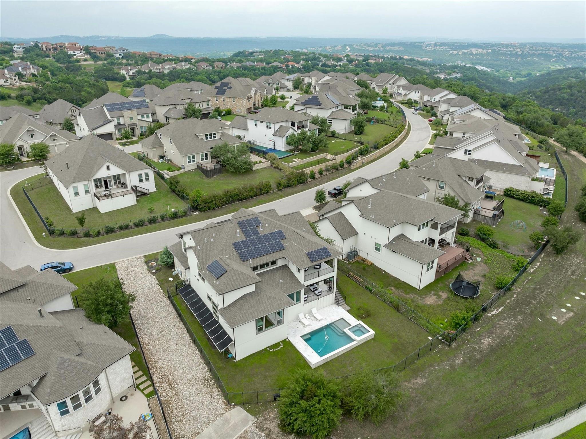 Luxury living in highly coveted Lakes Edge. Lovely 5 bedroom, modern home with pool/spa in Eanes School District. Breathtaking panoramic Hill Country views too! Many extras include whole house Solaris air purification, reverse osmosis system, Solar power, designer lighting, wood floors, upgraded cabinetry, built-in outdoor kitchen, automatic patio enclosure screens and so much more! Minutes to shops and restaurants. Within 30 minutes of downtown Austin.