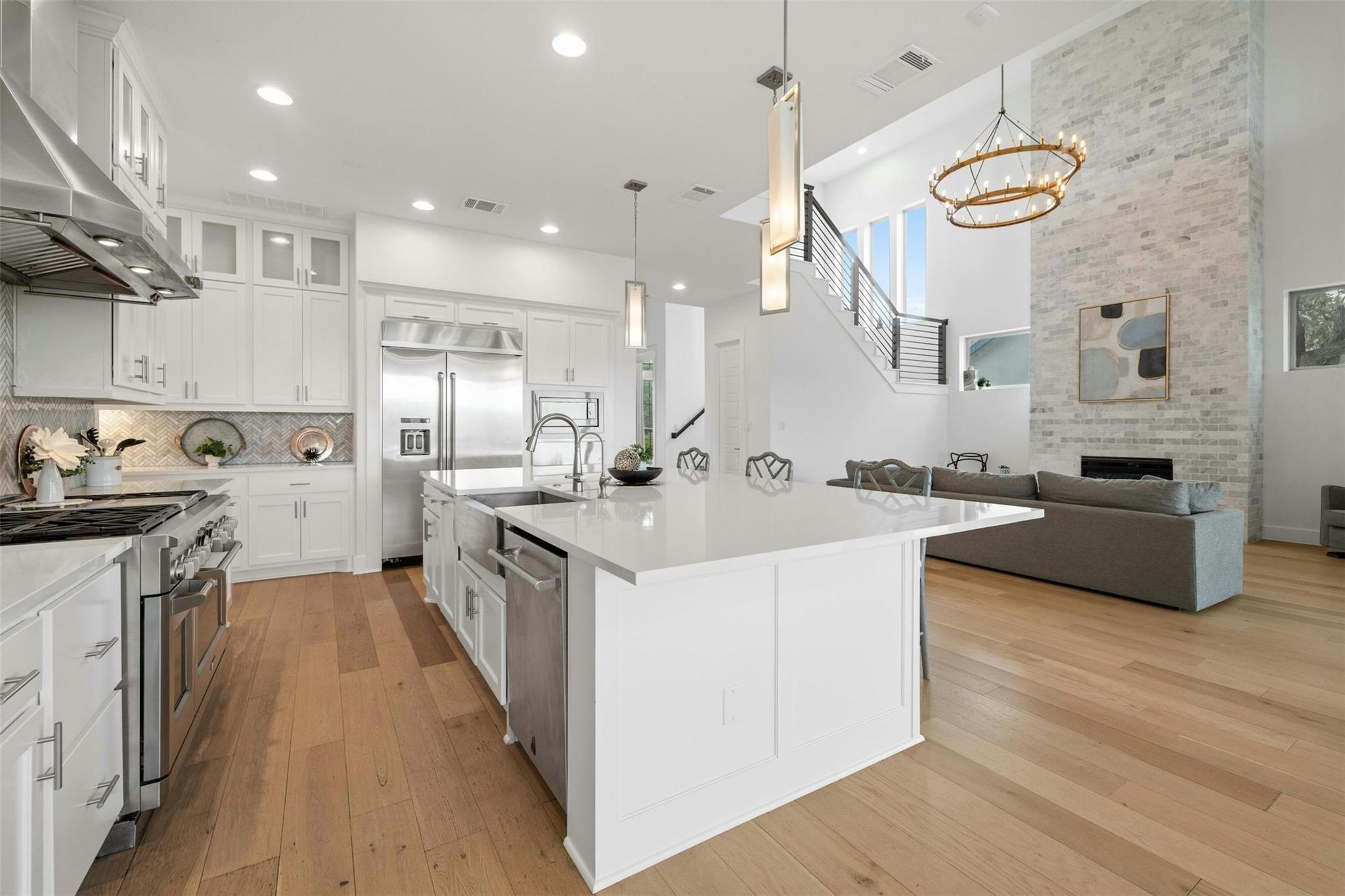 | Appliances | Built-In Oven(s), Built-In Range, Built-In Refrigerator, Dishwasher, Disposal, Down Draft, ENERGY STAR Qualified Appliances, Microwave, RNGHD, Stainless Steel Appliance(s), Warming Drawer, Washer/Dryer, Water Heater, Water Purifier Owned, Water Softener Owned | |