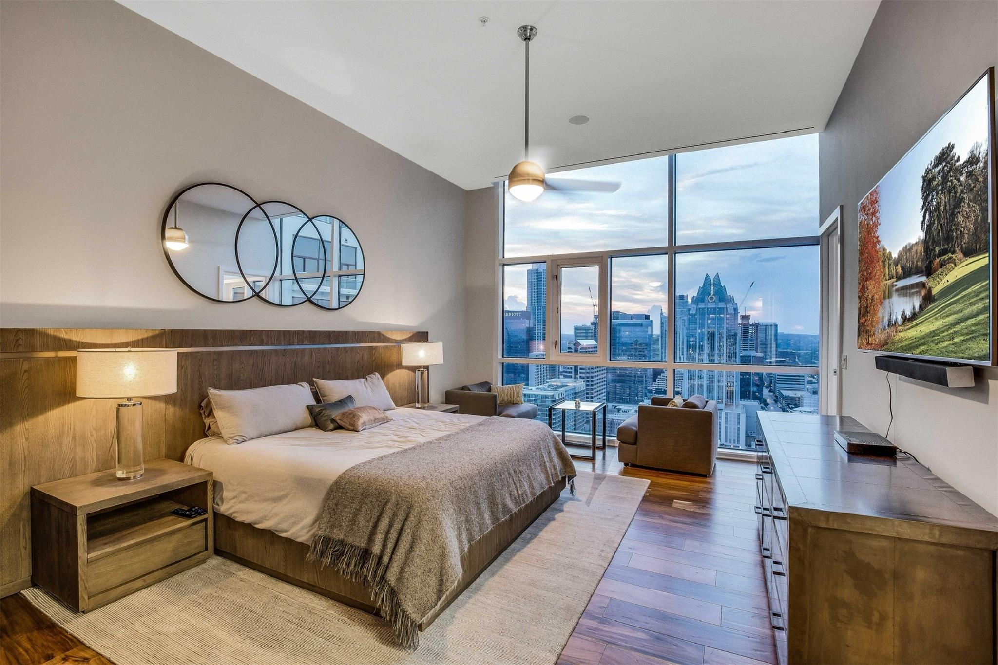 Motivated Seller!! Live in luxury at this 3BD/3BA penthouse apartment located on the 30th floor, top of the Hilton Austin in downtown. Expansive open-floor plan with chic and spacious kitchen - and sweeping city views to match! Thoughtful details make this space an absolute dream. Featuring everything you need from the comfort of your home, including dedicated office space, media room, breakfast nook, wet bar and wine refrigerator, custom-built walk-in master closet, spa-style jetted tub, upgraded kitchen appliances, hardwood floors and stunning floor-to-ceiling windows for exceptional natural light. 24-hour notice and proof of funds are required for showings. Call agent or agent office to schedule showing.