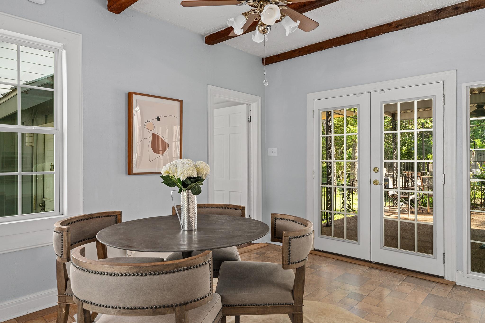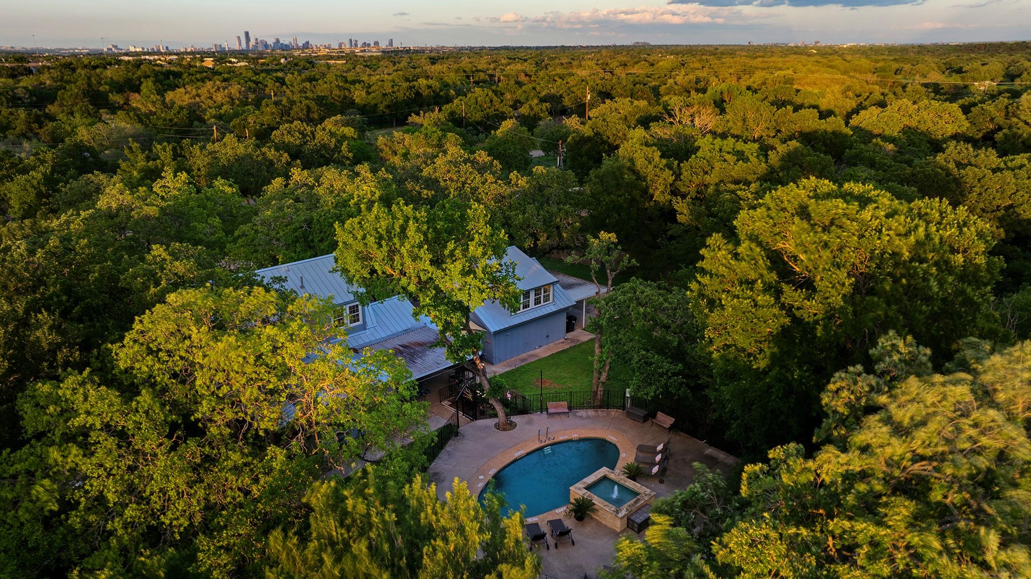 Nestled in the heart of South Austin's picturesque Sunset Valley. This enchanting home sits majestically on over 2 acres in the middle of Sunset Valley, a bustling low tax rate municipality minutes from Downtown Austin. These large homesites are scarce and sought after. Spanning almost 3,000 square feet, this charming homestead exudes timeless elegance and warmth. The 1940s craftsman Dutch Colonial welcomes you with heritage oaks along a circle drive leading to a proper Texas front porch complete with a row of rocking chairs where you can easily lose track of time. You are welcomed with exposed beams, beautifully cased windows, original crafted details on the fireplace, archways hiding pocket doors and hand-carved banisters evoking the grace and craftsmanship of yesteryears. The home seamlessly blends vintage charm with modern comforts, ensuring a lifestyle of both nostalgia and convenience. With a spacious two story guest house, sparkling pool, and a remarkable 2,400 square foot vintage hangar-style 200 amp workshop, this property offers endless possibilities for leisure and creativity. Convenience is at your fingertips, w/ Sunset Valley's amenities and hike and bike trails nearby. Easily indulge in the vibrant local scene with popular spots like Nomadic Coffee and Brewing, Slab BBQ, Blue Fin Sushi and the exciting coming soon Leona Botanical Café and Bar mere steps from your door. Outback you can enjoy the covered patio, pool and incredible entertaining area. The expansive workshop holds limitless potential, whether you're pursuing hobbies, tinkering with projects, storing prized possessions, a car collection or simply seeking refuge in creative expression. It is far too easy to escape the frenetic pace of modern living and embrace the timeless allure of this magical property. Here, you'll discover a sanctuary where time slows down and every moment is infused with wonder where the past meets the present in perfect harmony.