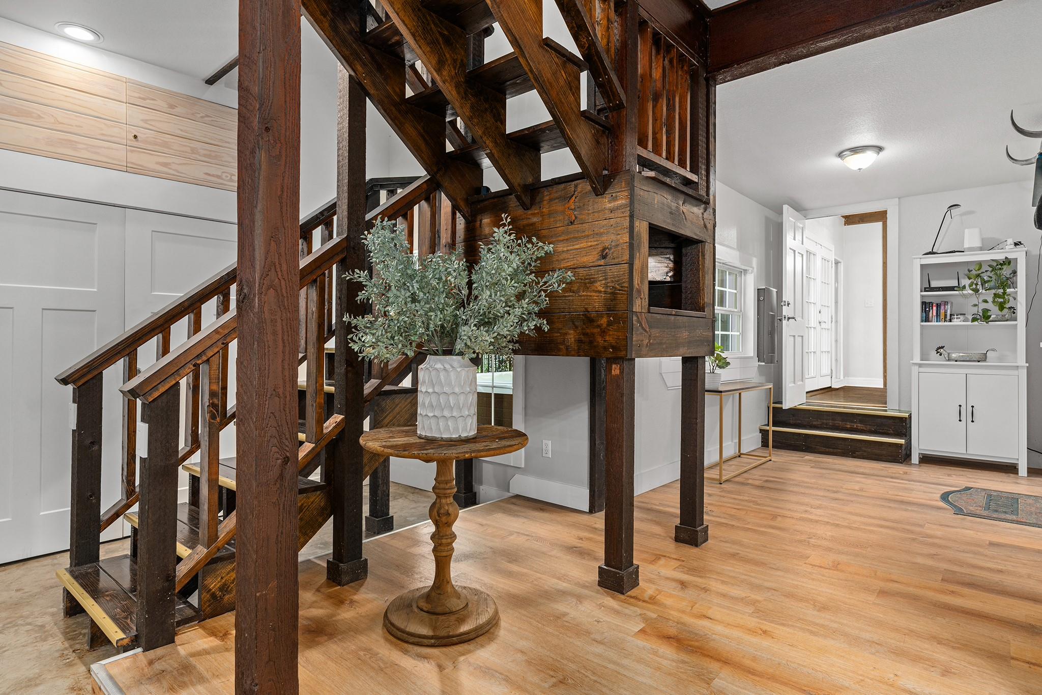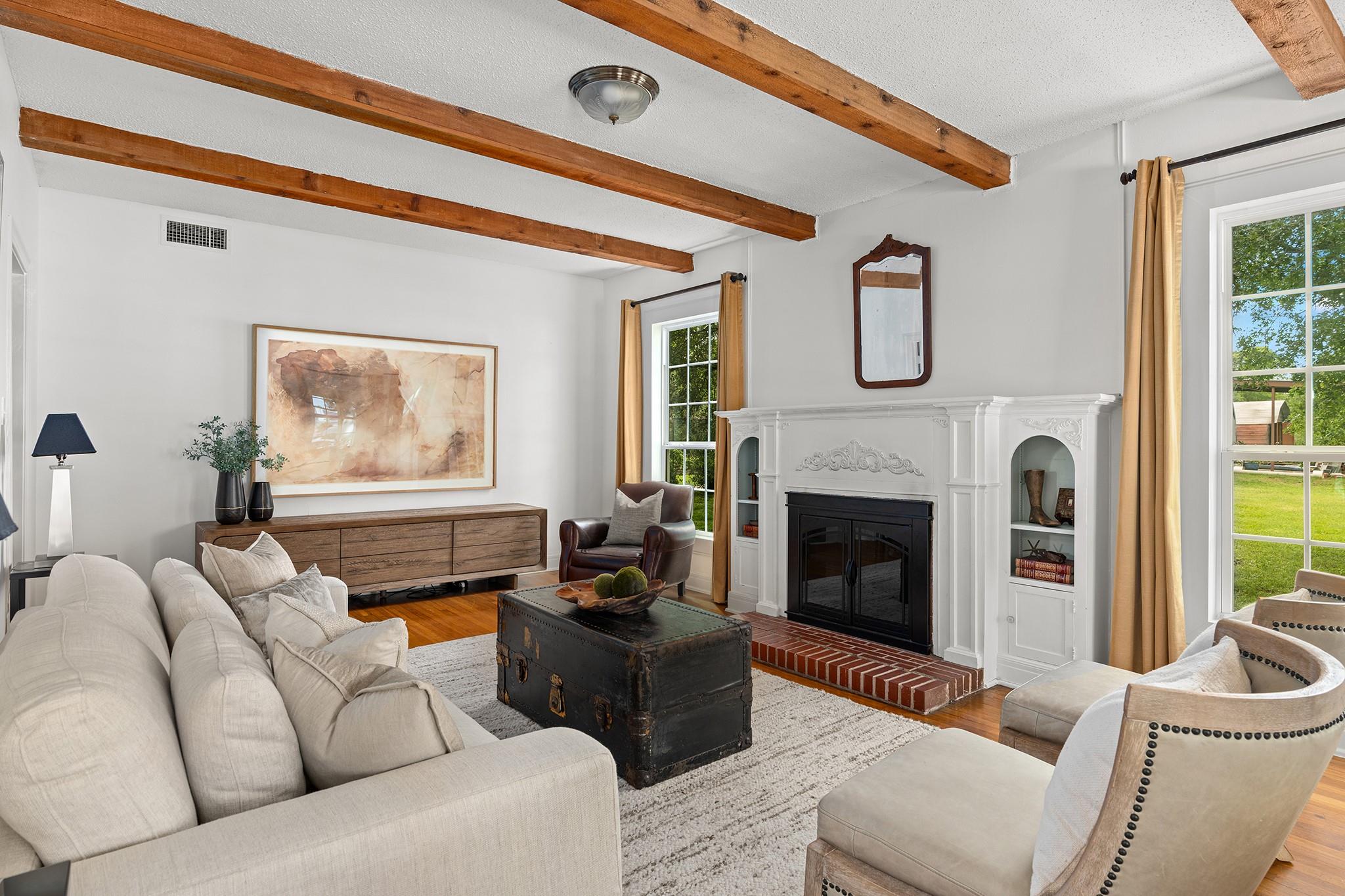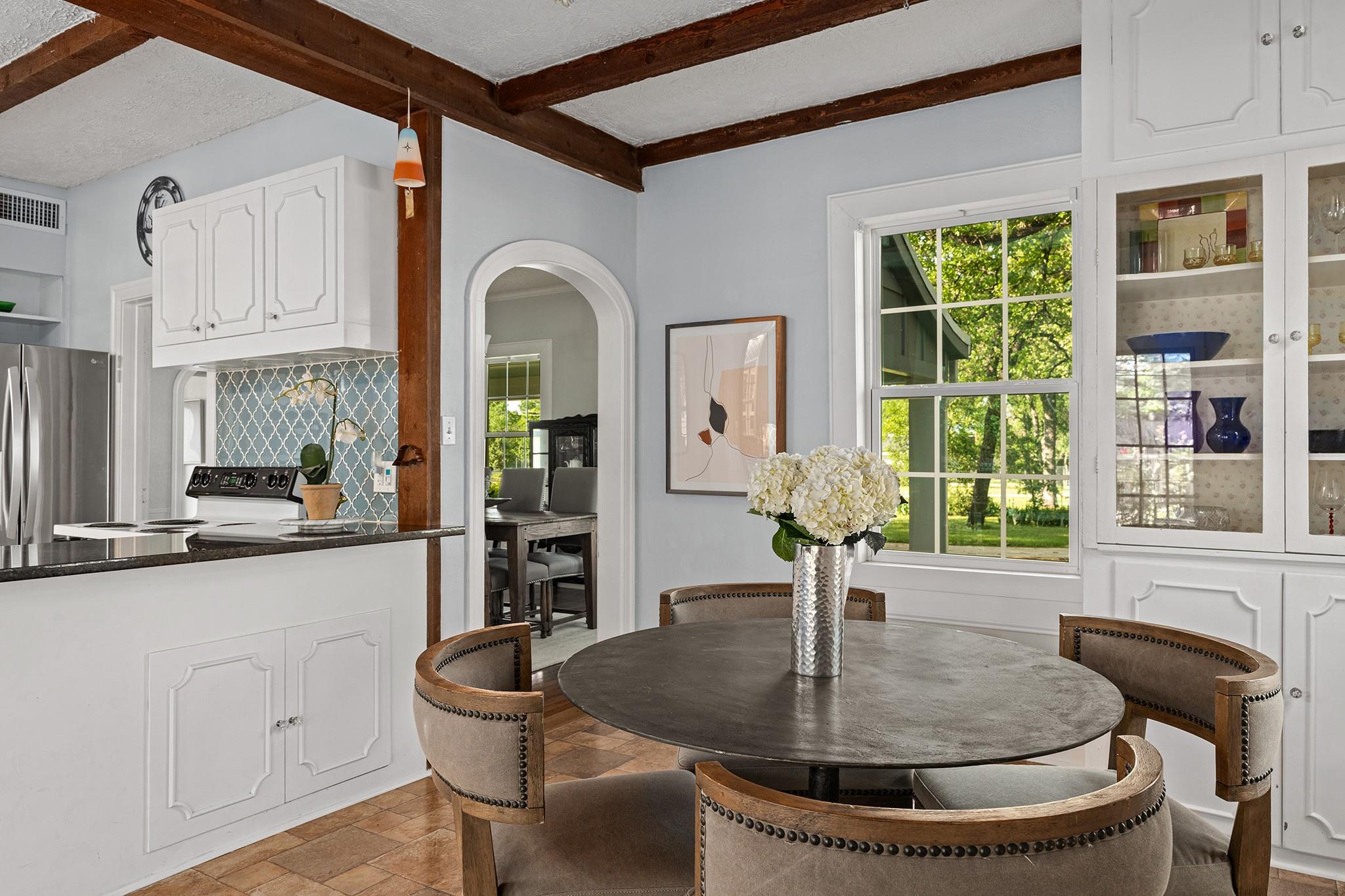 | Interior Features | Bookcases, Beamed Ceilings, High Ceilings, Eat-in Kitchen, Natural Woodwork, Primary Bedroom on Main, See Remarks | |