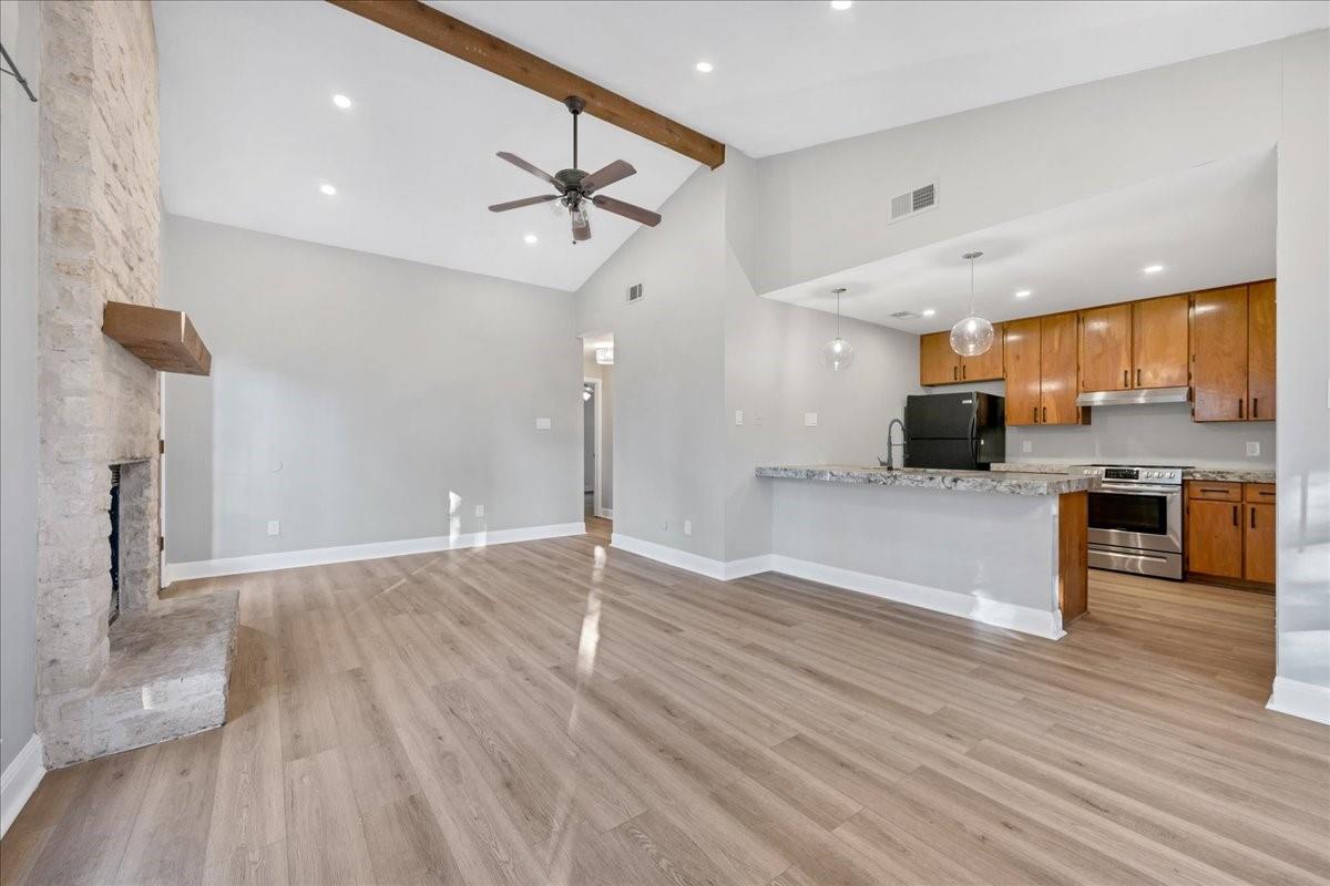 Relax in the beautiful neighborhood of Tahitian Village. With its towering trees, golf course and access to the Colorado River, where you can swim, kayak hike & fish. You're sure to find something you'll love! This spacious 2 bd 2 ba has 1005 Sq ft..New paint, new lighting, new luxury vinyl plank floors, fireplace and lots of natural light. Granite countertops and stainless steel appliances in the kitchen. Full size interior laundry room. 1 car garage and a large backyard. Will be installing fence around backyard.