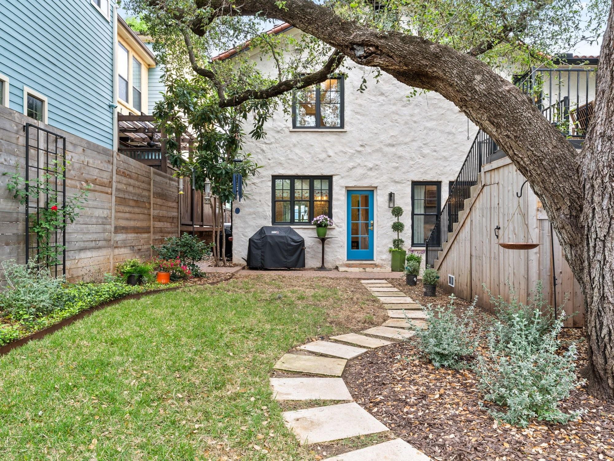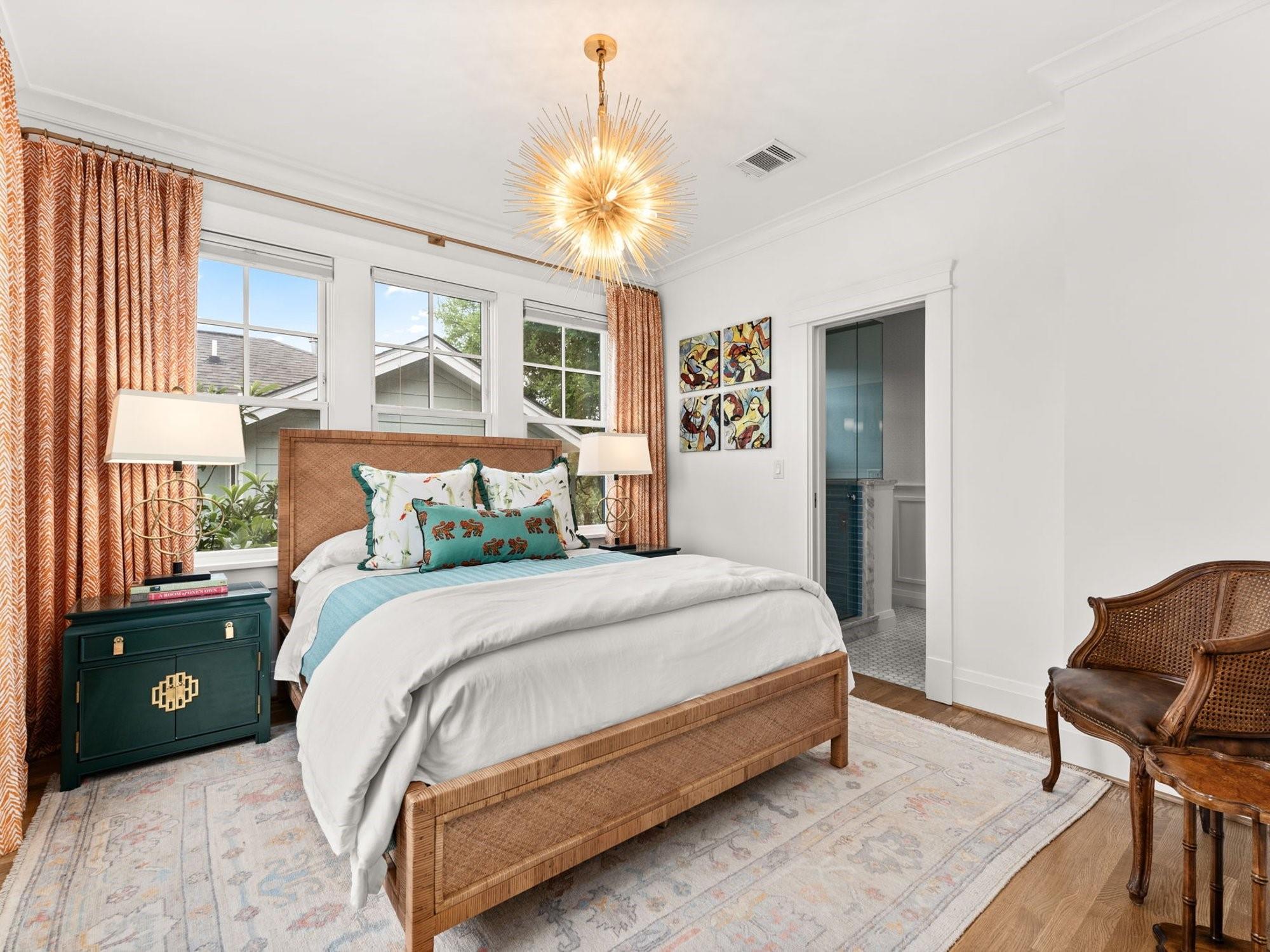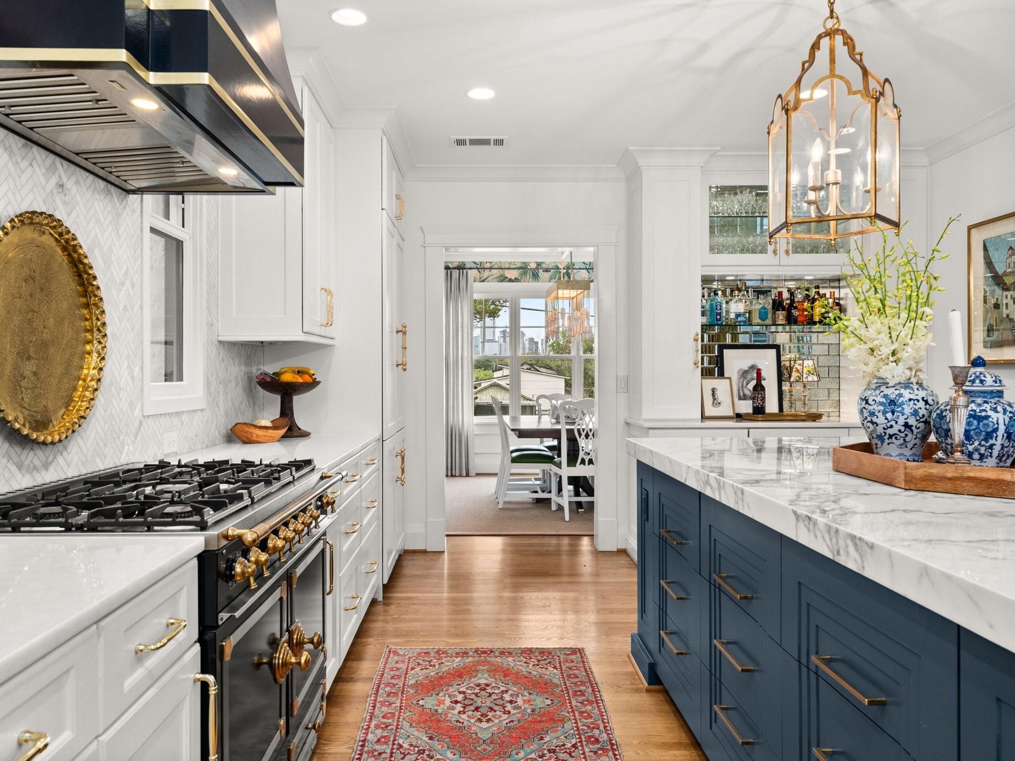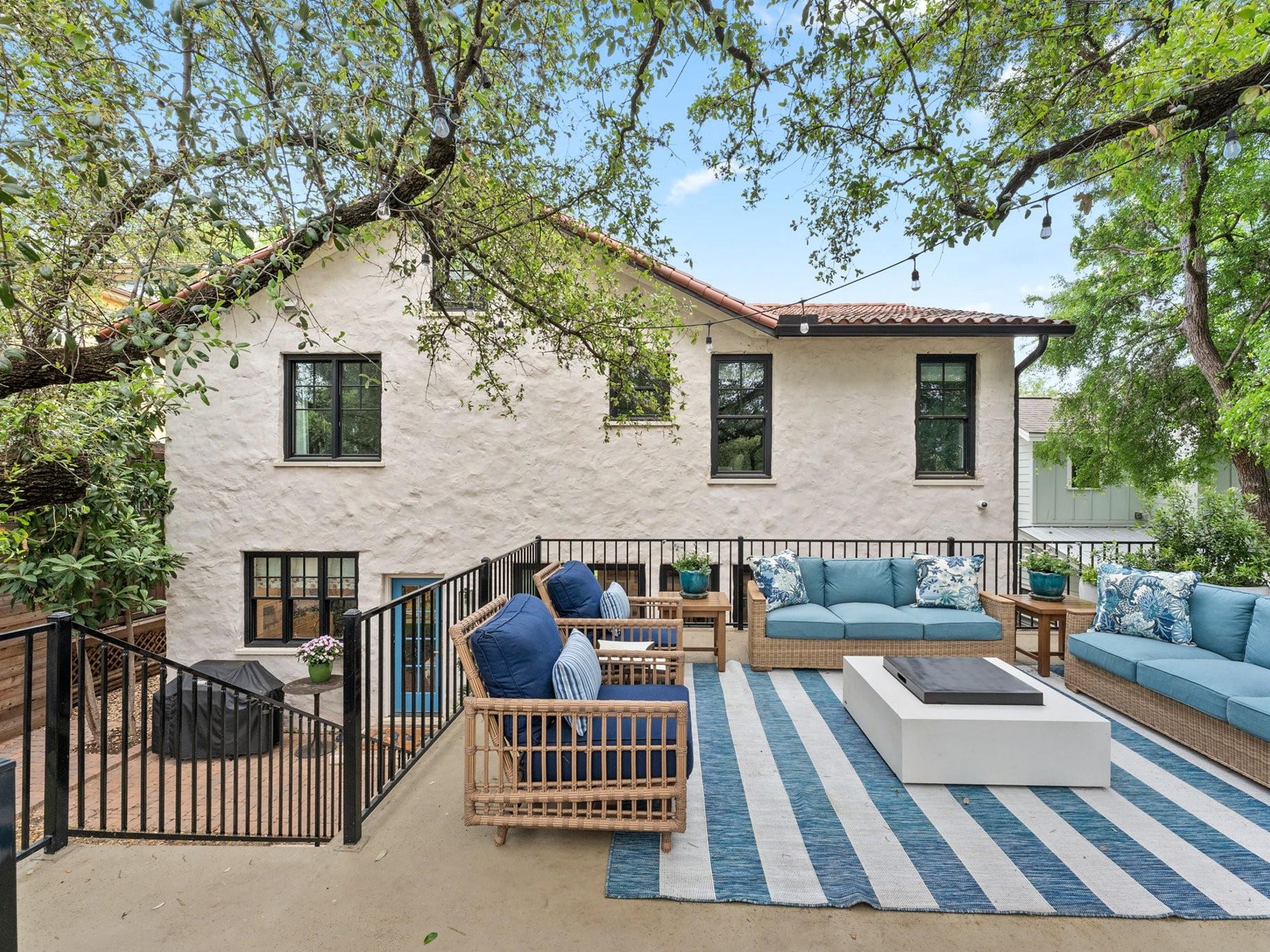 Get ready to fall in love with the charm and craftsmanship of this 1933 Deep Eddy home. This stunning property was fully renovated in 2020 by Laura Lee Home Interior Design. The home retains its vintage charm and is designed for modern living. The bright and inviting kitchen features Calcutta Gold and Thassos marble countertops, a navy La Cornue' Range, Miele Dishwasher, Marvel Wine Refrigeration, Samsung 4-Door Refrigerator, and a grand, oversized kitchen island. Abundant natural light floods the dining room which features a Kelly Wearstler Alabaster and Brass chandelier, custom drapery, and Schumacher wallpaper. The home has four bedrooms; three with en-suite bathrooms and one bedroom/den with a full hall bath on main level. An optional office/home gym/flex space is detached from the main house. This house was designed with the highest attention to detail from the heated primary bath marble floor, to a hidden gift wrap closet and the elevated cabinetry design found throughout. With over 1,000 sq/ft of outdoor living, you'll have plenty of space to entertain and enjoy the outdoors and all of Austin’s downtown views. You may enter the front of the home on Meriden or through the solar powered electric private drive gate at the rear entrance on Hearn into your two-car garage. This property is just a short walk to Deep Eddy Pool, the new H-E-B, Lady Bird’s hike and bike trail, and downtown Austin