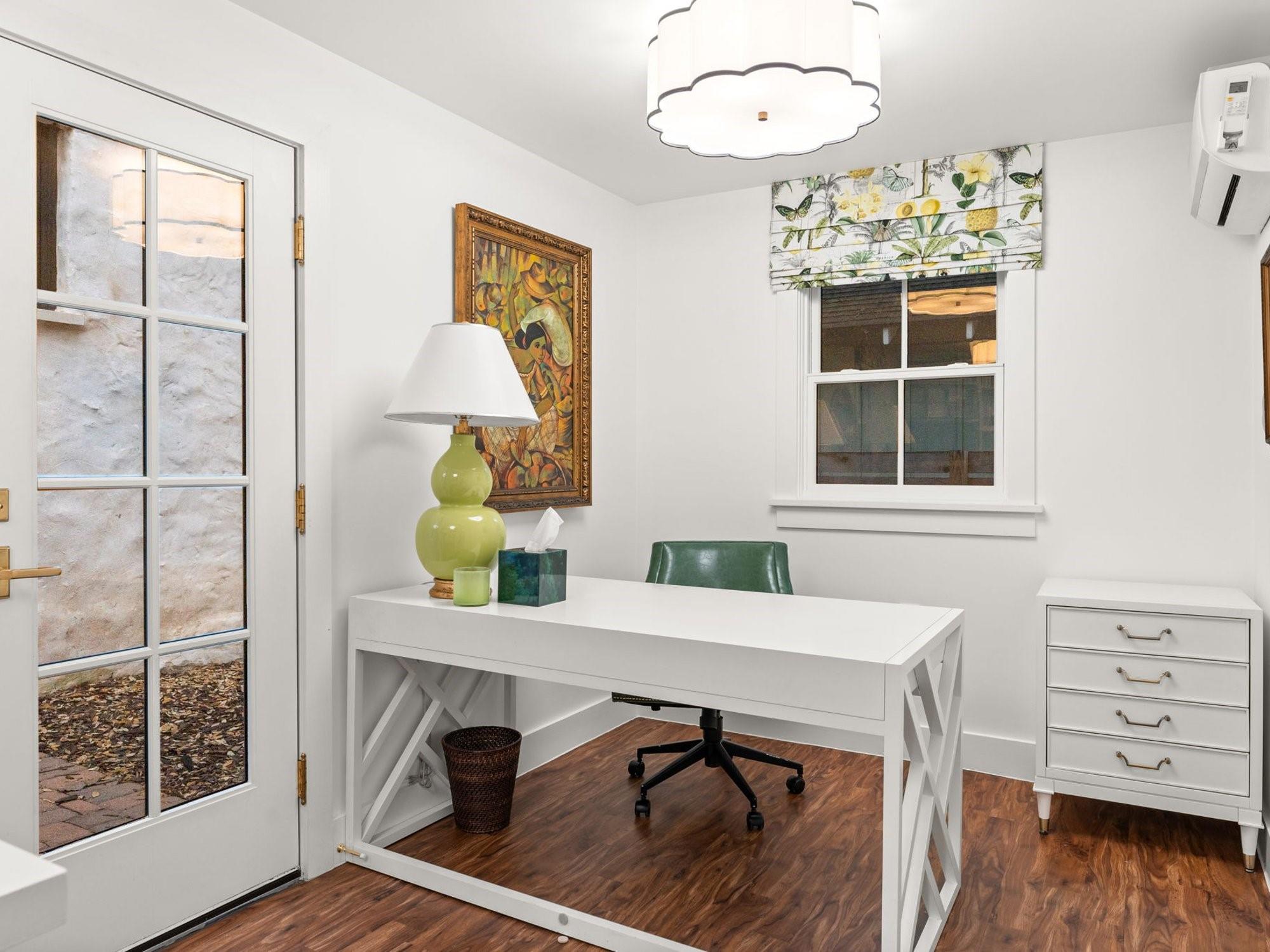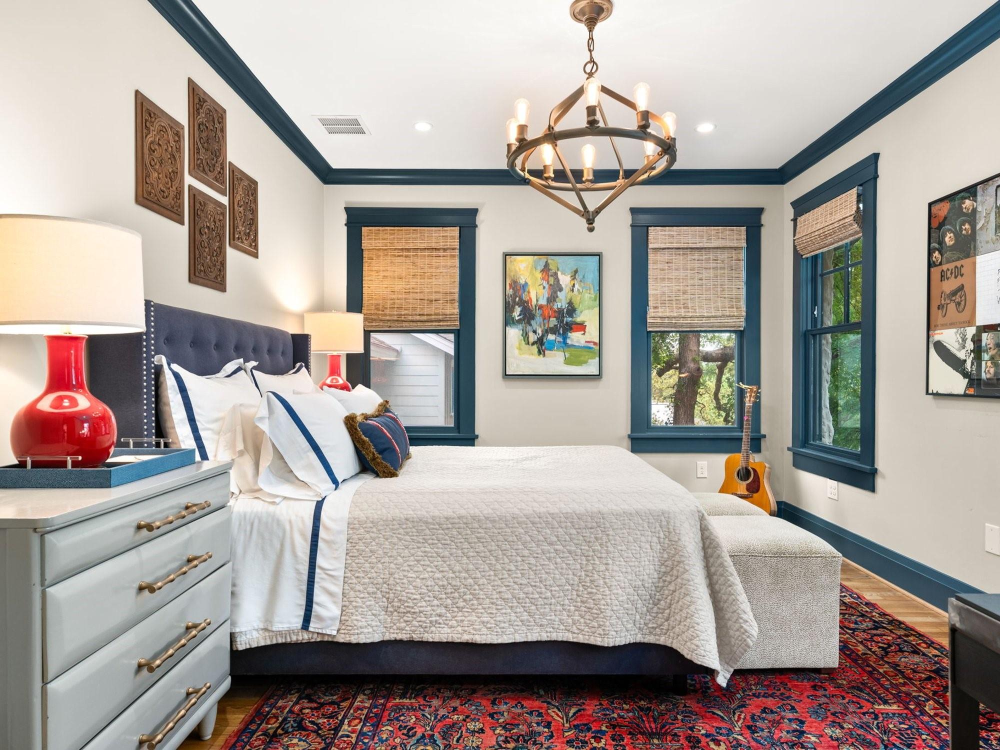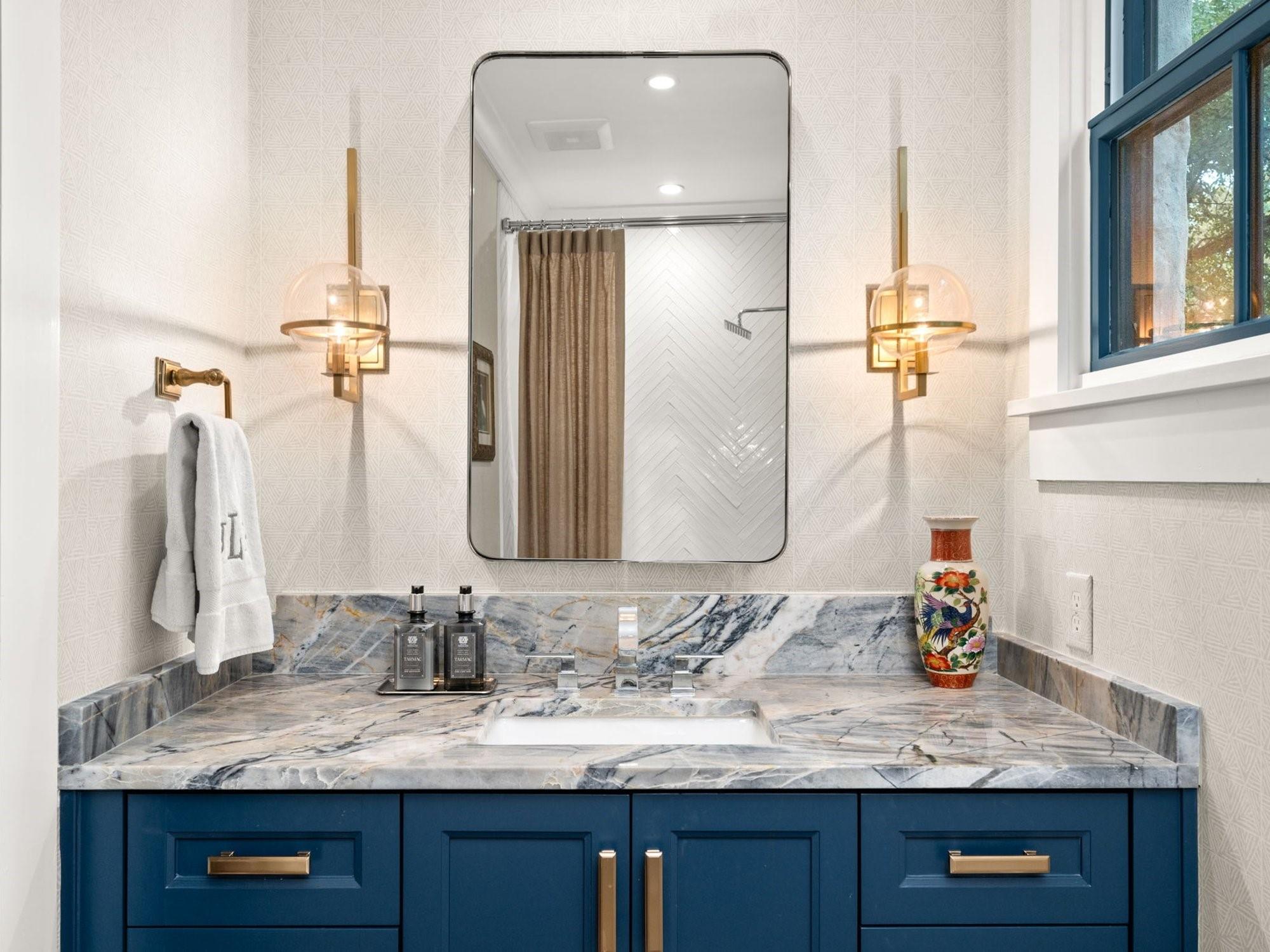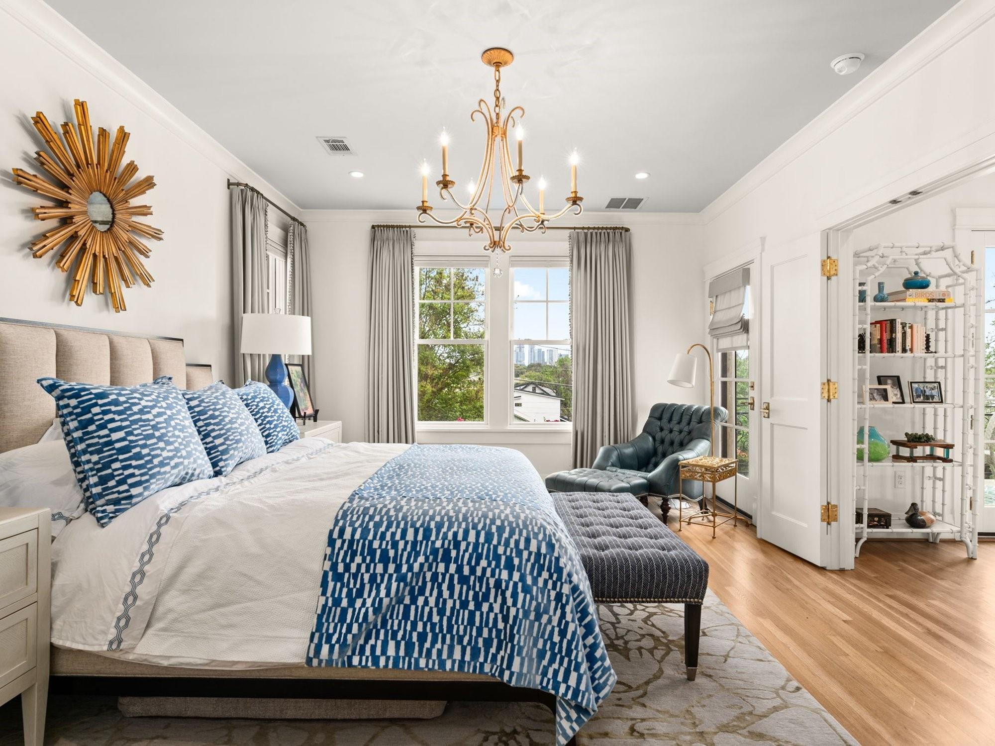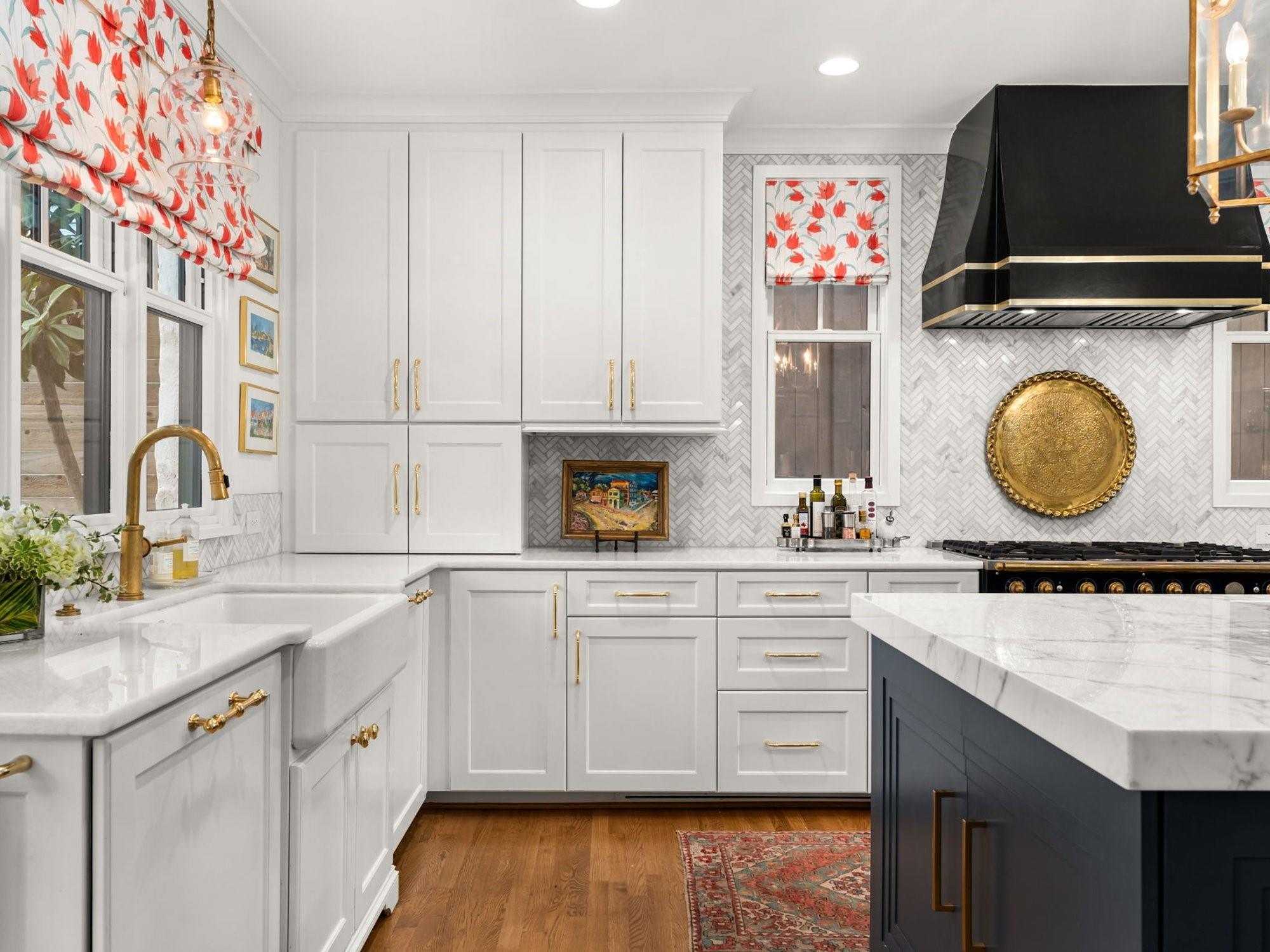 Get ready to fall in love with the charm and craftsmanship of this 1933 Deep Eddy home. This stunning property was fully renovated in 2020 by Laura Lee Home Interior Design. The home retains its vintage charm and is designed for modern living. The bright and inviting kitchen features Calcutta Gold and Thassos marble countertops, a navy La Cornue' Range, Miele Dishwasher, Marvel Wine Refrigeration, Samsung 4-Door Refrigerator, and a grand, oversized kitchen island. Abundant natural light floods the dining room which features a Kelly Wearstler Alabaster and Brass chandelier, custom drapery, and Schumacher wallpaper. The home has four bedrooms; three with en-suite bathrooms and one bedroom/den with a full hall bath on main level. An optional office/home gym/flex space is detached from the main house. This house was designed with the highest attention to detail from the heated primary bath marble floor, to a hidden gift wrap closet and the elevated cabinetry design found throughout. With over 1,000 sq/ft of outdoor living, you'll have plenty of space to entertain and enjoy the outdoors and all of Austin’s downtown views. You may enter the front of the home on Meriden or through the solar powered electric private drive gate at the rear entrance on Hearn into your two-car garage. This property is just a short walk to Deep Eddy Pool, the new H-E-B, Lady Bird’s hike and bike trail, and downtown Austin