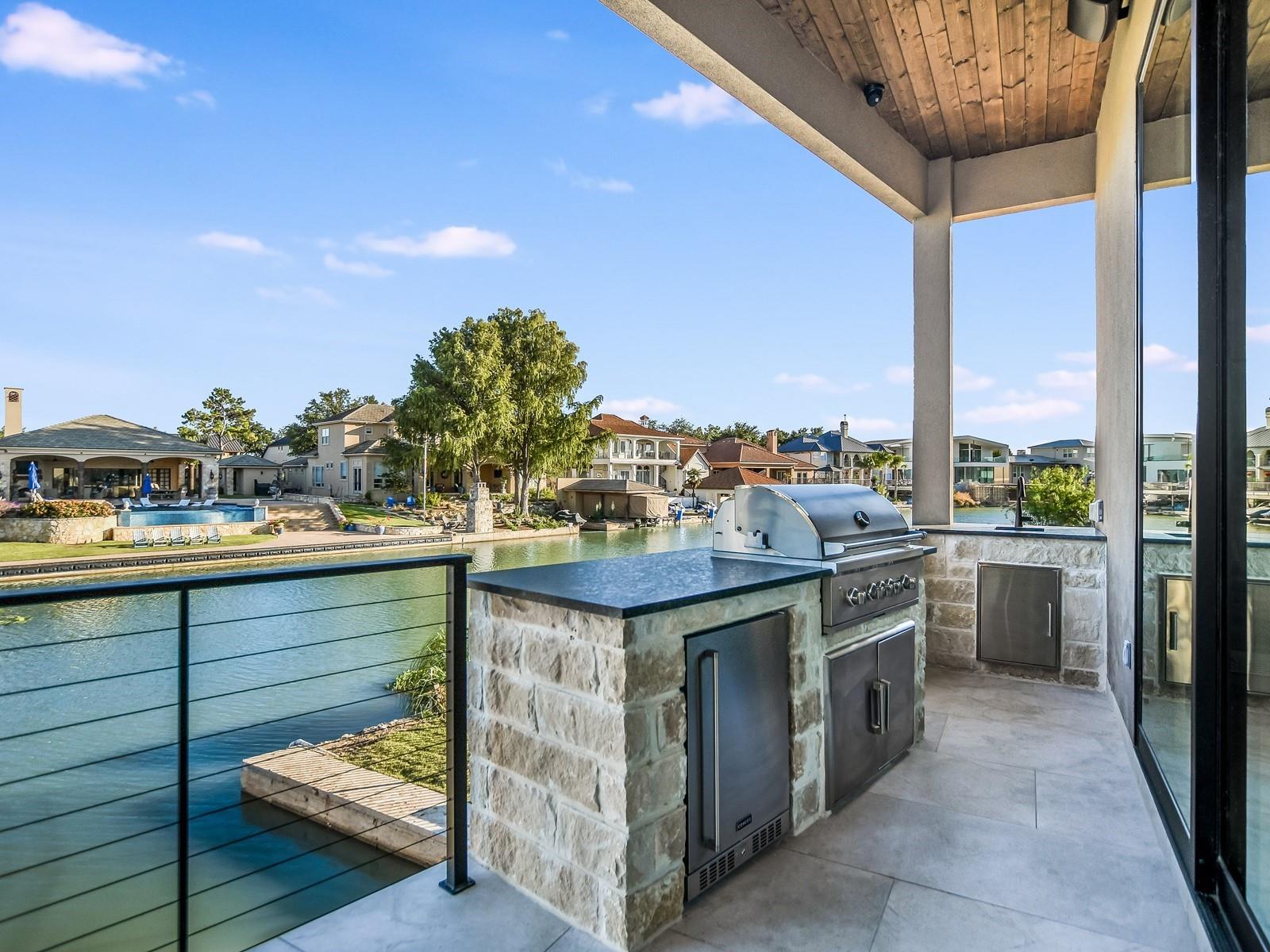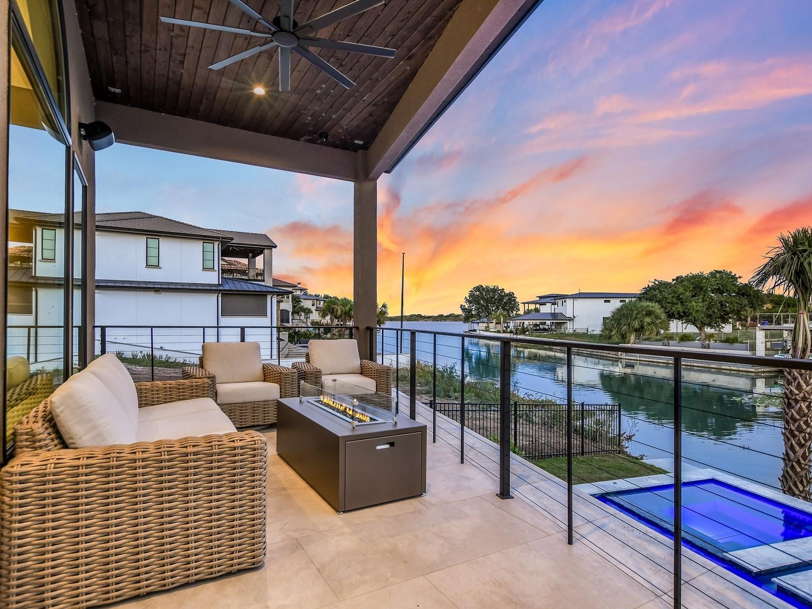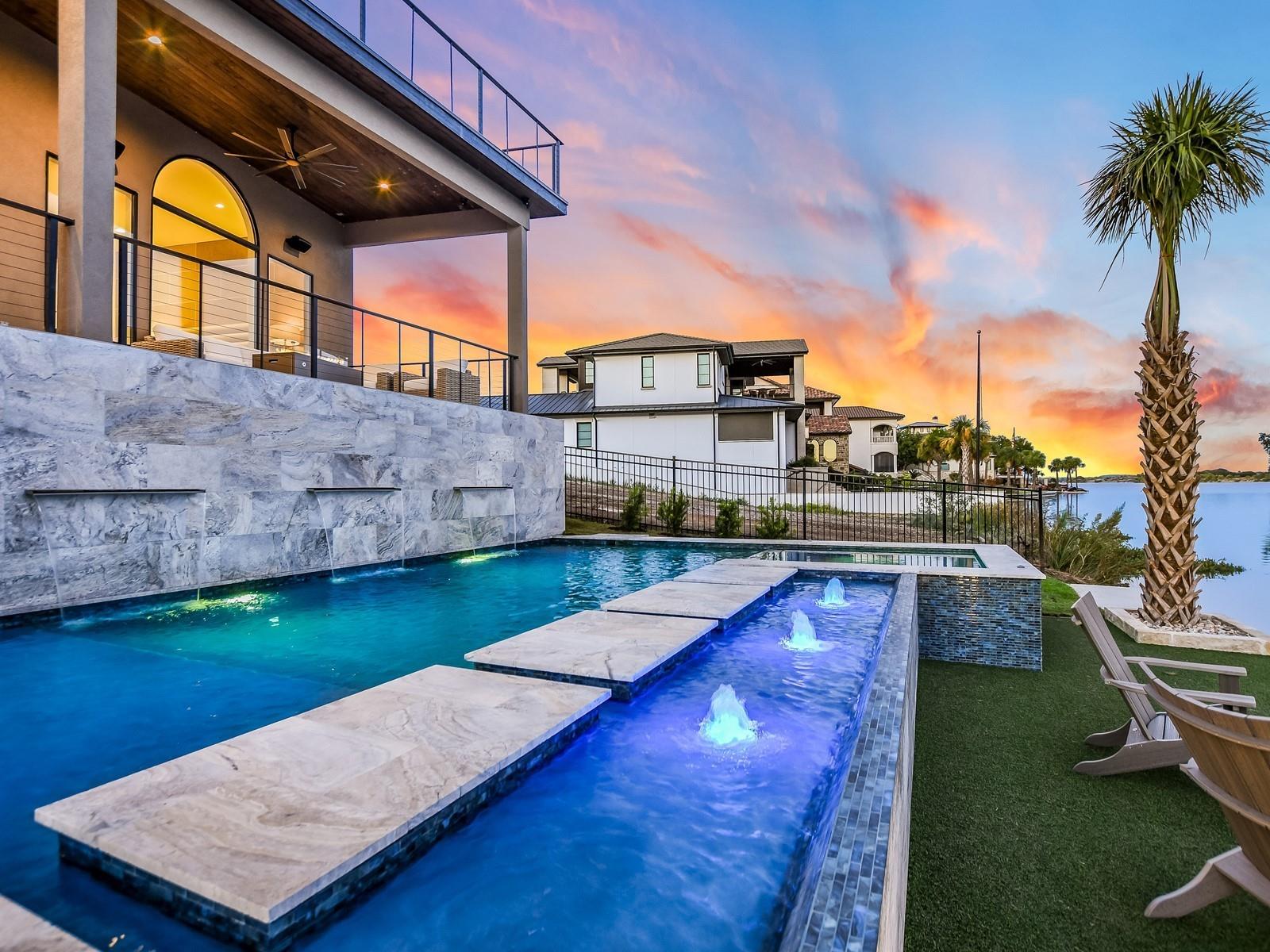 Welcome to 315 Matern Ct., an extraordinary waterfront estate located in the exclusive gated community of Matern Island. This newly constructed property offers the epitome of luxury living on 76' of Lake LBJ waterfront, boasting breathtaking lake views from almost every room. Featured in the 2023 HCBA Parade of Homes, this home would make a spectacular full-time residence with ample amenities and accommodations for hosting family and friends. The house has multiple indoor and outdoor living spaces, a 3-car garage, an elevator, and guest quarters with a separate entrance. As you enter the home, the 2-story great room and floor-to-ceiling fireplace draw your eyes up to the second-story windows and around to the 10-foot glass stacking doors that open to the covered patio, providing ease of indoor/outdoor living and entertainment. The stunning kitchen is truly the heart of the home, featuring a quartzite waterfall island where family and friends will be sure to gather beneath sparkling pendant lighting. The primary suite on the main level is a serene retreat with a spa-like ensuite bath, a large walk-in closet with built-ins, and extra space for storage. Upstairs, a wet bar provides convenience while entertaining guests in the game room or media room. Step outside, where multiple levels of outdoor living spaces take advantage of the home's elevation and provide the perfect setting for enjoying the stunning views of Lake LBJ and the hill country beyond. Resort-style amenities include an outdoor kitchen, a private pool and spa, green space for relaxing in the sun, a lakeside fire pit, and a private boat slip for easy access to the lake. Call today to schedule a private showing. You don't want to miss your chance to see this exquisite home in person!