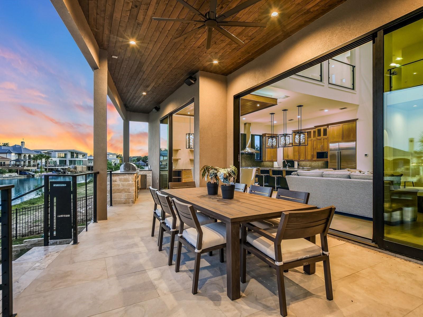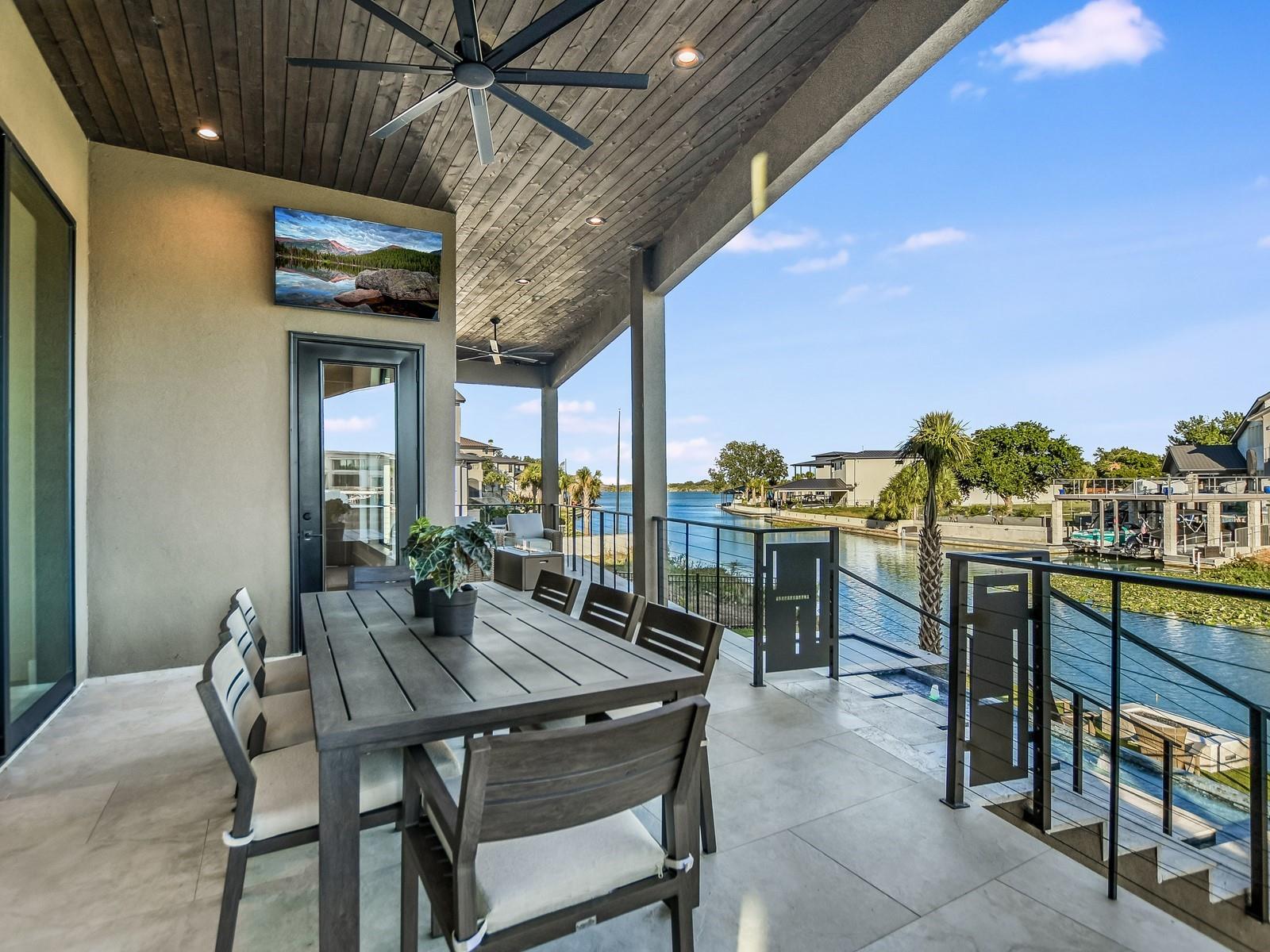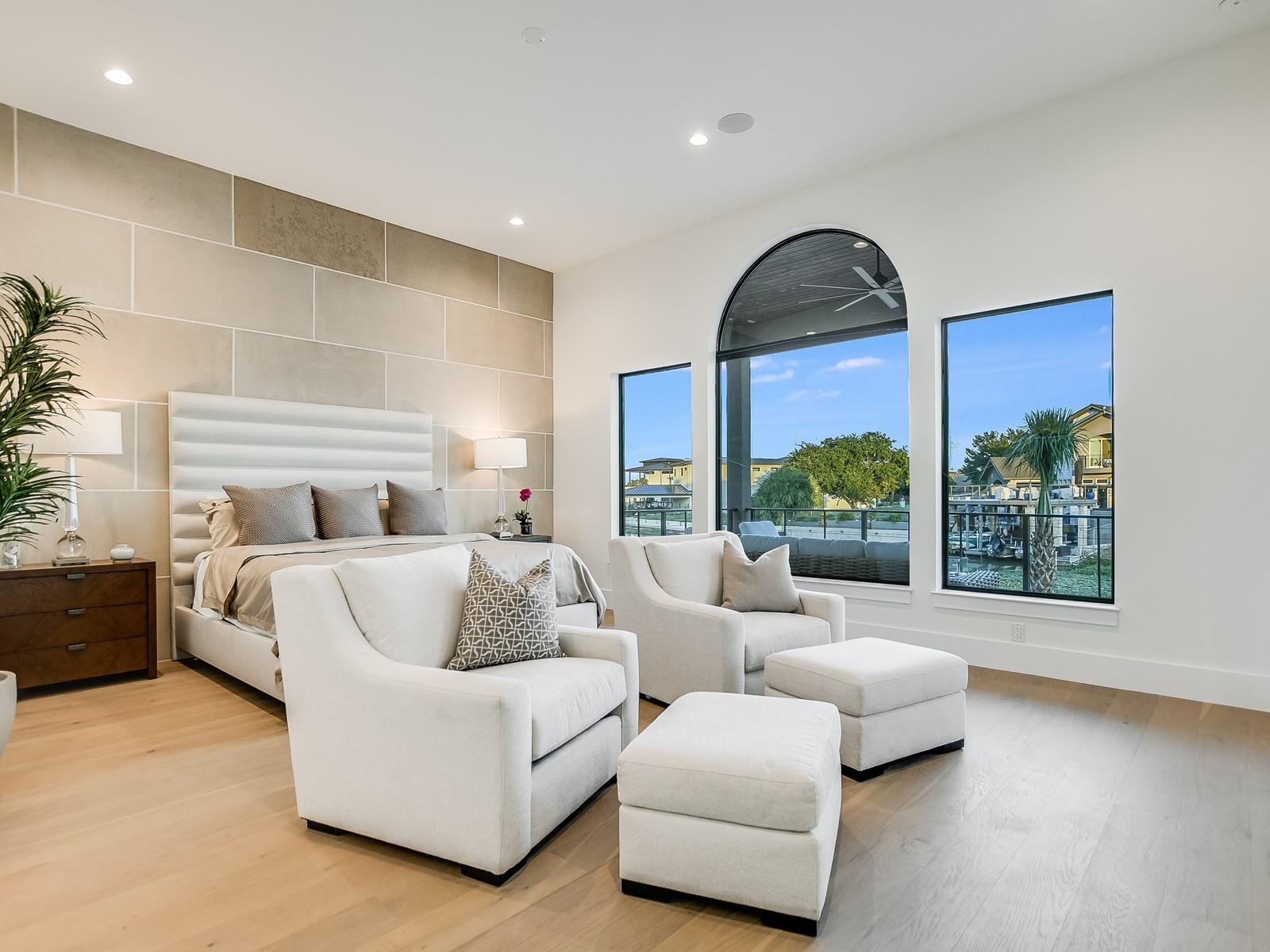 Welcome to 315 Matern Ct., an extraordinary waterfront estate located in the exclusive gated community of Matern Island. This newly constructed property offers the epitome of luxury living on 76' of Lake LBJ waterfront, boasting breathtaking lake views from almost every room. Featured in the 2023 HCBA Parade of Homes, this home would make a spectacular full-time residence with ample amenities and accommodations for hosting family and friends. The house has multiple indoor and outdoor living spaces, a 3-car garage, an elevator, and guest quarters with a separate entrance. As you enter the home, the 2-story great room and floor-to-ceiling fireplace draw your eyes up to the second-story windows and around to the 10-foot glass stacking doors that open to the covered patio, providing ease of indoor/outdoor living and entertainment. The stunning kitchen is truly the heart of the home, featuring a quartzite waterfall island where family and friends will be sure to gather beneath sparkling pendant lighting. The primary suite on the main level is a serene retreat with a spa-like ensuite bath, a large walk-in closet with built-ins, and extra space for storage. Upstairs, a wet bar provides convenience while entertaining guests in the game room or media room. Step outside, where multiple levels of outdoor living spaces take advantage of the home's elevation and provide the perfect setting for enjoying the stunning views of Lake LBJ and the hill country beyond. Resort-style amenities include an outdoor kitchen, a private pool and spa, green space for relaxing in the sun, a lakeside fire pit, and a private boat slip for easy access to the lake. Call today to schedule a private showing. You don't want to miss your chance to see this exquisite home in person!