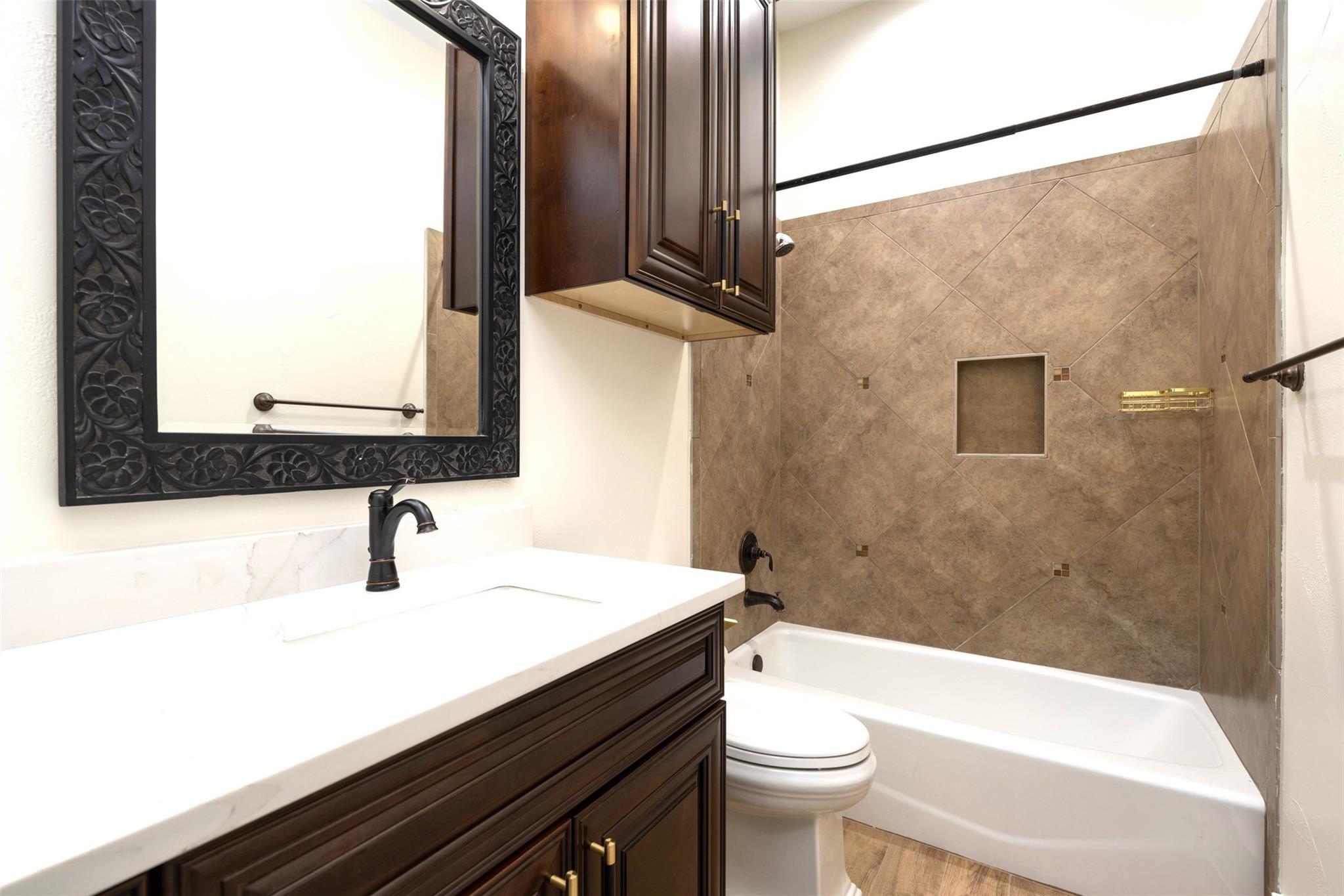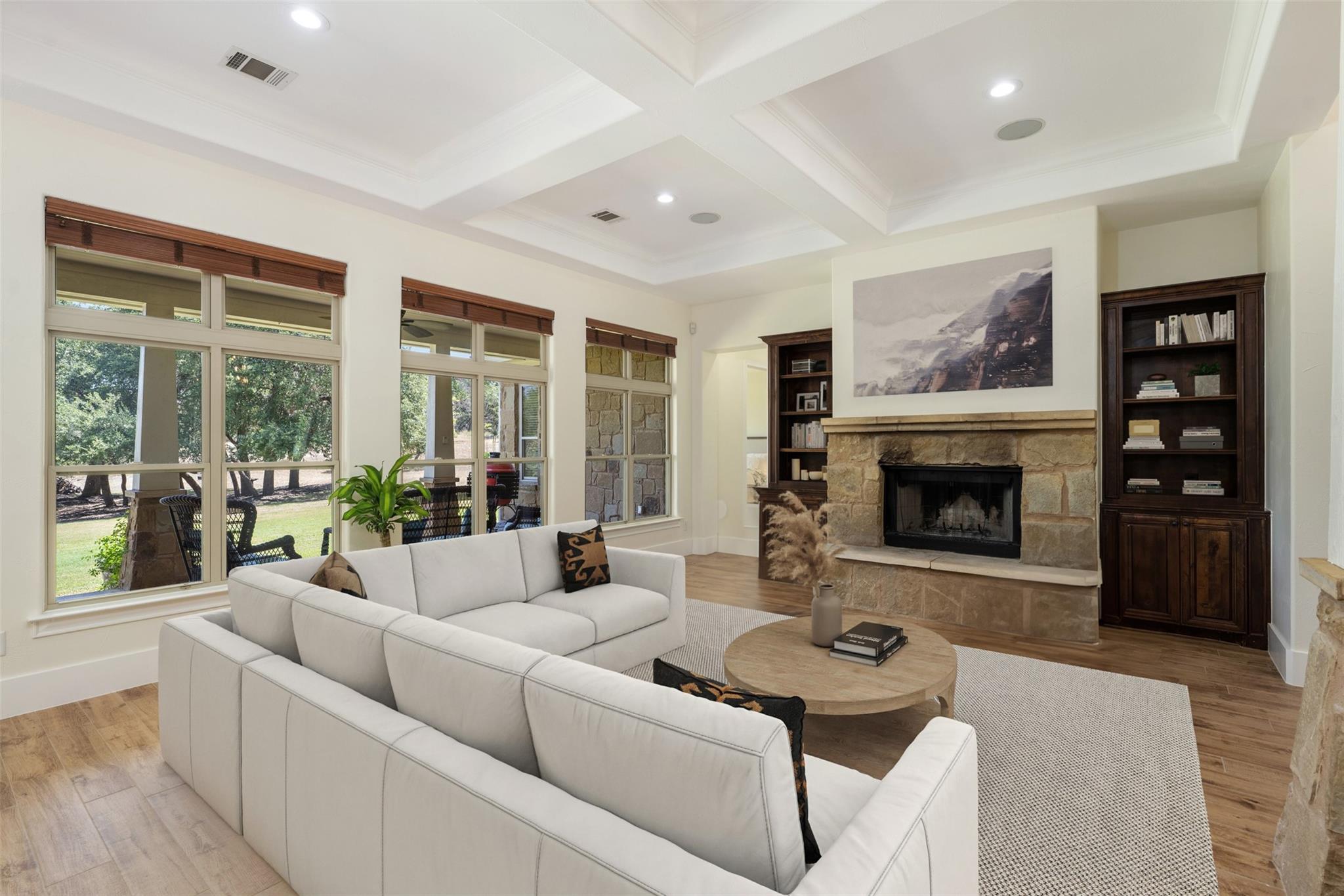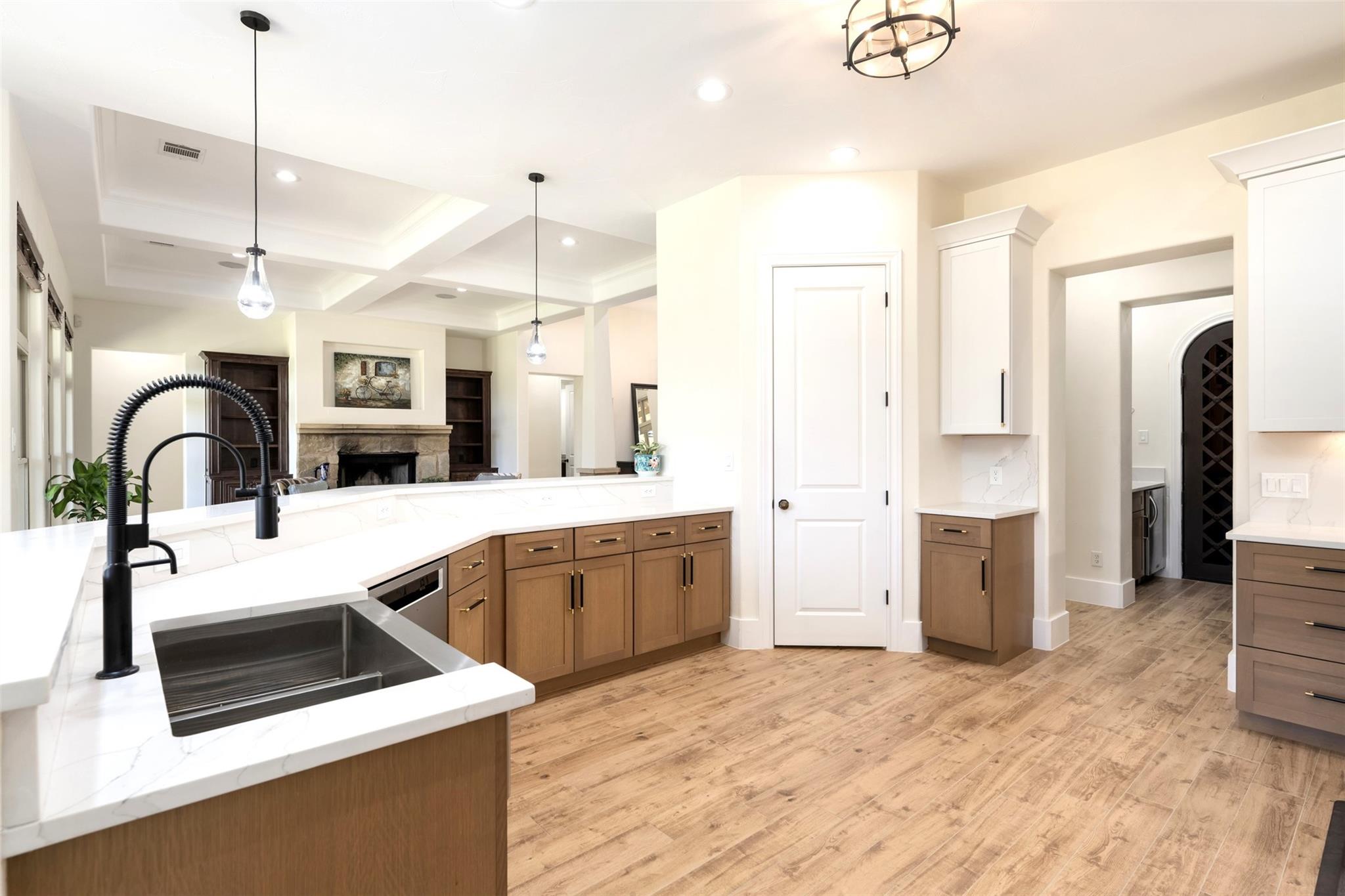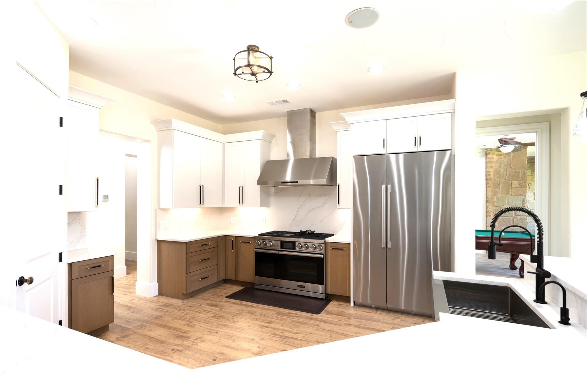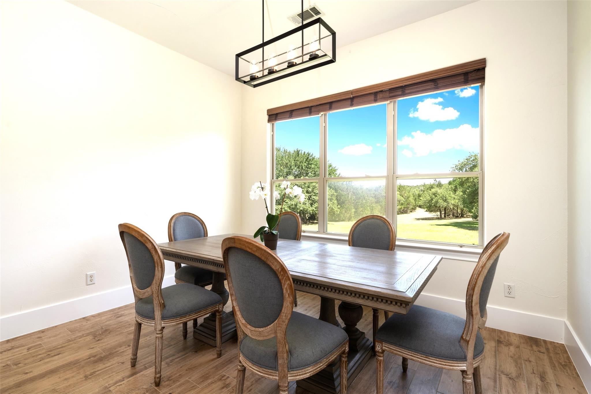 Single Story Stunner in Bee Creek Estates! Impeccable, updated Craftsman-like 4/3.5/3 (& study) home is a Texas Hill Country family and entertainer’s dream. No expense was spared on its update including 8†solid wood baseboards, wood-grain tile floors throughout, fabulous lighting, and designer cabinetry everywhere. The home flows seamlessly from dining, to living, to kitchen and breakfast area, all overlooking the huge and very private 1.6-acre lot. Enjoy warm conversations in front of the stunning stone fireplace & under lovely, coffered ceilings in the living area. Host a dinner for many or simply cook a small meal for a few while guests sip a drink prepared at the bar with its amazing wine room. The impressive kitchen touts quartzite counters, updated cabinets, fixtures, and hardware, plus a luxury appliance package. The inviting study can be the office of your dreams – light, airy, and private at the front of the home away from the flow of family living. Escape to the superb comfort of the owner’s retreat, featuring high tray ceilings, and relax in a pamper-ready bathroom with a walk-in shower, and oversized walk-in closet. Across the home are three more bedrooms, all centered around a huge game/media room. One bedroom with en suite bath could meet multigenerational needs. One bedroom has an installed sauna with a jack and jill bath. The giant game room has a pool table with the other half of the room being the media area with its oversized TV for movie nights, sports events, or video gaming. Garage has a commercial-grade vinyl floor. The home has its own well drilled 600 ft to an aquifer. A covered patio graces the rear of the home. A pool, spa, cabana, or even a casita could be added. Bee Creek Estates is a highly sought after upscale subdivision, gated and extremely private. It is in the renowned Lake Travis School District with easy access to major roads, shopping, dining, health care, Lake Travis, marinas, greater Austin, and the Texas Hill Country.