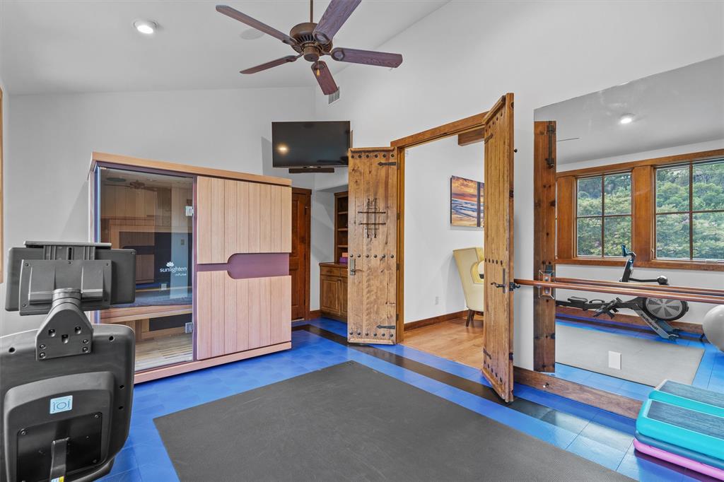 | Interior Features | Bookcases, Breakfast Bar, Built-in Features, Cedar Closet(s), Ceiling Fan(s), High Ceilings, Tray Ceiling(s), Central Vacuum, Chandelier, Granite Counters, Double Vanity, Gas Dryer Hookup, Eat-in Kitchen, Entrance Foyer, French Doors, High Speed Internet, Interior Steps, Kitchen Island, Multiple Dining Areas, Multiple Living Areas, Natural Woodwork, Open Floorplan, Pantry, Primary Bedroom on Main, Recessed Lighting, Sauna, Smart Thermostat, Soaking Tub, Sound System, Storage, Two Primary Closets, Walk-In Closet(s), Washer Hookup, Wired for Sound | |