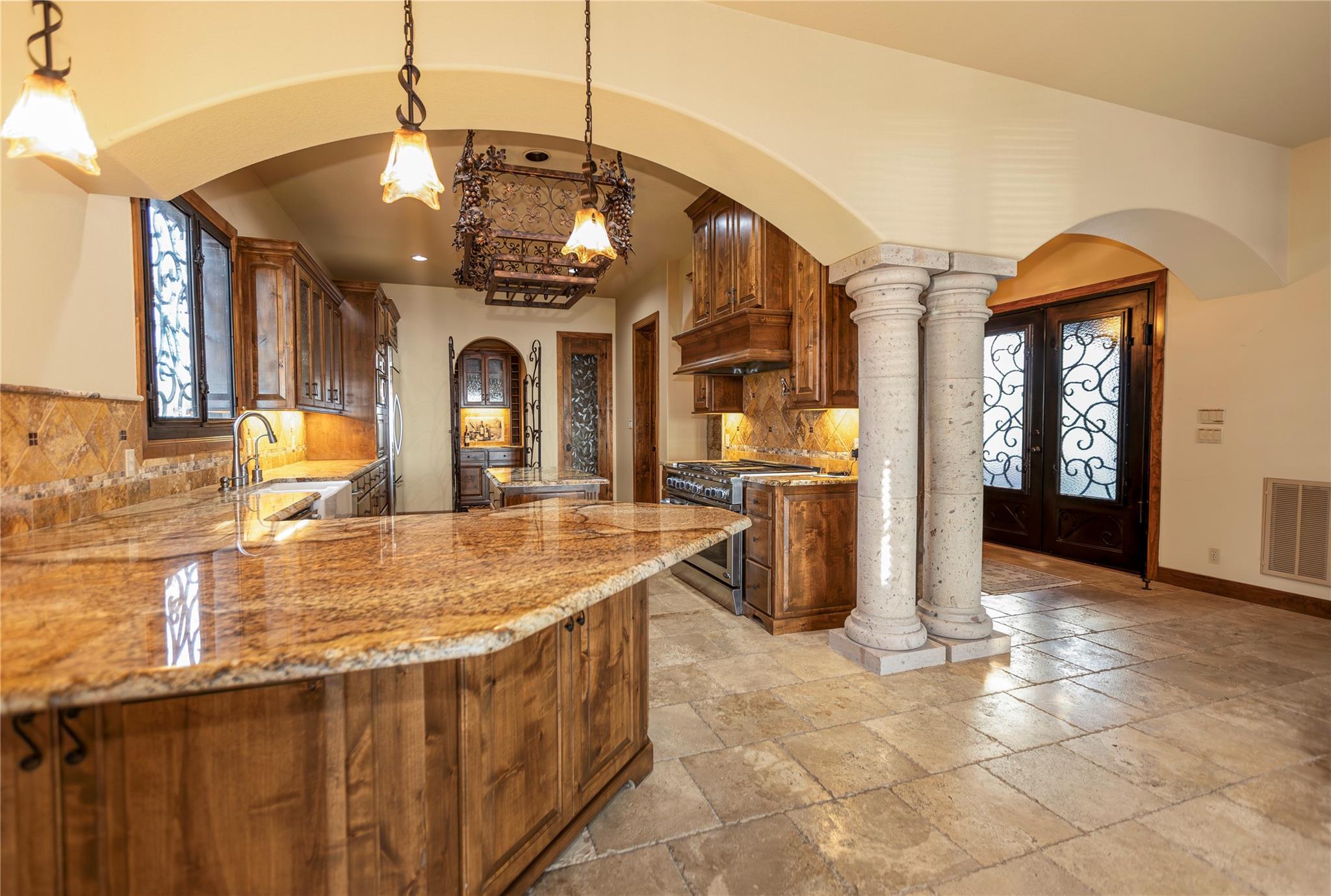 Breakfast Bar, Built-in Features, Ceiling Fan(s), High Ceilings, Granite Counters, Double Vanity, Gas Dryer Hookup, Entrance Foyer, French Doors, High Speed Internet, Interior Steps, Kitchen Island, Open Floorplan, Pantry, Primary Bedroom on Main, Recessed Lighting, Smart Home, Sound System, Storage, Walk-In Closet(s), Washer Hookup |